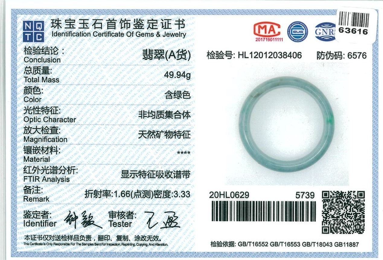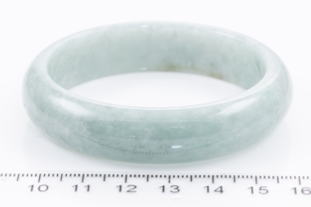 Jade Bangle with light green natural Jadeite Jade - Type A. With Gem Testing Report #HL12012038406. Inner Diameter 5.5cm. Weight 49.9g. (As New)