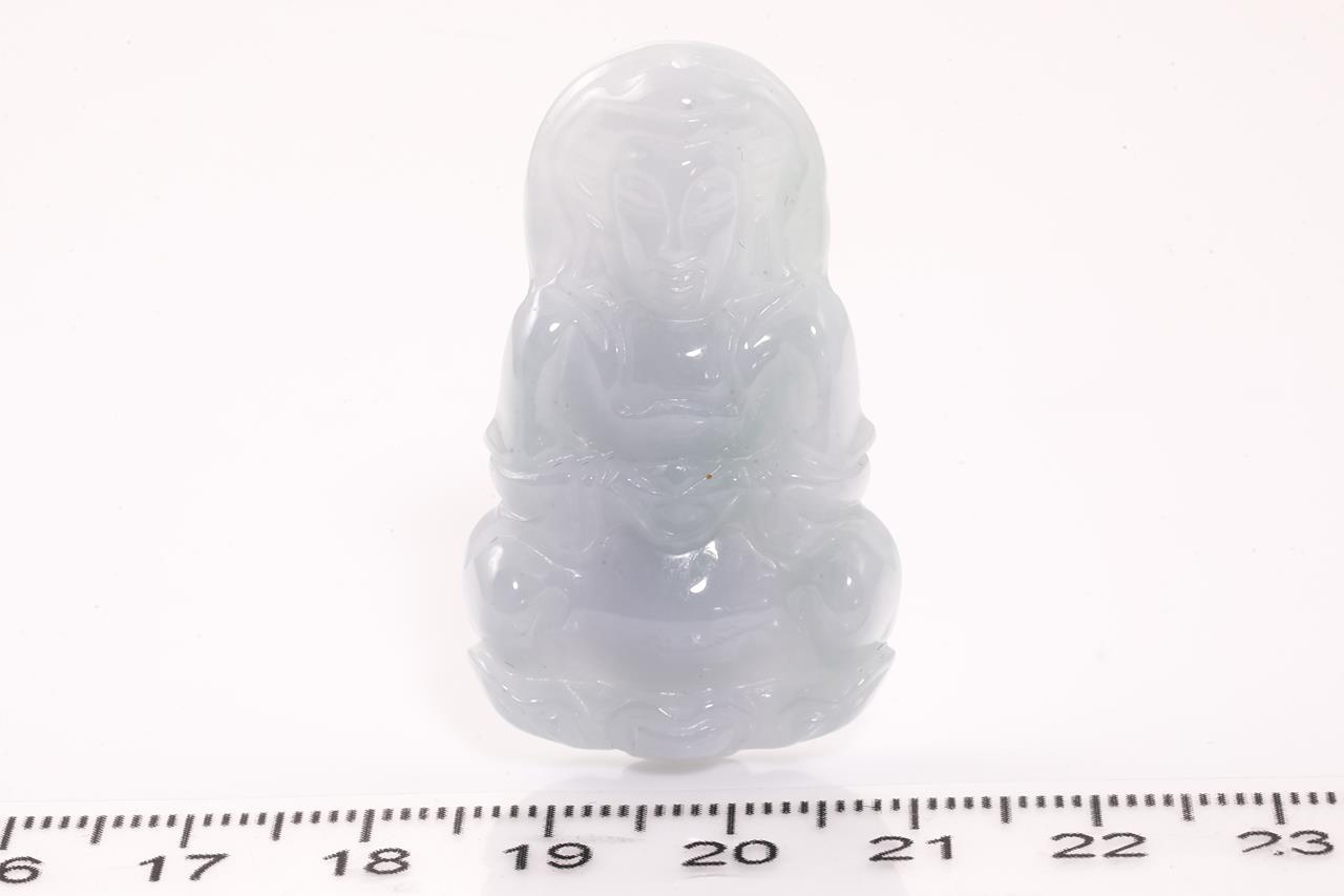 Jade Pendant with carved deity 'Guan Yin' translucent green Natural Fei Cui (Jadeite Jade) - Type A (With Gem Testing Report). Weight 10.9g. Length 4.1cm. (As New)