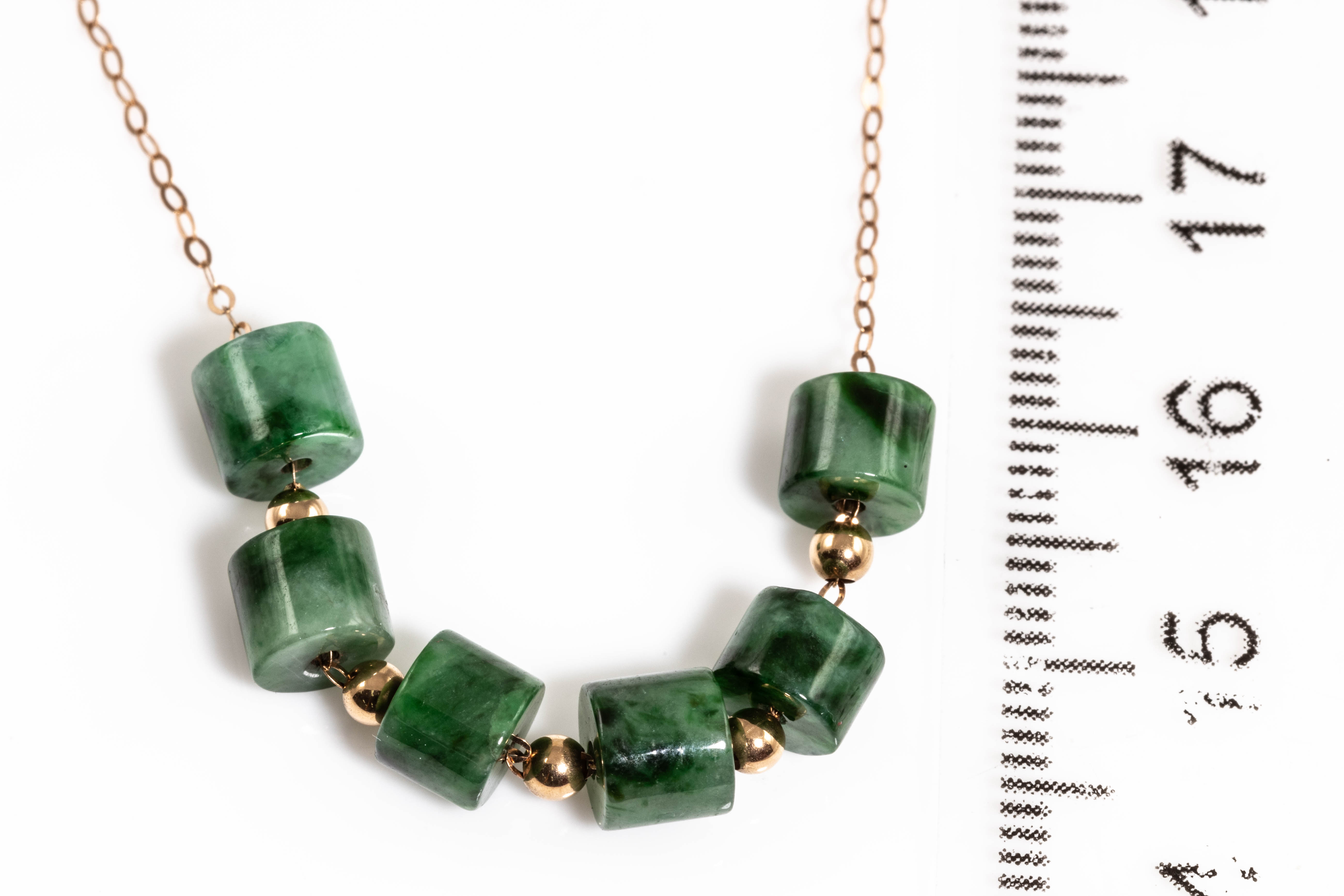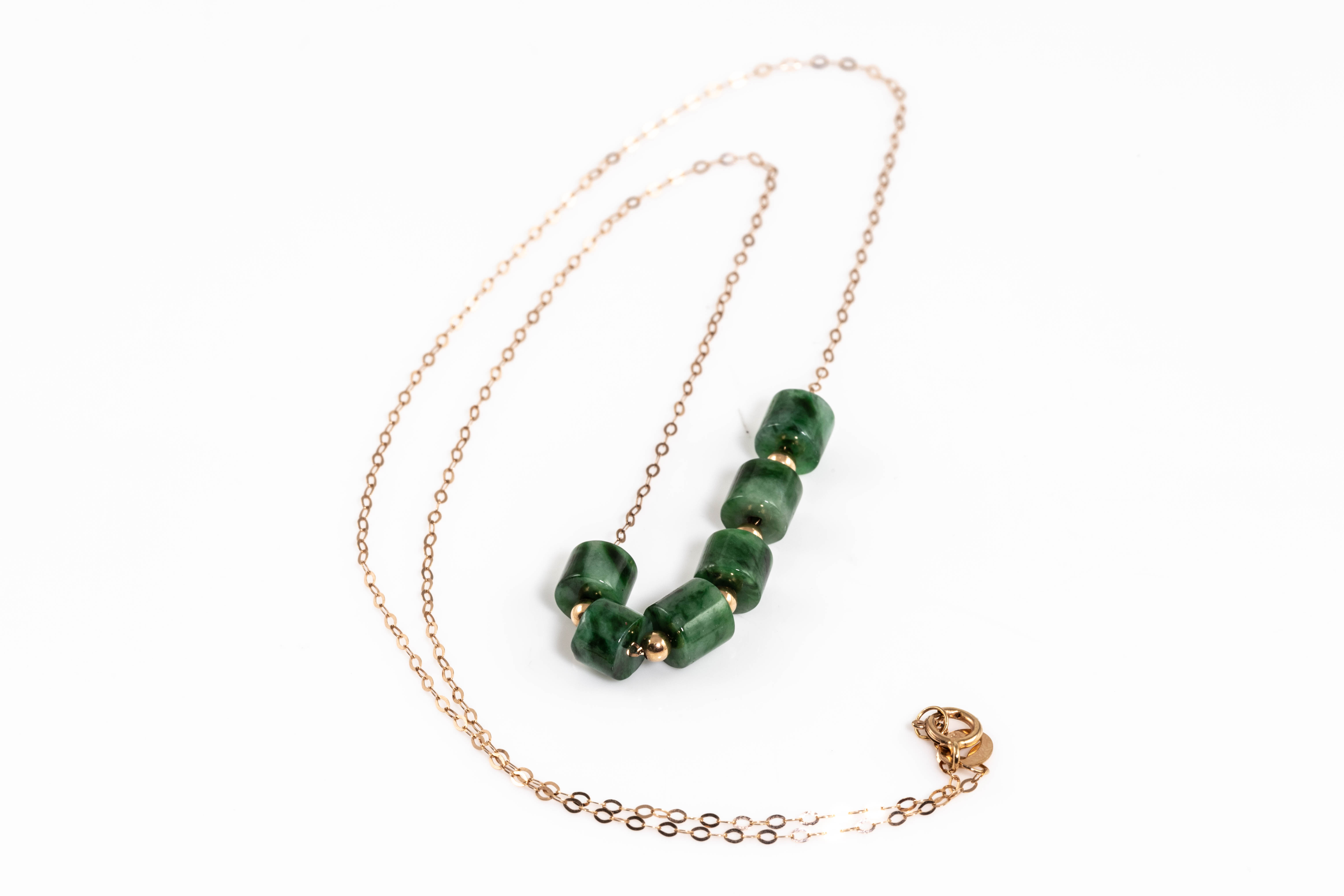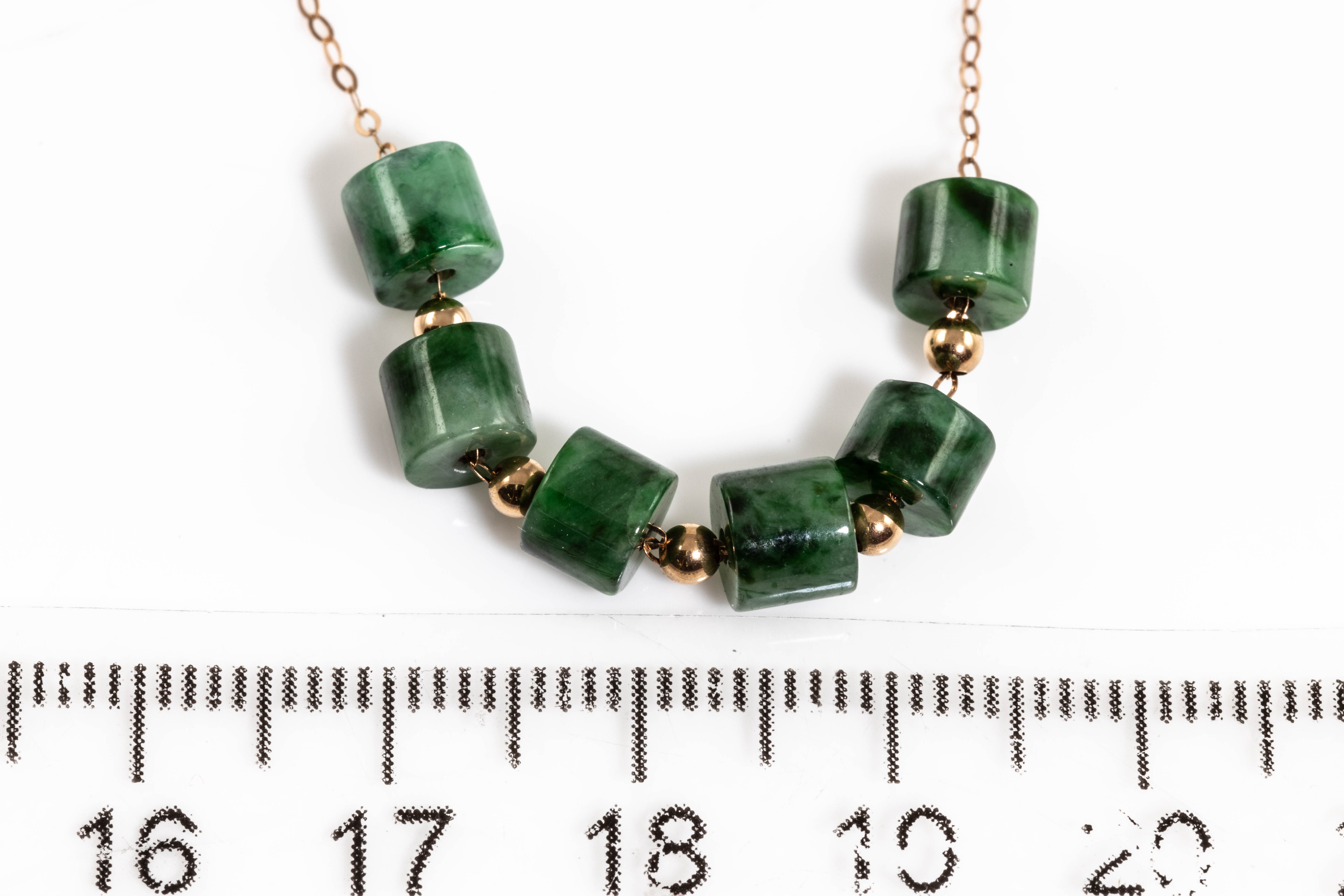 Natural Jade Necklace with Natural Jade Jadeite deep green beads. 18ct rose gold. Length 44cm. Weight 2.6g. With gem report. (As New)