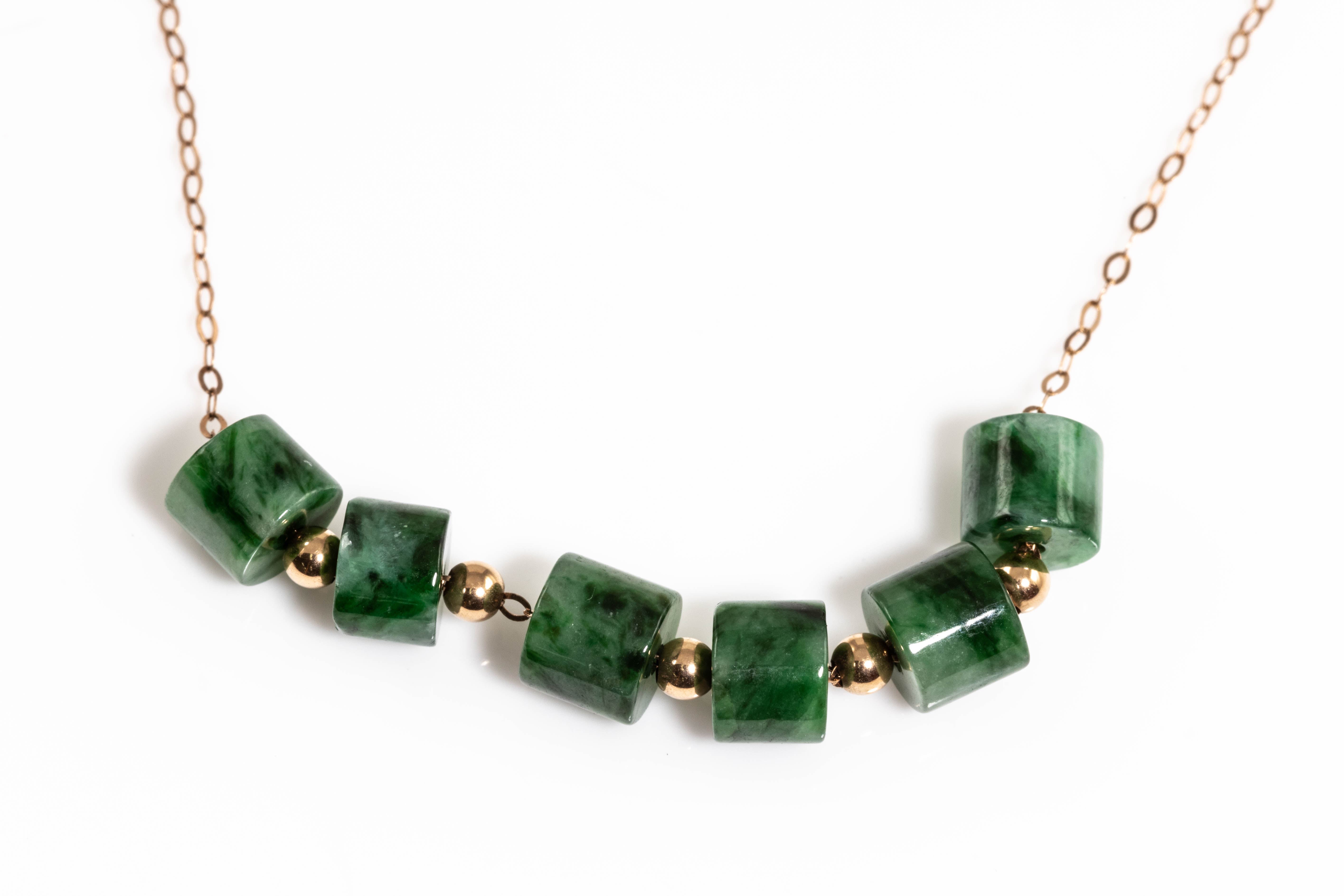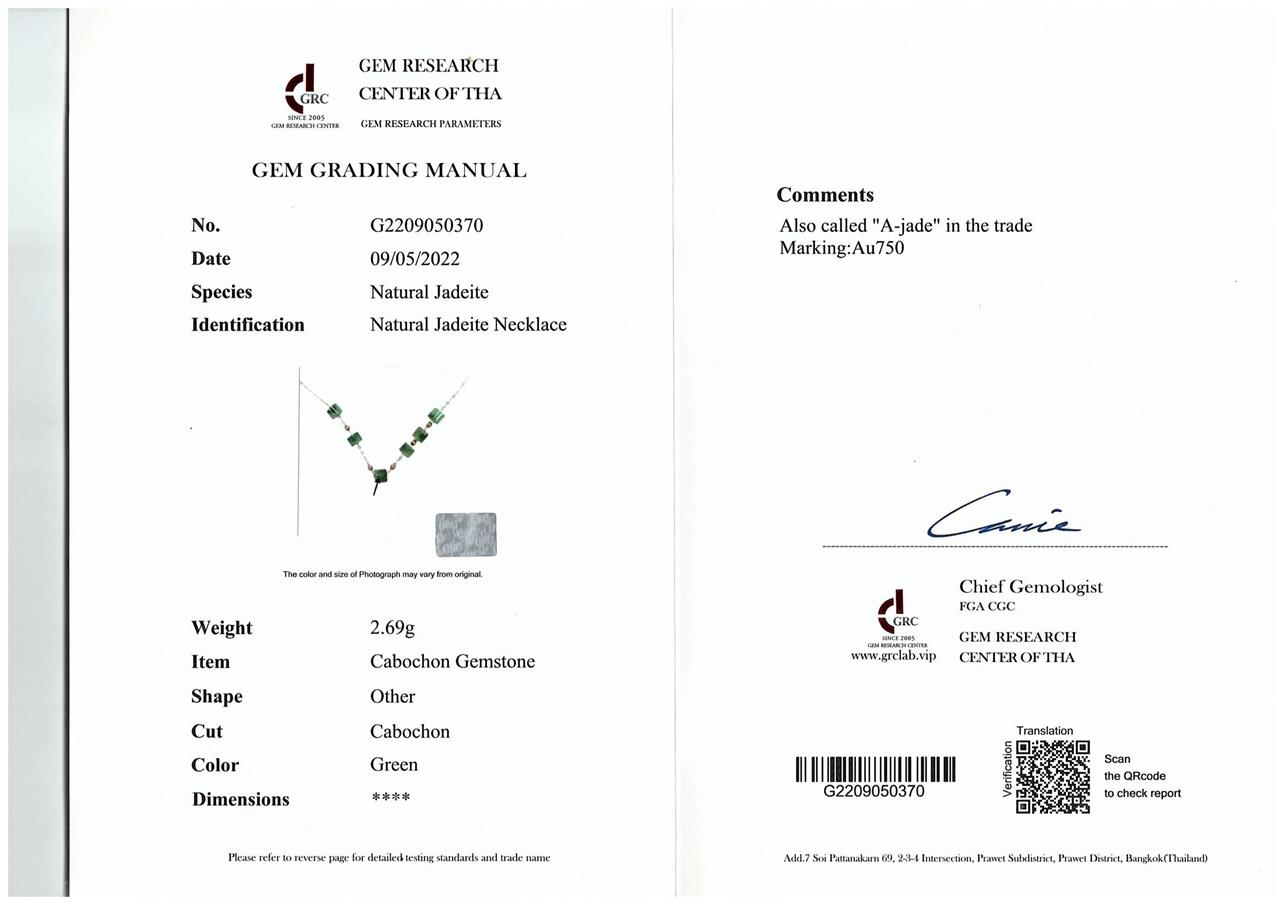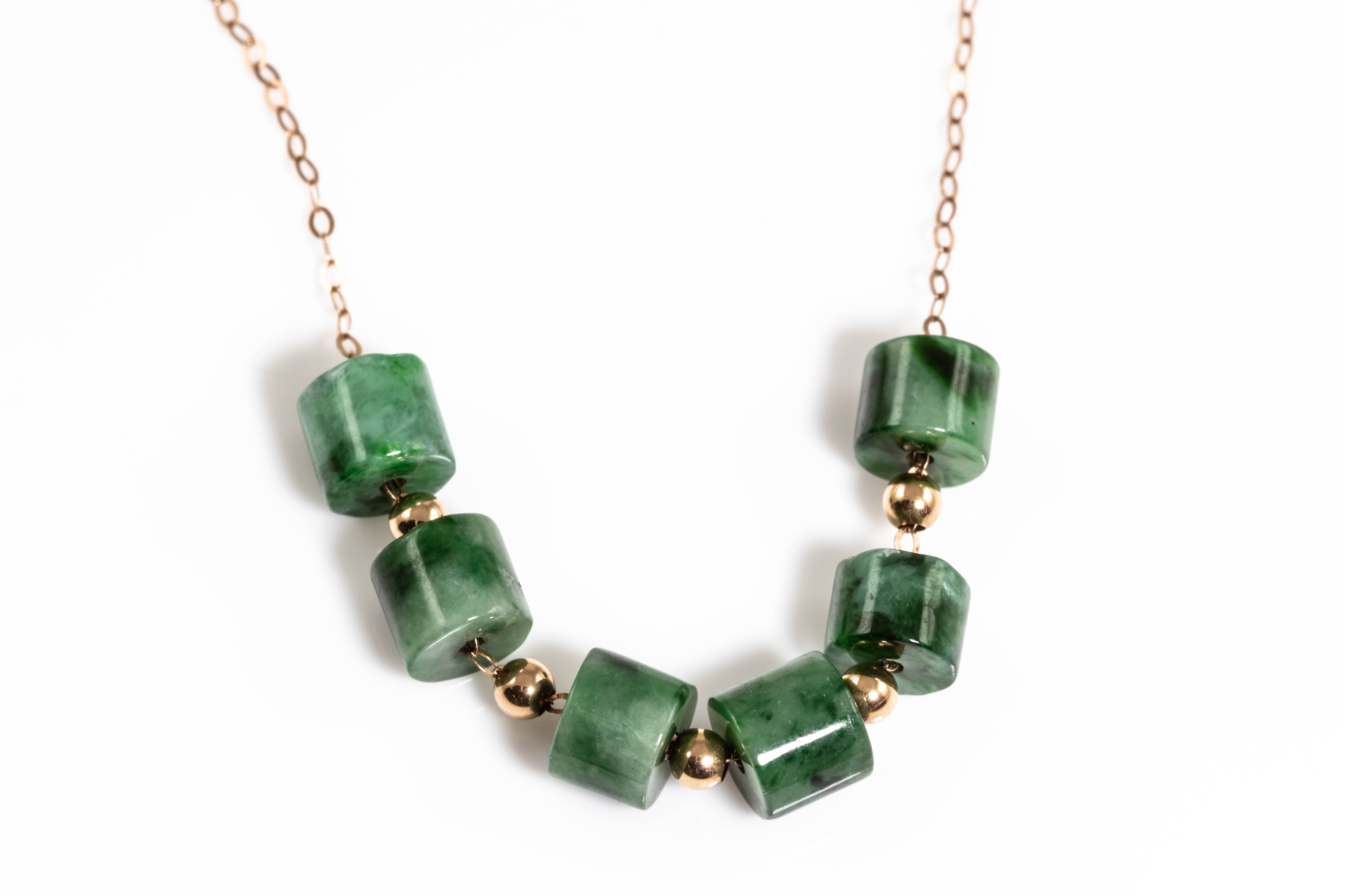 Natural Jade Necklace with Natural Jade Jadeite deep green beads. 18ct rose gold. Length 44cm. Weight 2.6g. With gem report. (As New)
