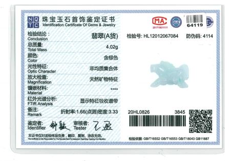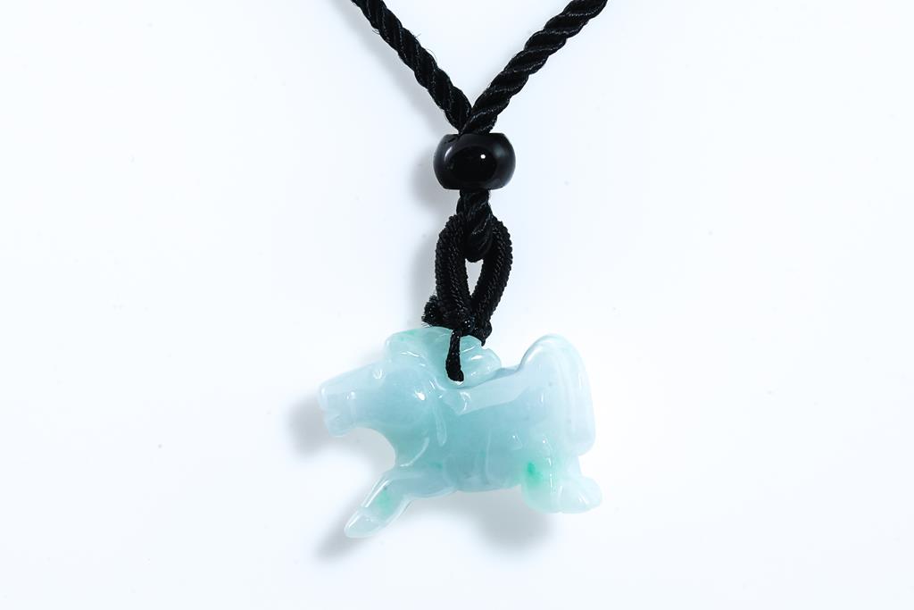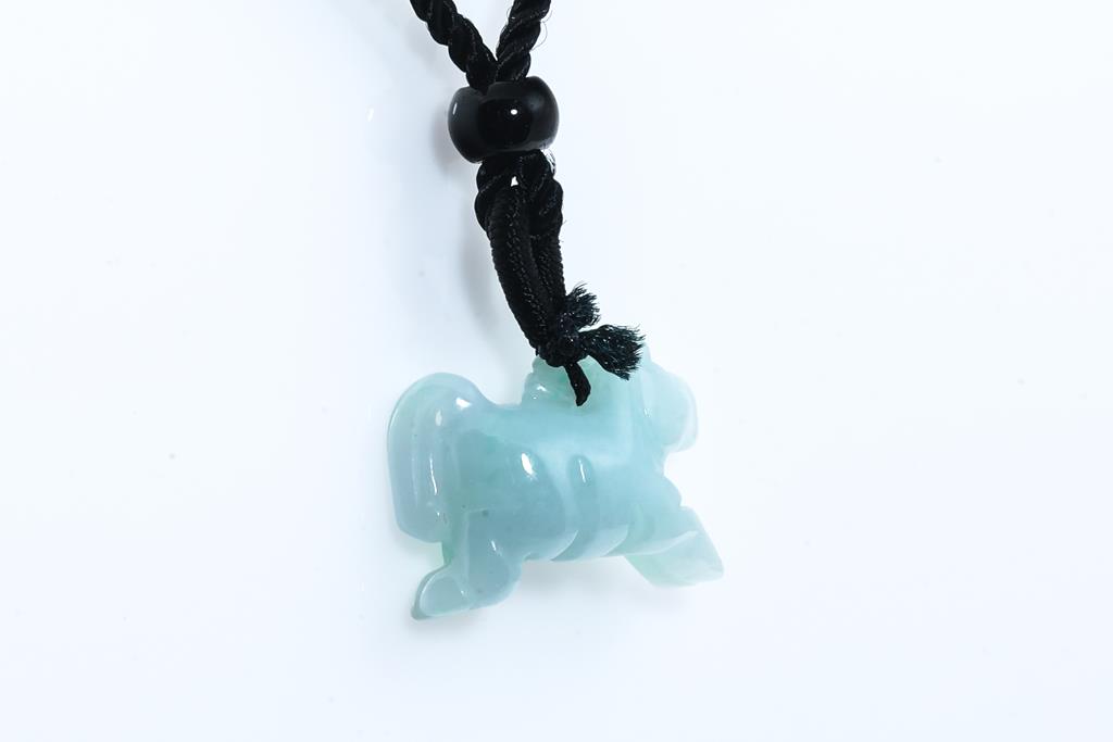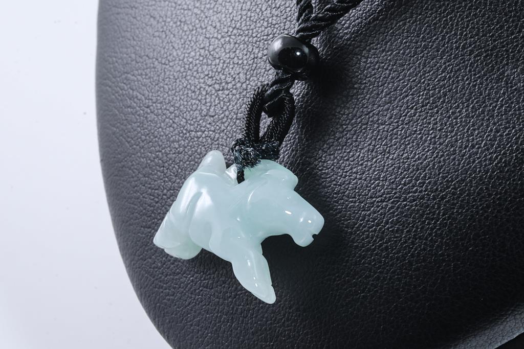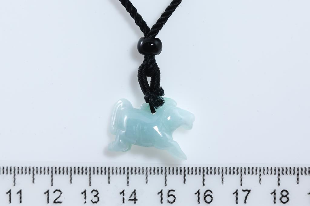 Jade pendant with carved horse translucent green-white Natural Jade - Type A (With gem Testing report). Length 2.2cm. On cord. (As New)