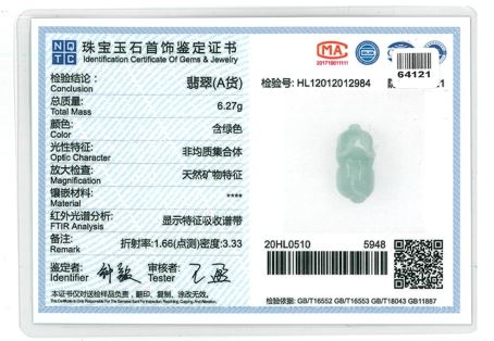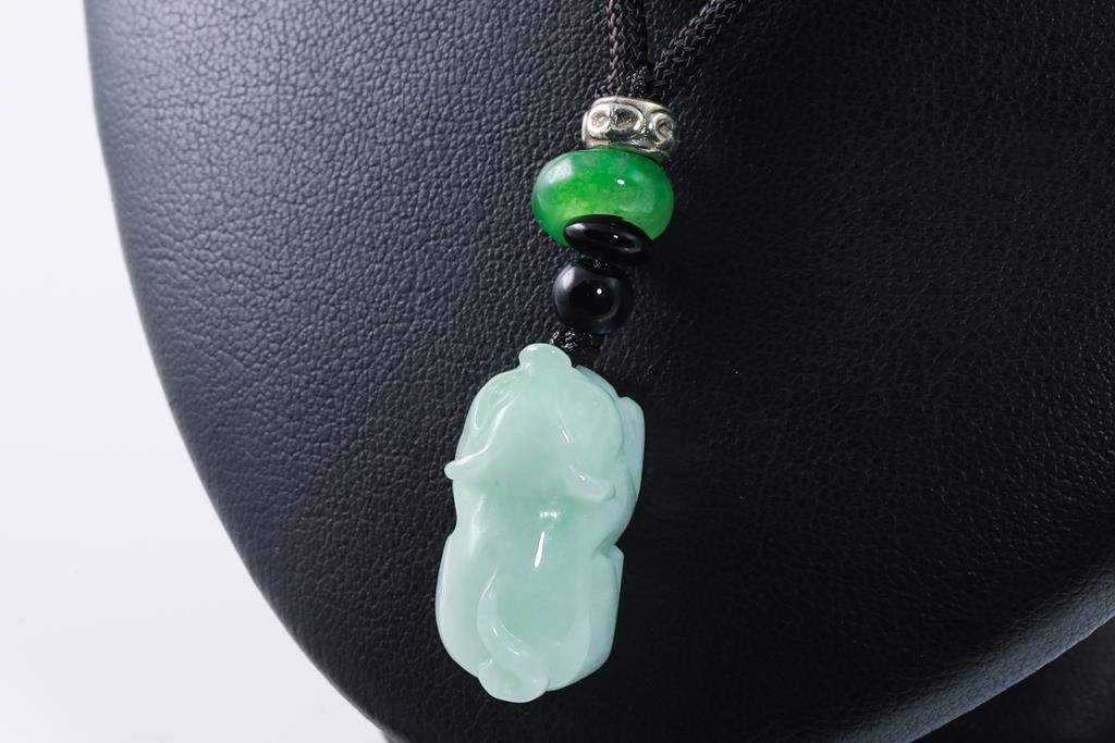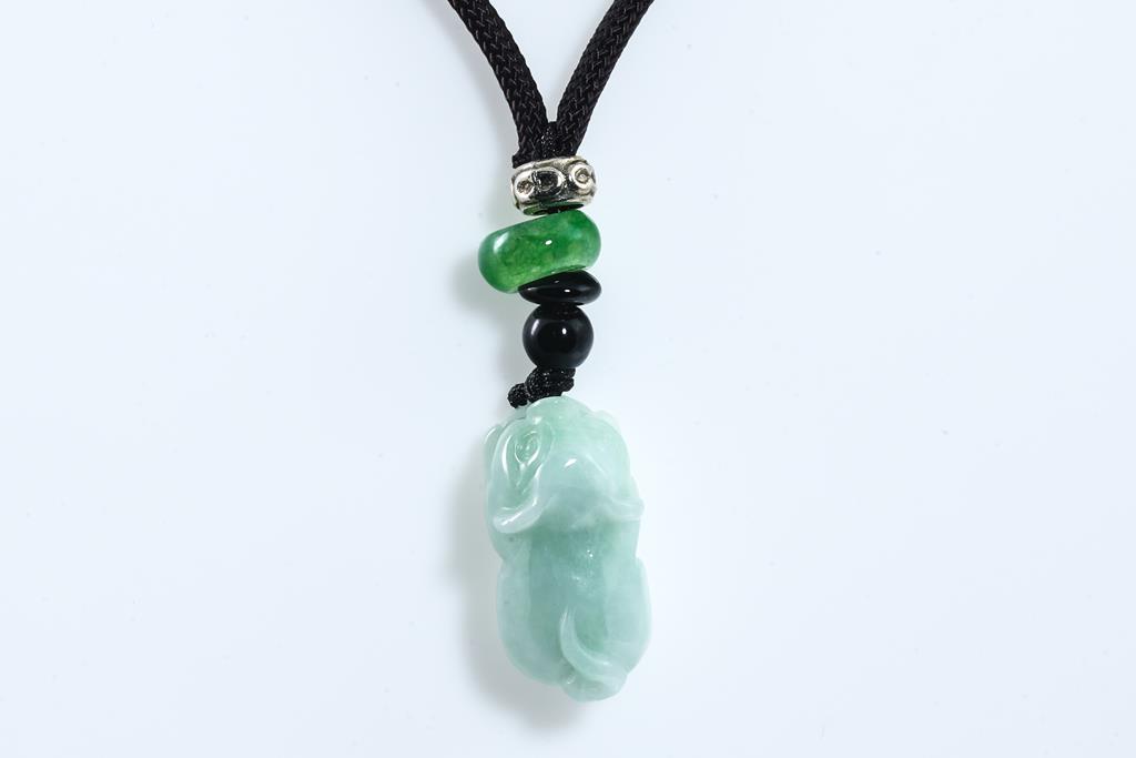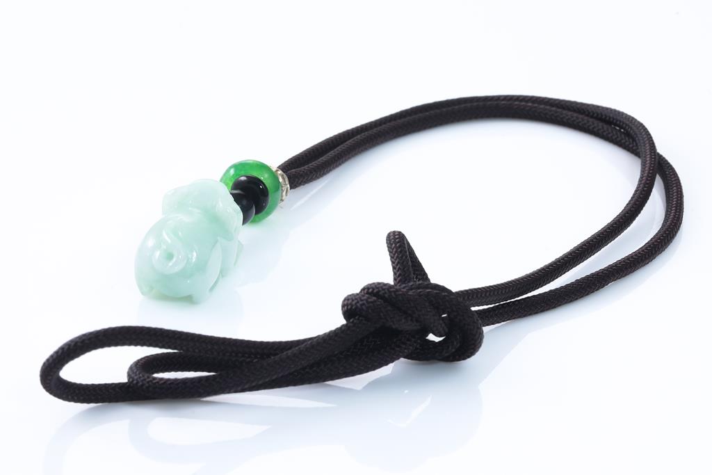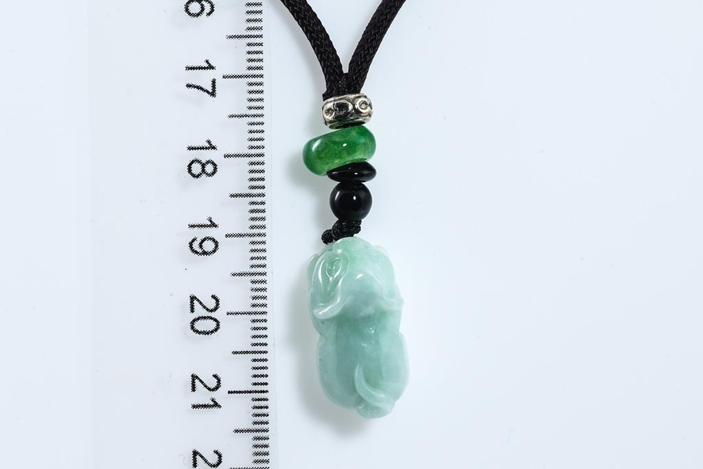 Jade Pendant with carved pig translucent green-white Natural Jade - Type A (with Gem Testing Report). Length 2.2cm. On cord. (As New)