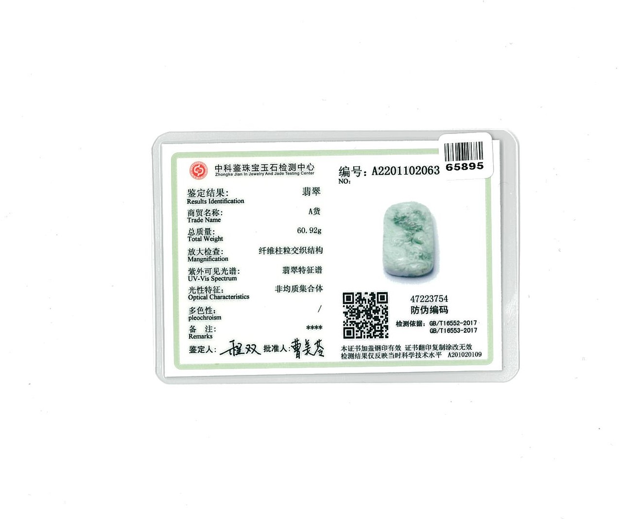 Jade pendant with carved dragons light green/dark green type A natural Jadeite Jade. With 44cm adjustable cord. With Jade Identification report. Weight 62g. (Pre-owned)