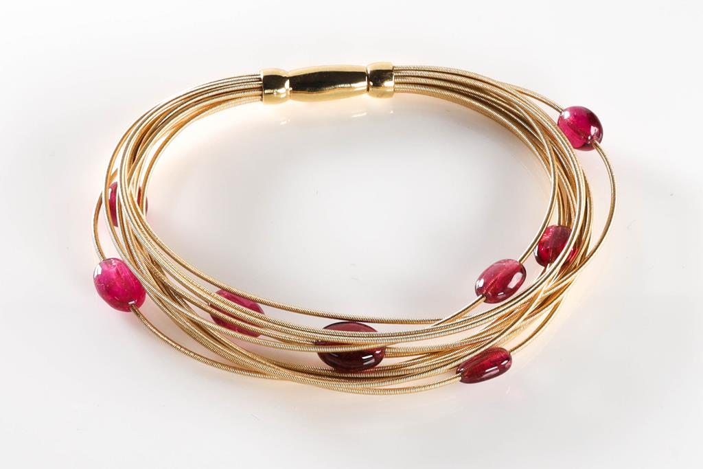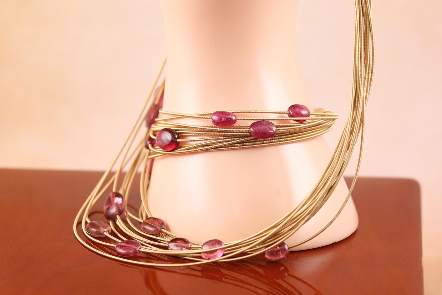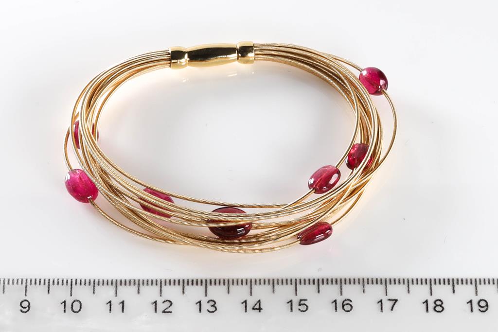 Necklace and Bracelet Garnet Set, with Garnet beads, on 18ct yellow gold wire. Length 41cm and 19cm. Total Weight 71.9g. (Pre-owned)