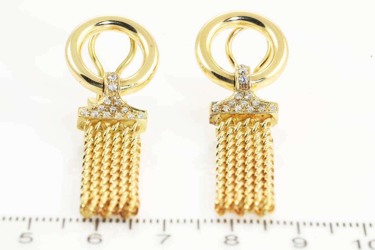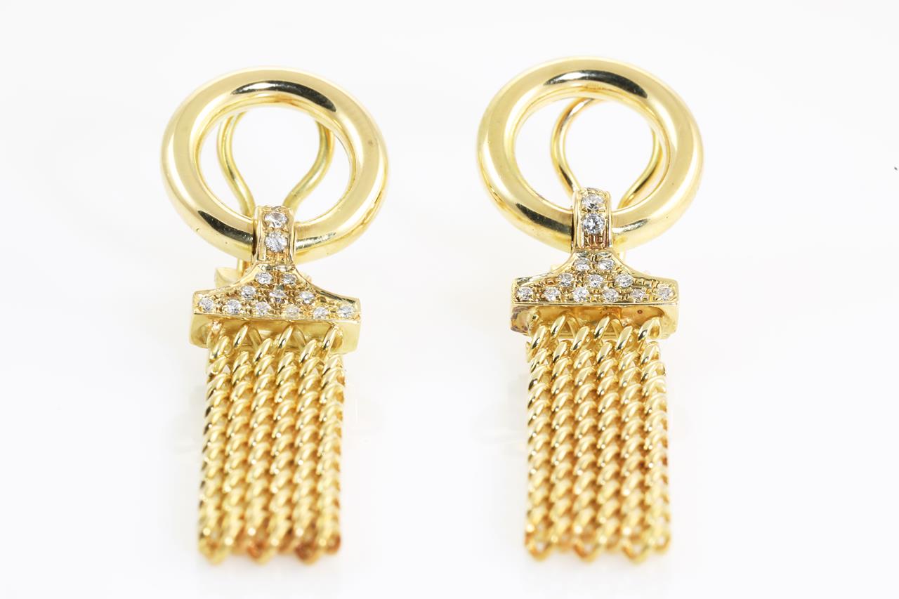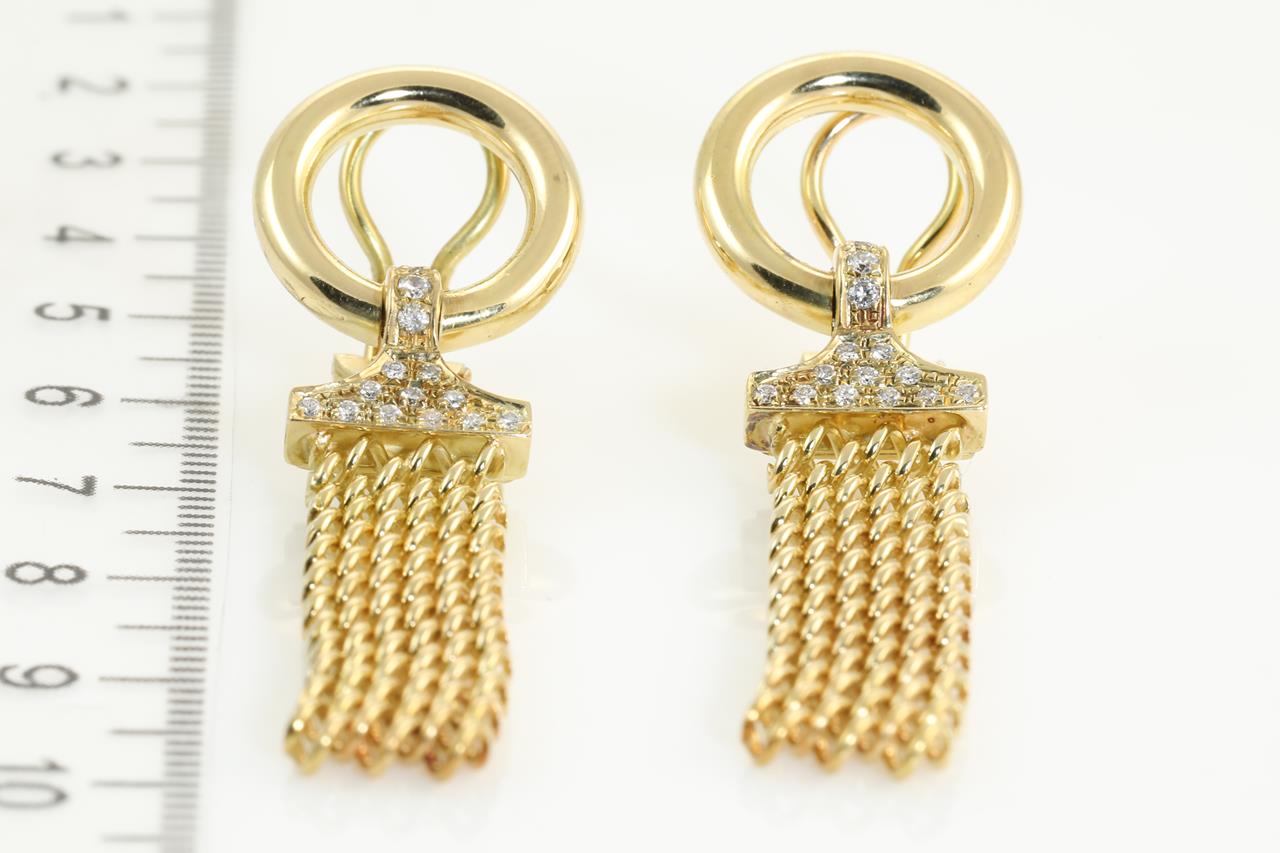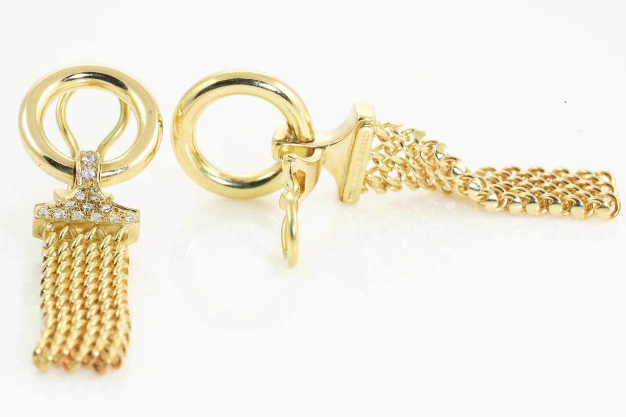 18ct yellow gold necklace & clip-on earring set with Diamonds totalling 0.80cts (Estimated grading: G VS) & carre cut Rubies. Total weight: 134.4g. Length: 44cm. With certificate #414186. (Pre-owned)