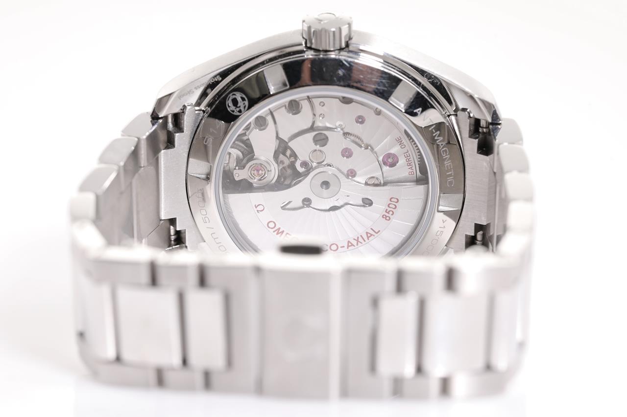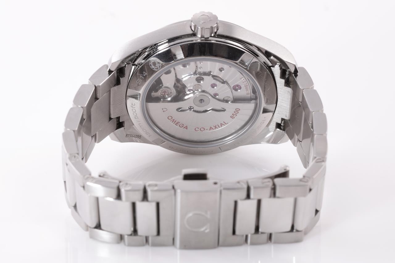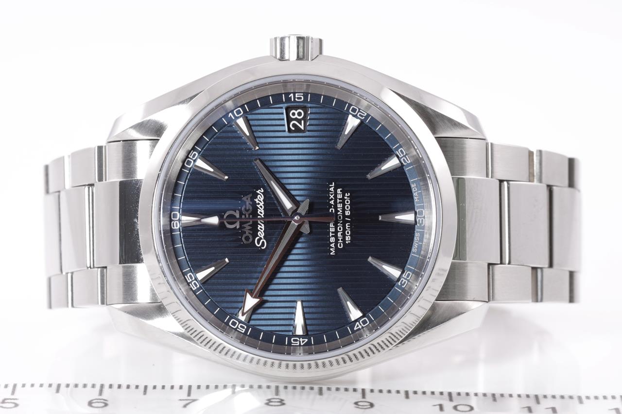 Omega Seamaster Aqua Terra Master Co-axial stainless steel automatic mens watch. Blue dial, date, case diameter: 38.5mm, wrist size: 15.5cm, Swiss made. Ref# 231.10.39.21.03.002. With Omega stainless steel bracelet and clasp. With Certificate of Authenticity, Omega International warranty card, pictograms card and Omega box. 3 month FSA warranty. (Pre-owned)