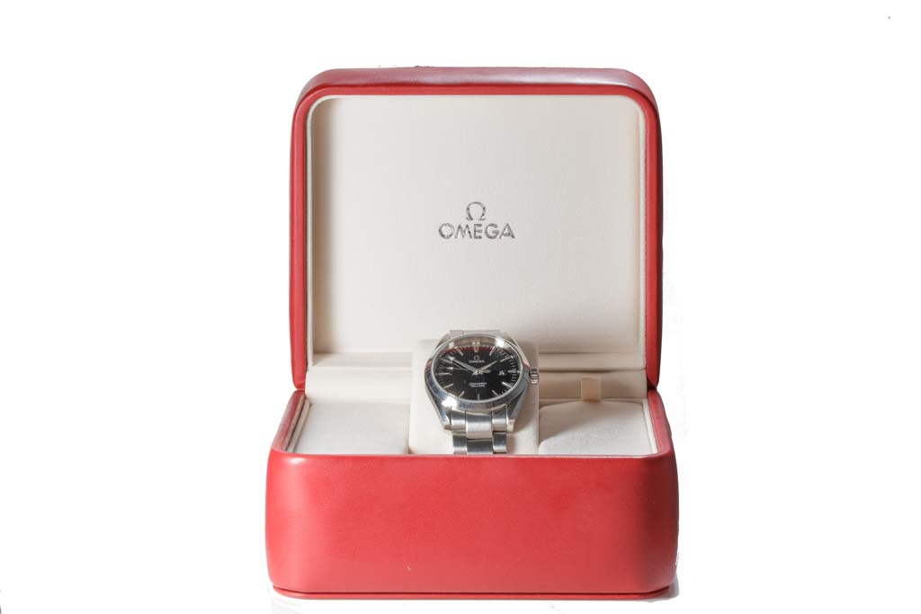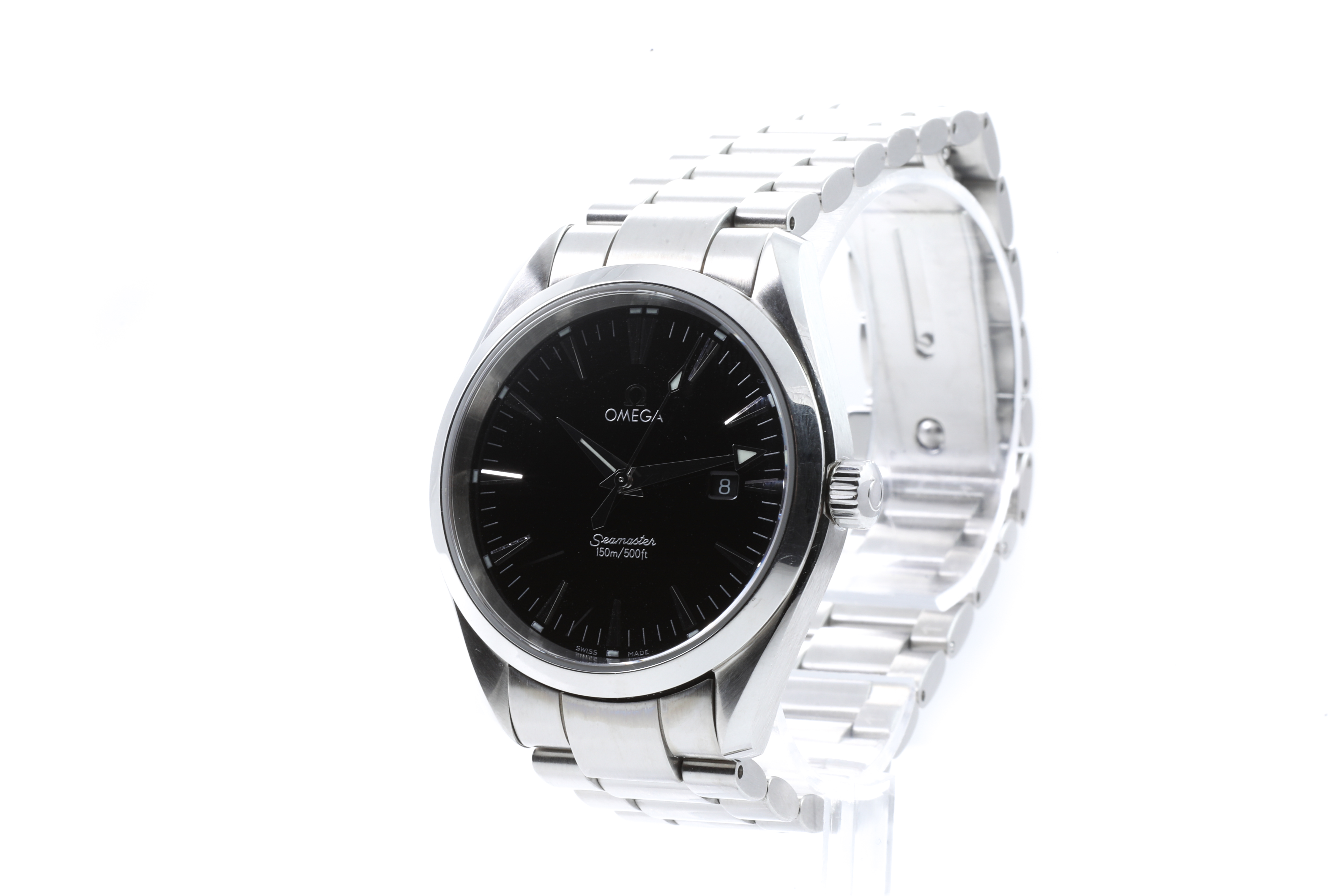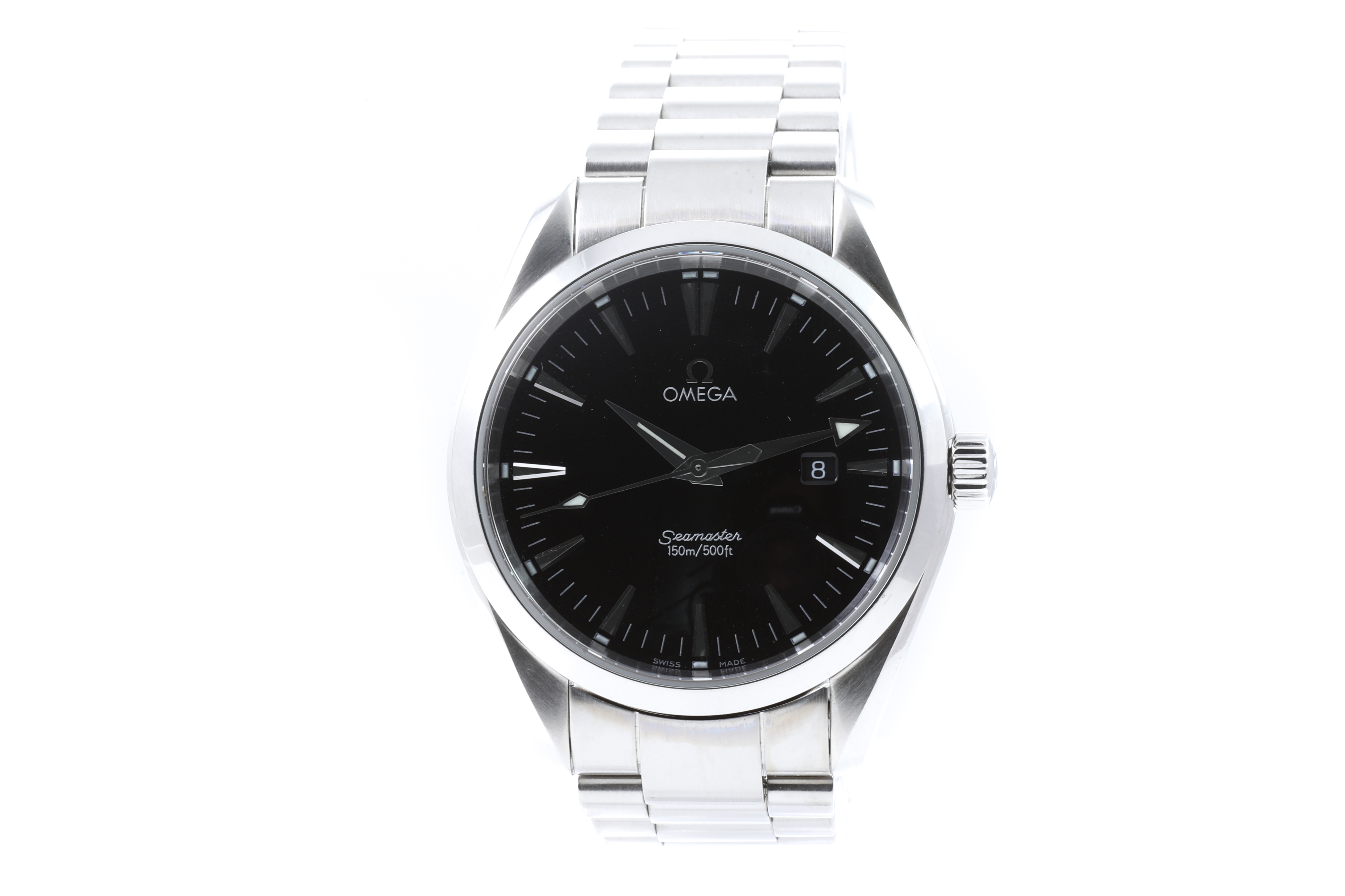 Omega Seamaster Aqua Terra stainless steel quartz mens watch. Black dial, Date, case diameter: 39.2mm, wrist size: 20cm, Swiss made. With Omega stainless steel bracelet and clasp. Ref# 2517.50, Circa: 2010. With Certificate of Authenticity, Omega International Warranty Card dated 24/09/2009, Pictograms Card and Omega box. 3 month FSA warranty. (Pre-owned)