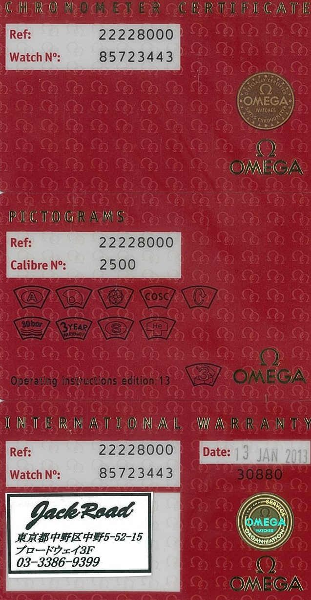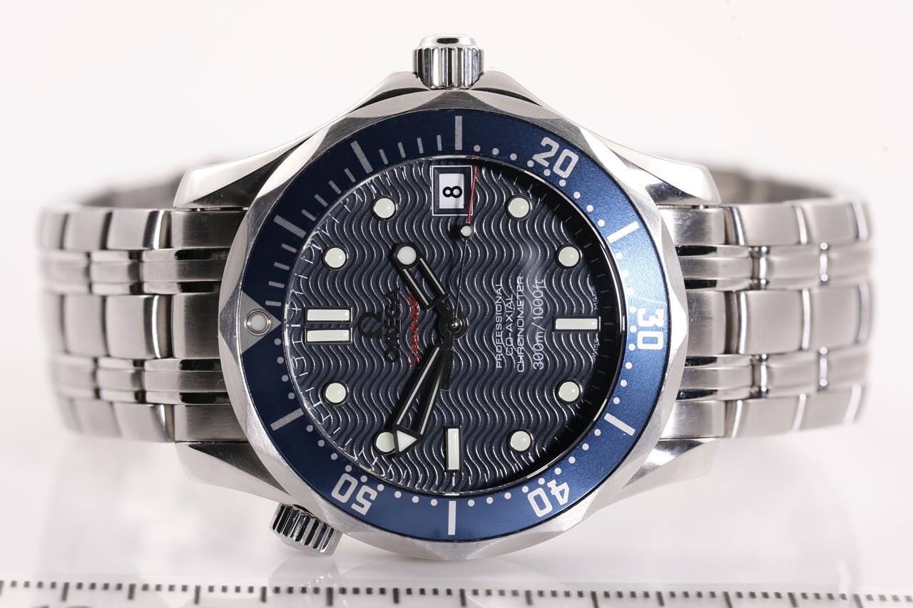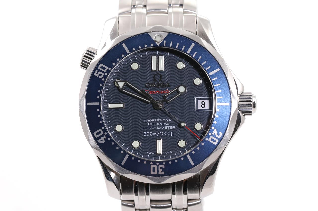 Omega Seamaster Diver Co-Axial Professional stainless steel automatic watch. Blue dial, date, case diameter: 36mm, wrist size: 18cm, Swiss made. Ref# 2222.80. With Omega stainless steel bracelet and clasp. With Certificate of Authenticity, Omega International warranty card dated 13/01/2013, pictograms, chronometer certificate card and Omega box. 3 month FSA warranty. (Pre-owned)