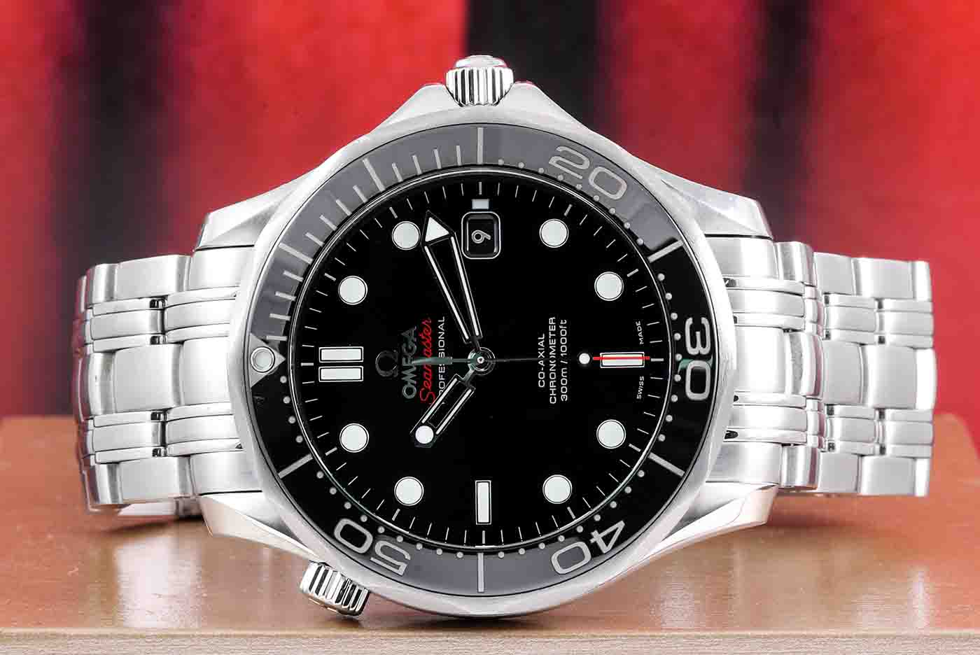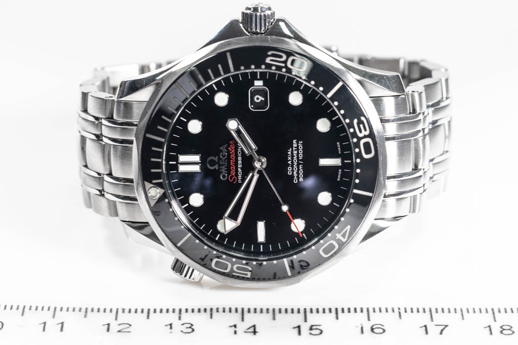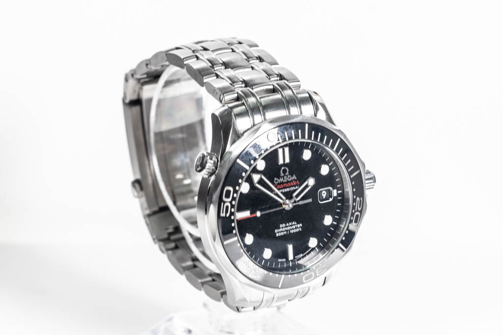Omega Seamaster Professional Diver 300M Co -Axial stainless steel automatic mens watch. Black dial, date, case diameter: 41mm, wrist size: 16.5cm, Swiss made. Ref# 212.30.41.20.01.003. With Omega stainless steel bracelet and clasp. With Certificate of Authenticity and Omega box. 3 month FSA warranty. (Pre-owned)