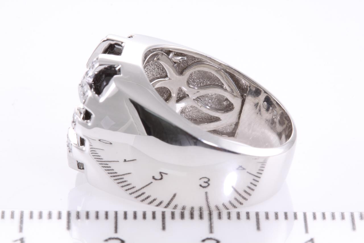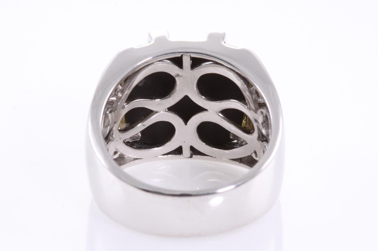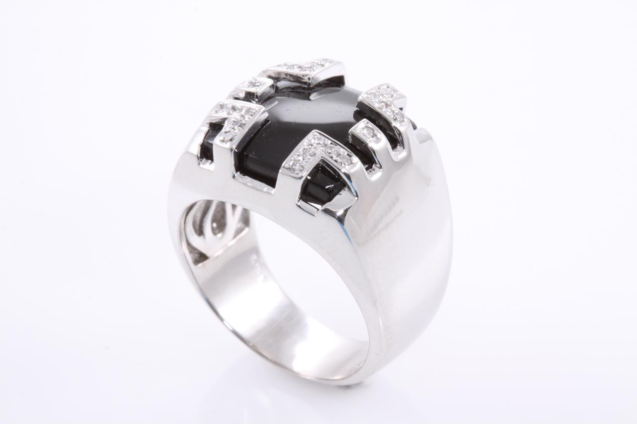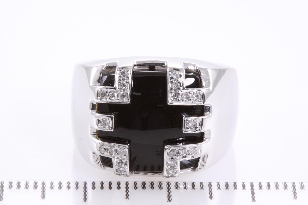 Onyx and Diamond ring with Diamonds totalling 0.15cts. 18ct white gold. Ring size M1/2 - can only be resized up or down by a maximum of 3 sizes. (Pre-owned)