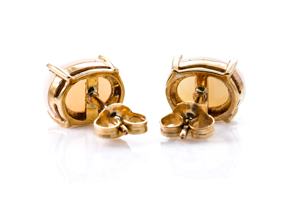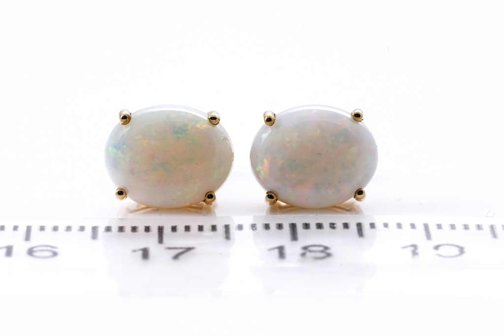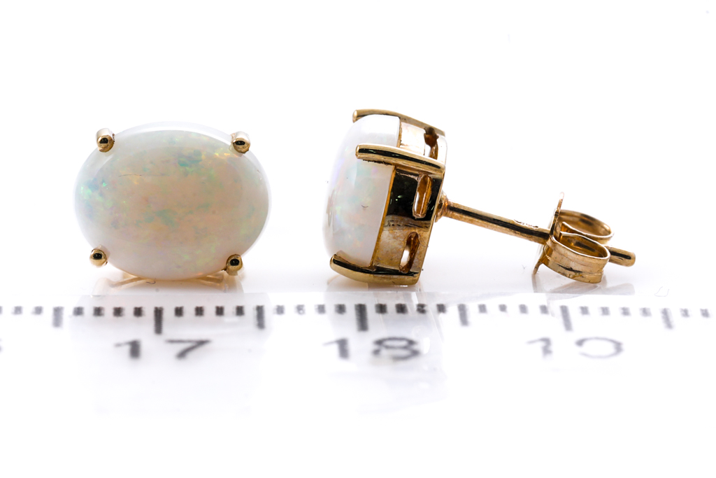 Opal earrings with cabochon cut solid white Opal totalling approximately 3.00cts. 9ct yellow gold. Weight 2.1g. (Pre-owned)