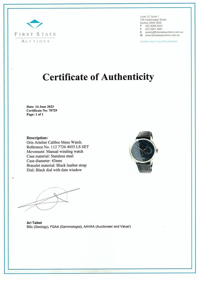 Oris Artelier Calibre 112 Mens Watch | First State Auctions