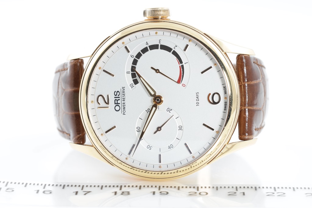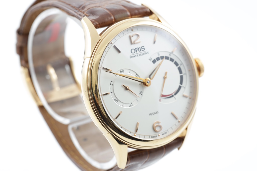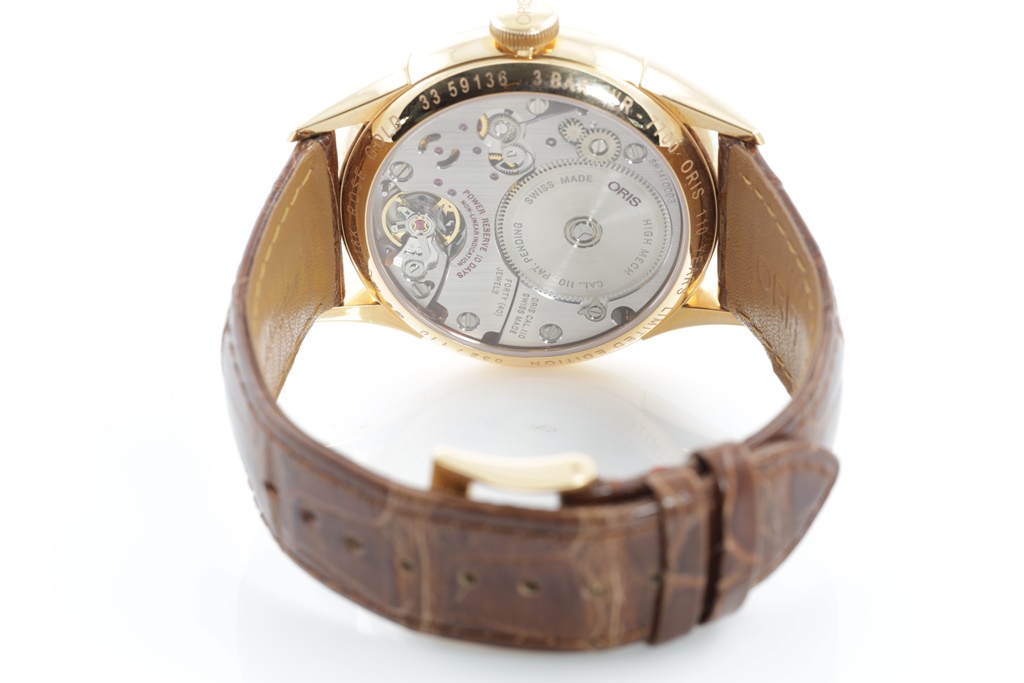 Oris Artelier Oris 110 Limited Edition of 110 18ct rose gold manual winding mens watch. Silver dial, case diameter: 43mm, length: 21cm, Swiss made. Ref# 110 7700 6081-SET LS. With Oris brown leather strap and 18ct gold buckle. Note: minor scratches and wear on strap due to being display stock. With Certificate of Authenticity, Oris standard user manual and Oris box. 3 month FSA warranty. (As New)