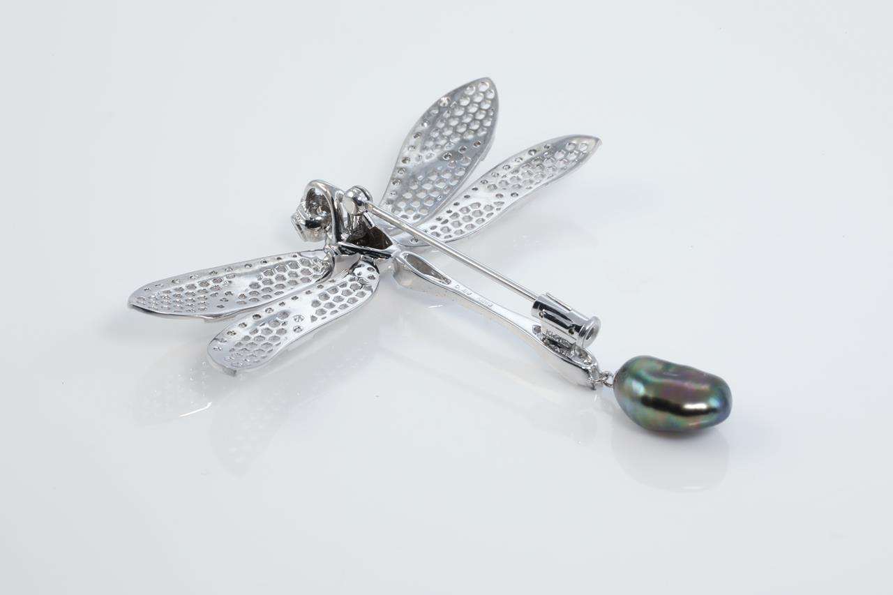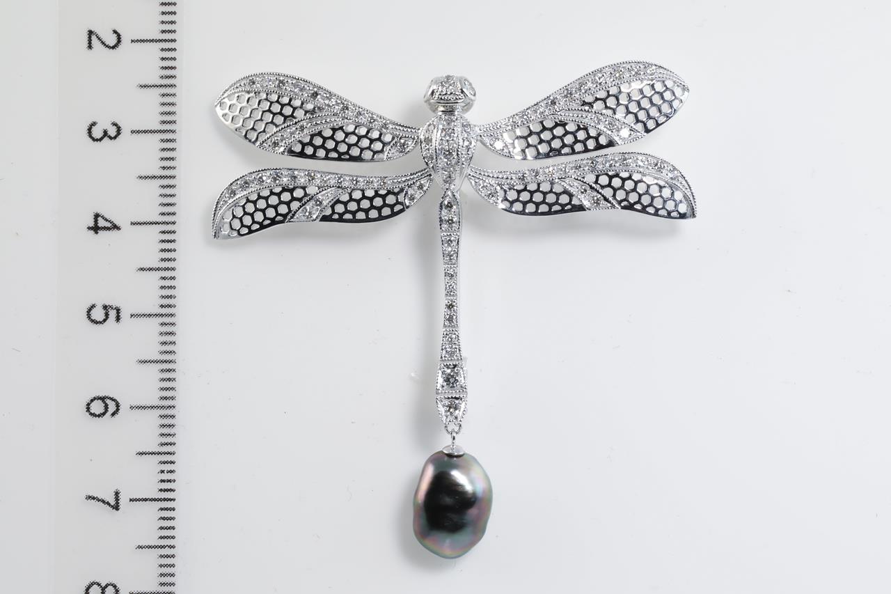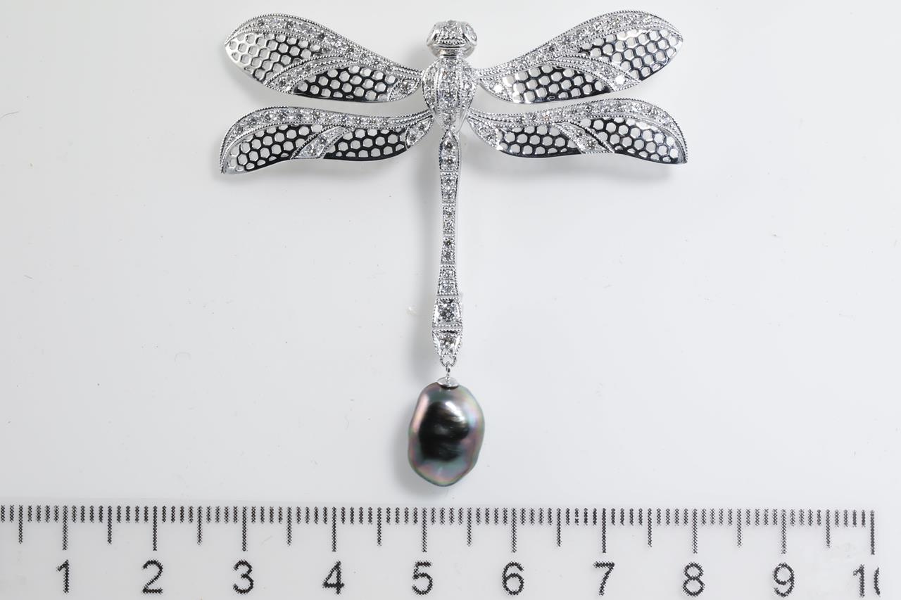 Pearl and Diamond brooch with baroque Tahitian Pearl and Diamonds totalling 0.80ct (Estimated grading: H-I SI). 18ct white gold. Weight: 9.40g (Pre-owned)