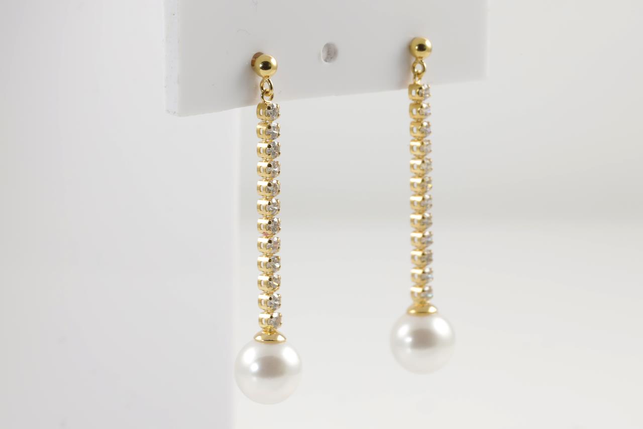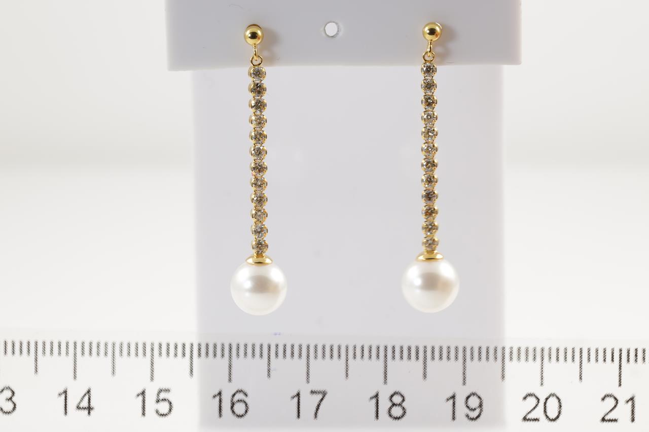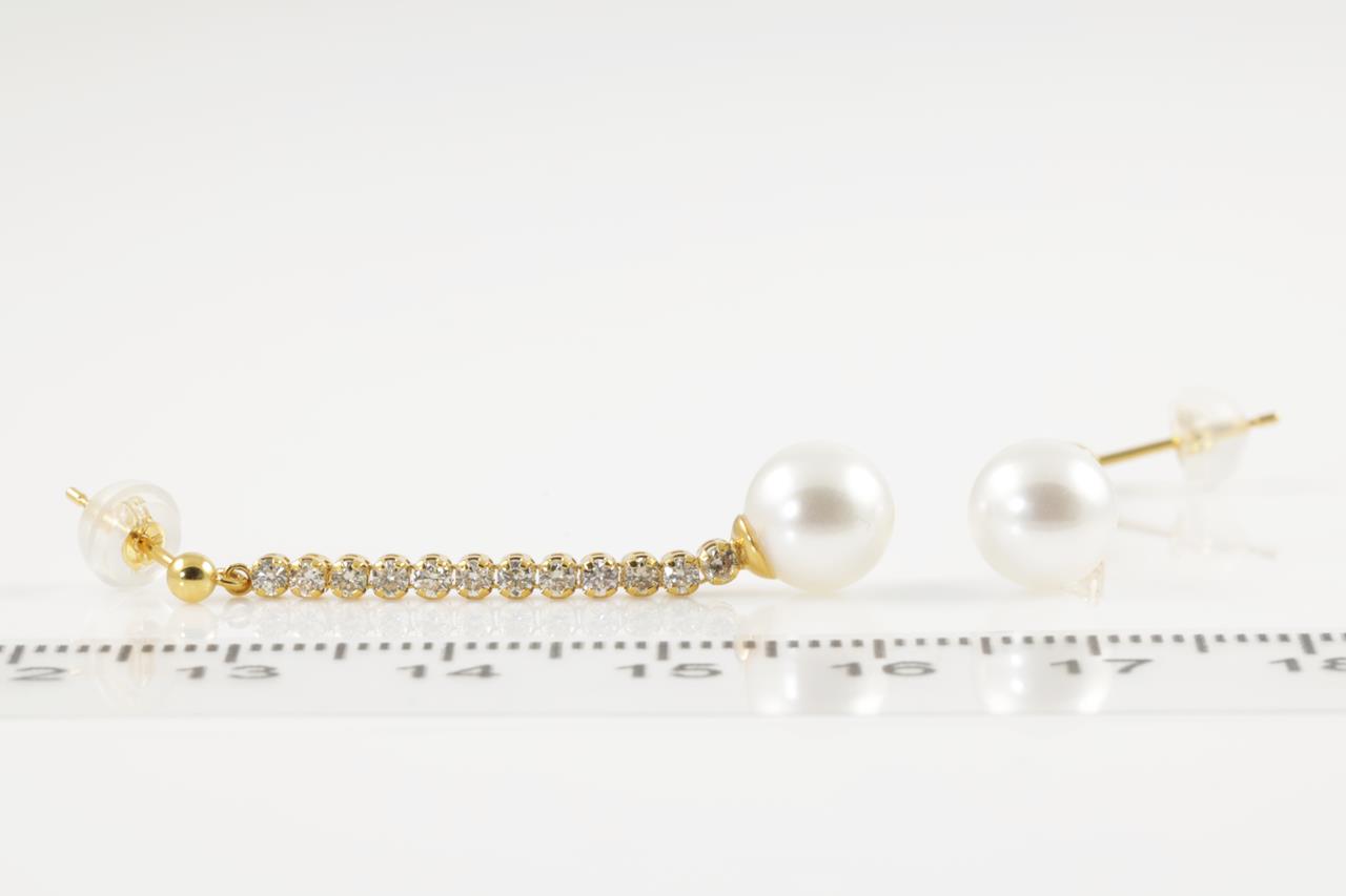 Pearl and Diamond drop earrings with Akoya pearls of 7mm and Diamonds totalling 0.52cts (Estimated grading: I-K SI-P1). 18ct yellow gold with silicon backs. Weight: 2.1g (Pre-owned)