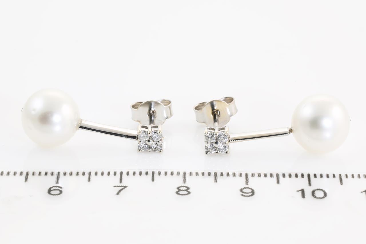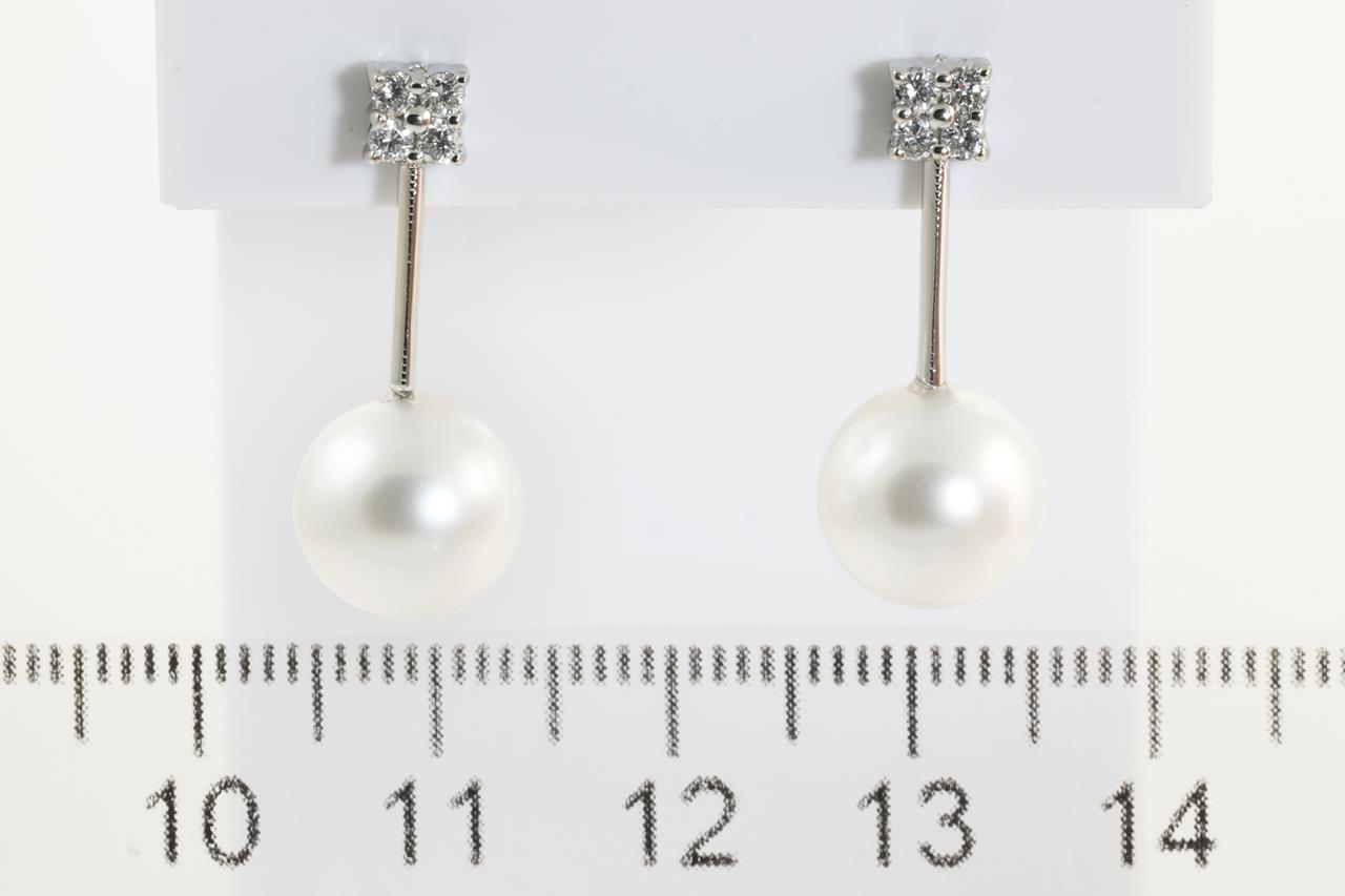 Pearl and Diamond Earrings with South Sea Pearl of 9.7mm and round Diamonds totalling 0.24cts. 18ct white gold. Weight: 4.8g (Pre-owned)