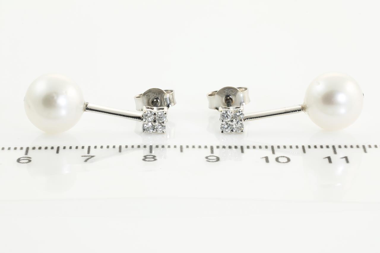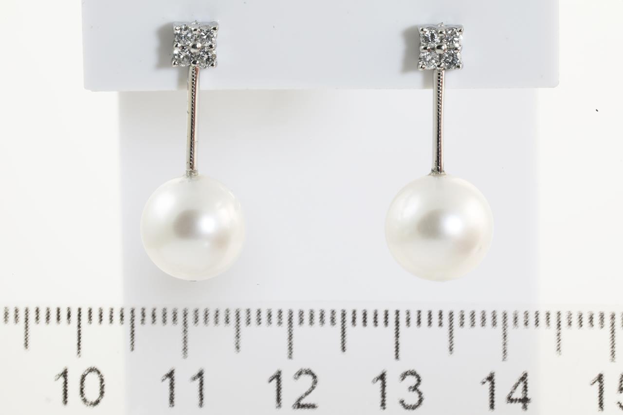 Pearl and Diamond Earrings with South Sea Pearl of 10.0mm and round Diamonds totalling 0.24cts. 18ct white gold. Weight: 5.0g (Pre-owned)