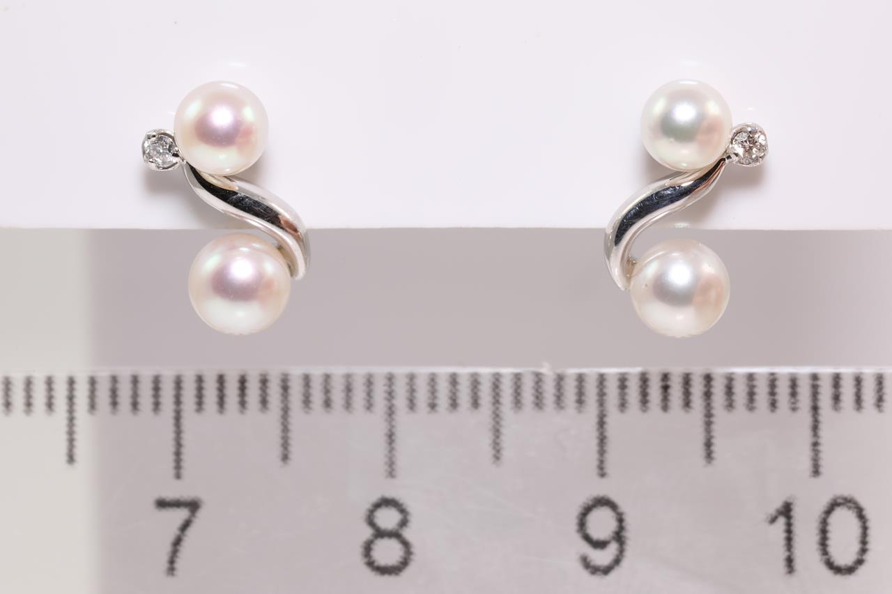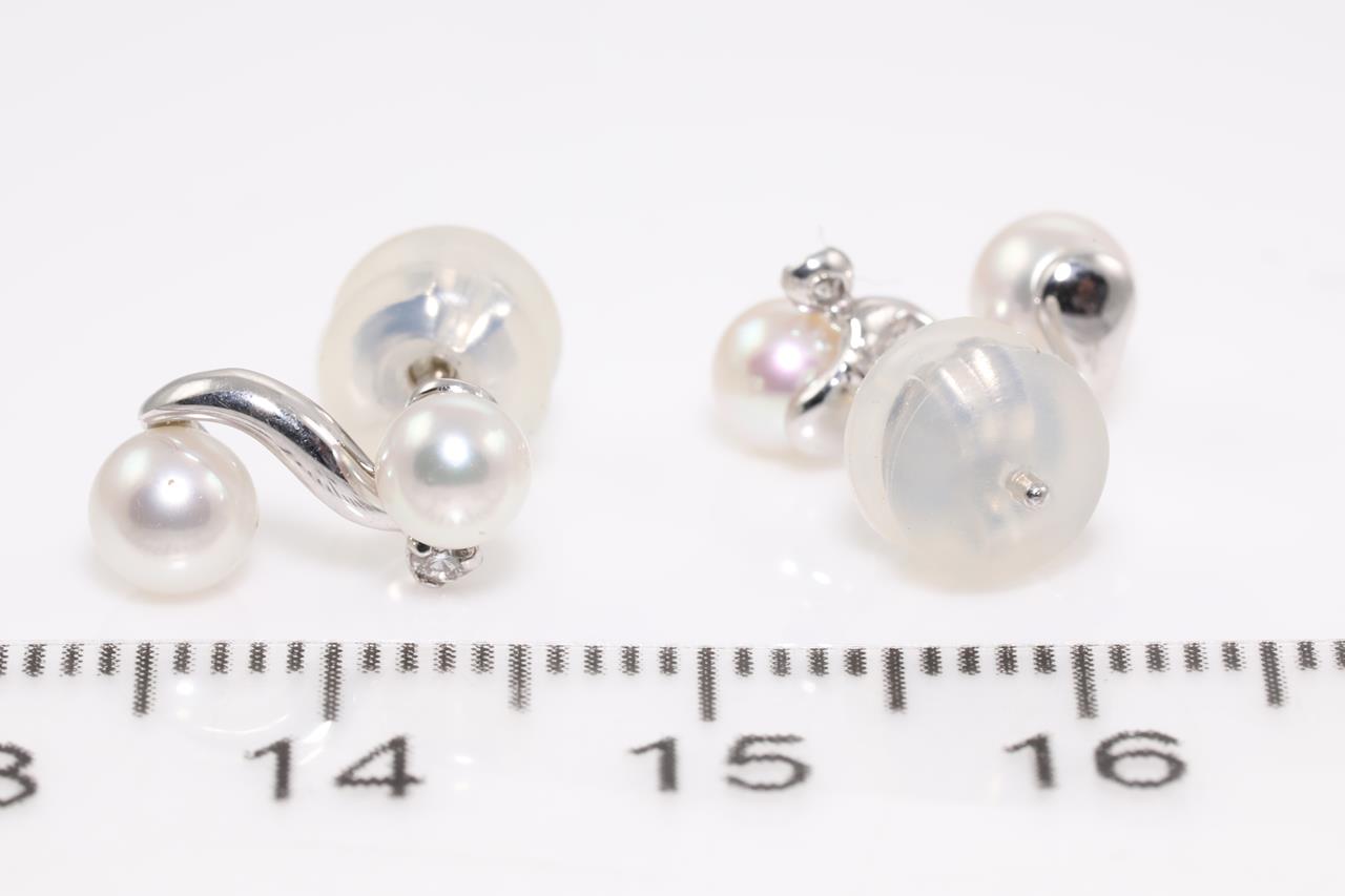 Pearl and Diamond earrings with 4 cultured pearls of 4mm and Diamonds totalling 0.04cts. 18ct white gold with gold & silicon backs. Weight: 2g. (As new)