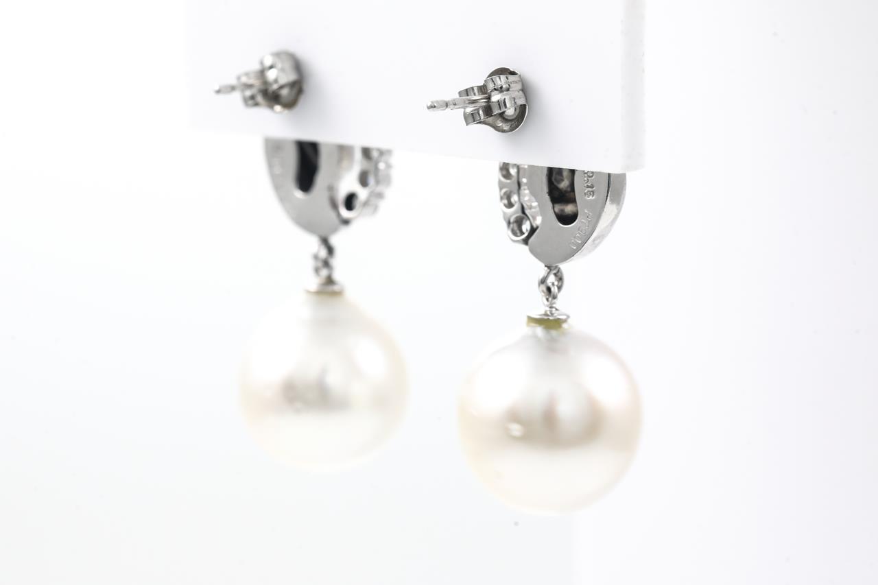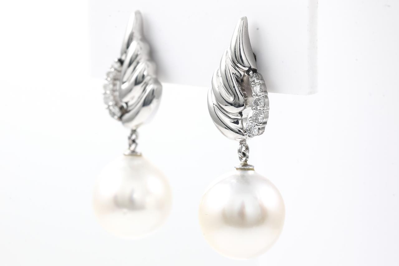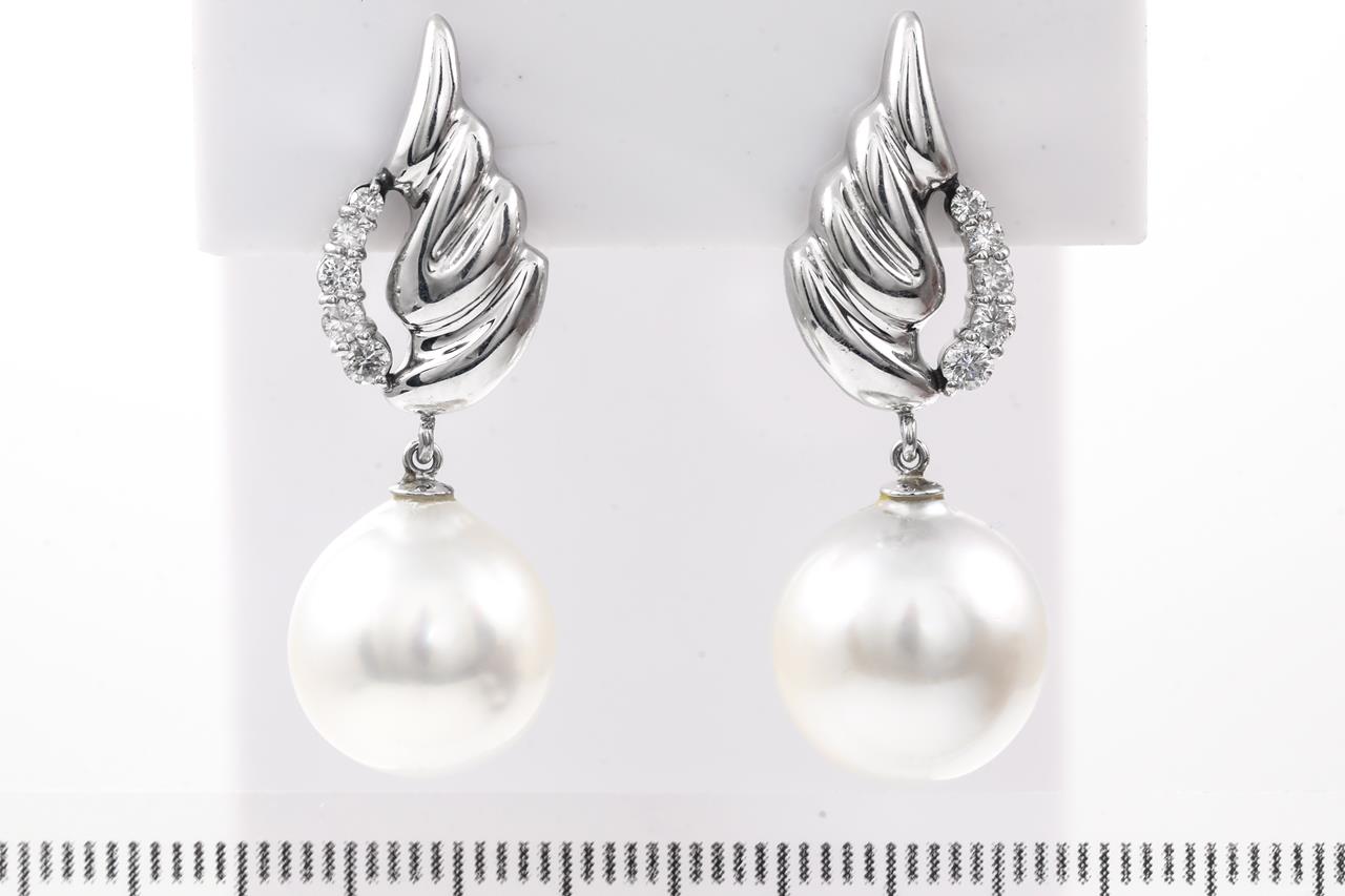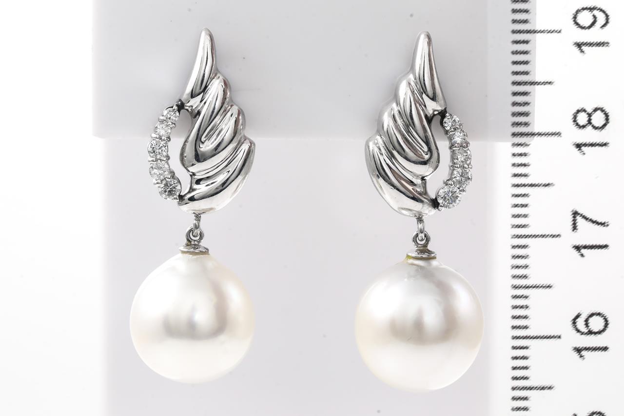Pearl and Diamond Earrings with South Sea Pearls of 12.5mm and Diamonds totalling 0.32cts (Estimated grading: H P1). Platinum. Weight: 9.4g (Pre-owned)