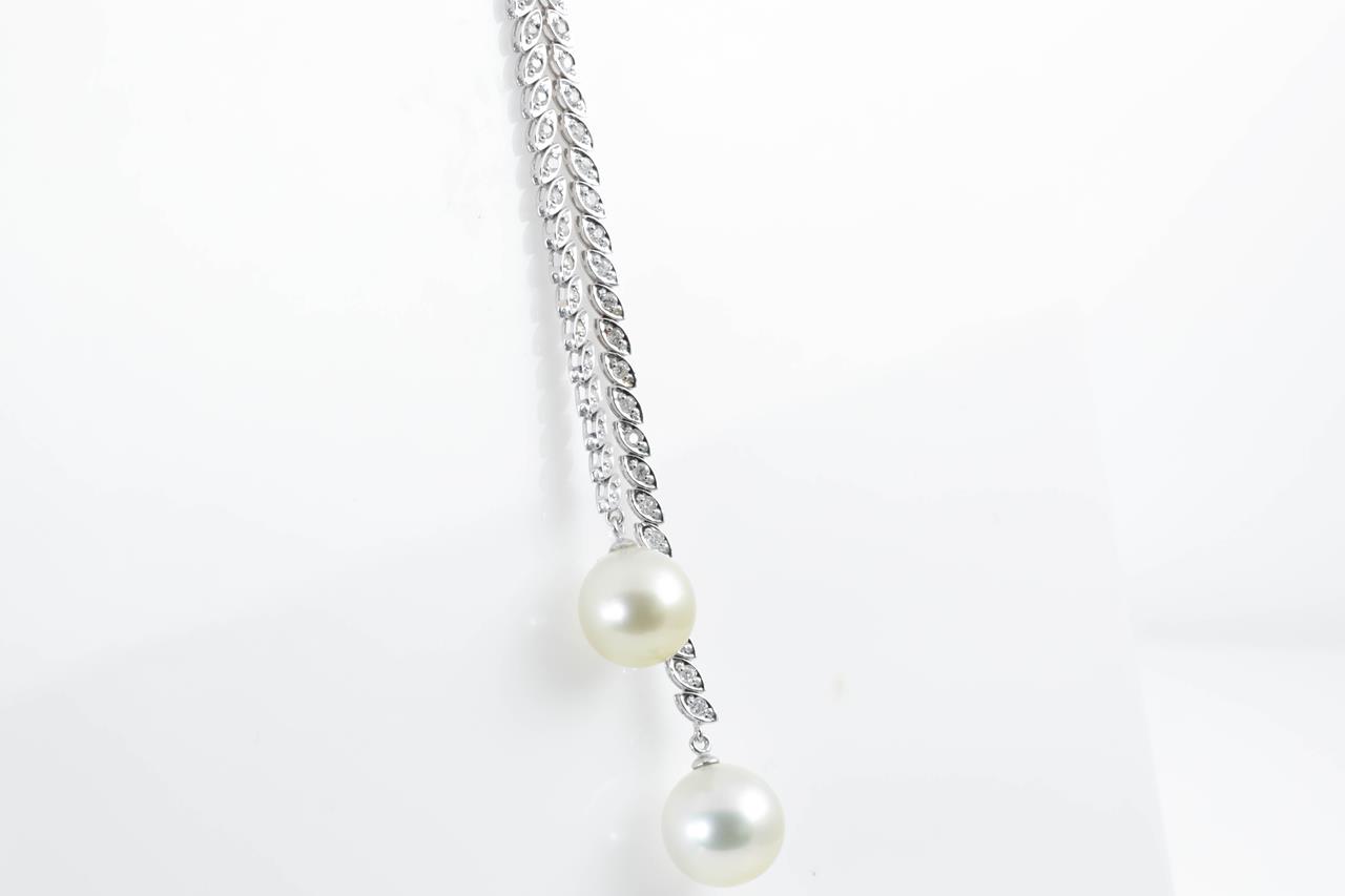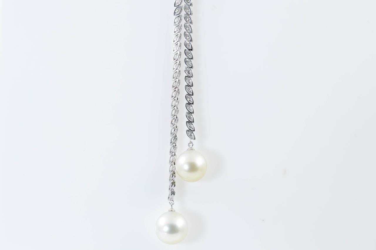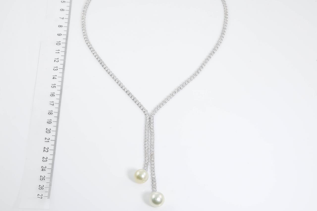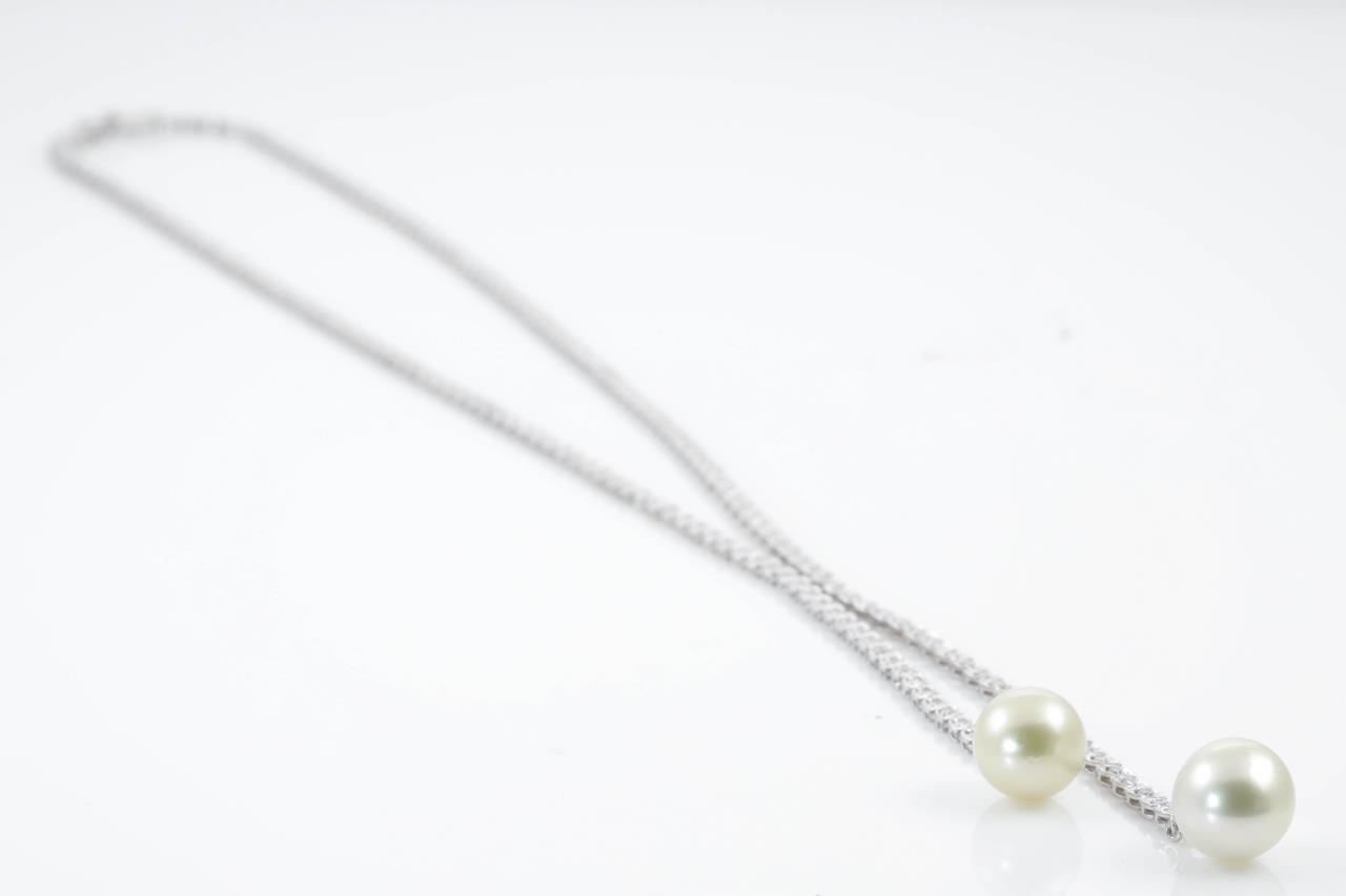 Pearl and Diamond necklace with 2 South Sea Pearls of 11.5mm - 12.0mm and round Diamonds totalling 3.00cts (Estimated grading: GHI P1-2). 18ct white gold. Length: 47cm. Weight: 24.7g. (Pre-owned)
