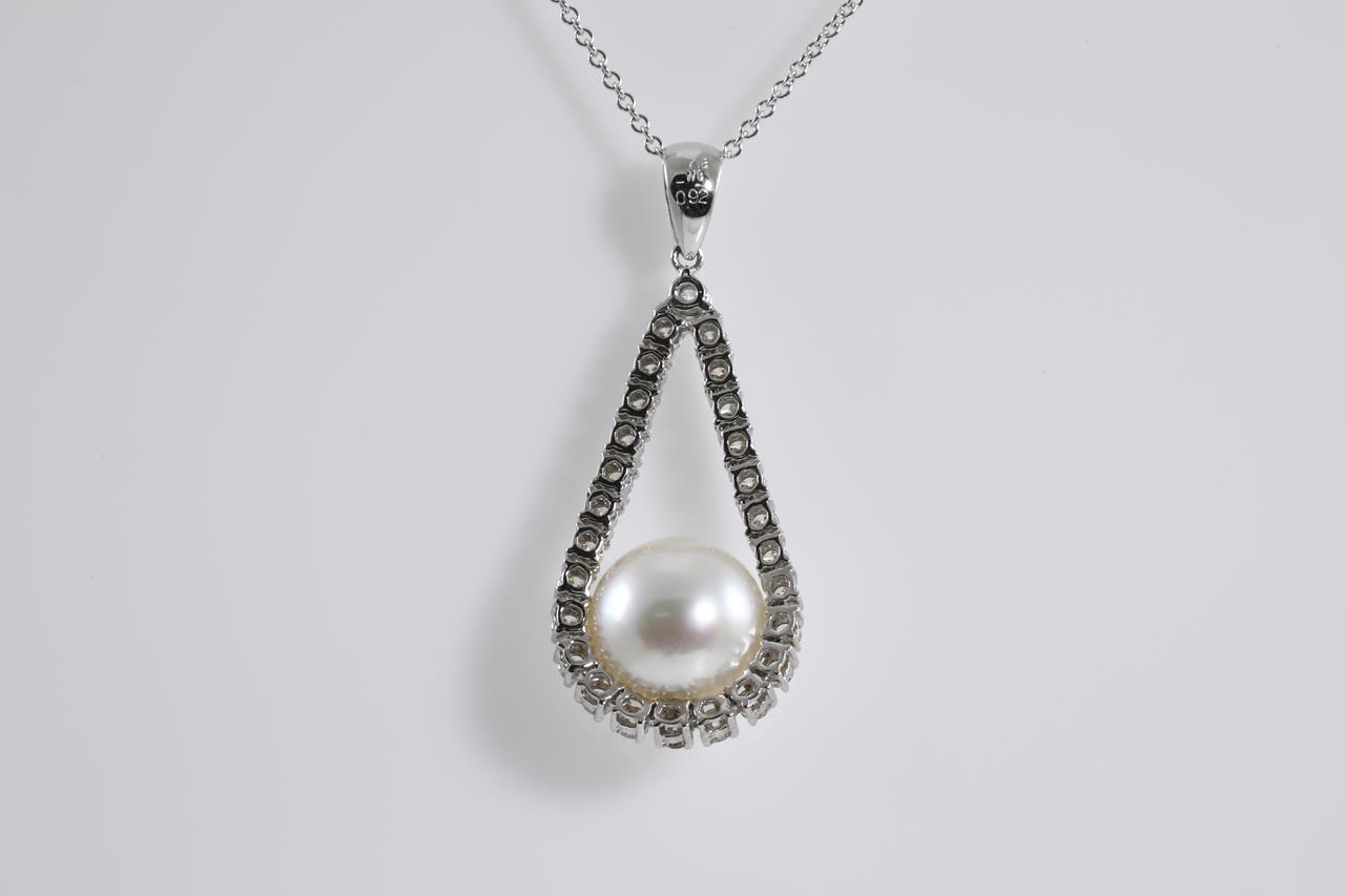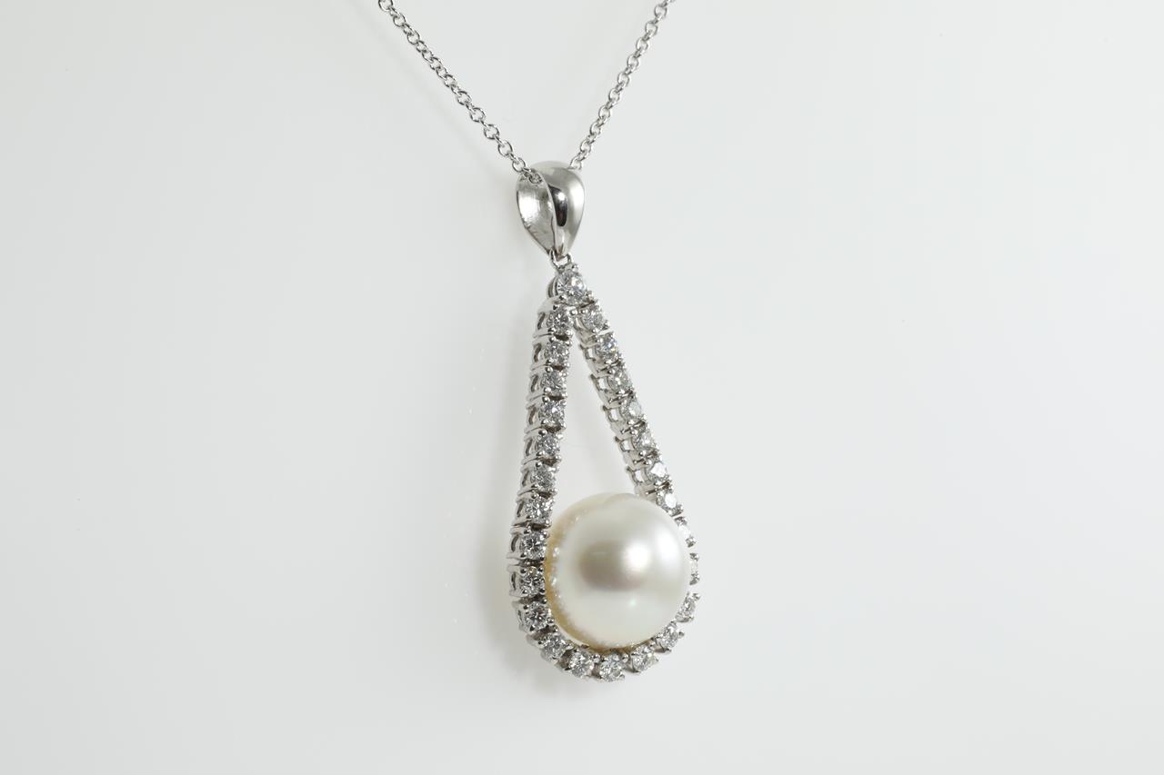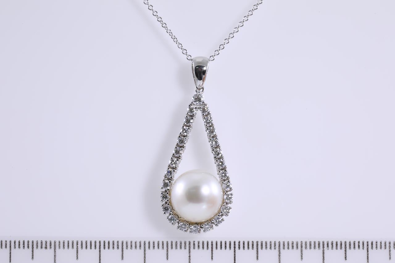 Pearl and Diamond pendant with South Sea Pearl of 11.8mm and Diamonds totalling 0.92cts (Estimated grading: H VS-SI). 18ct white gold with 45cm 18ct white gold chain. Weight: 7.5g (Pre-owned)