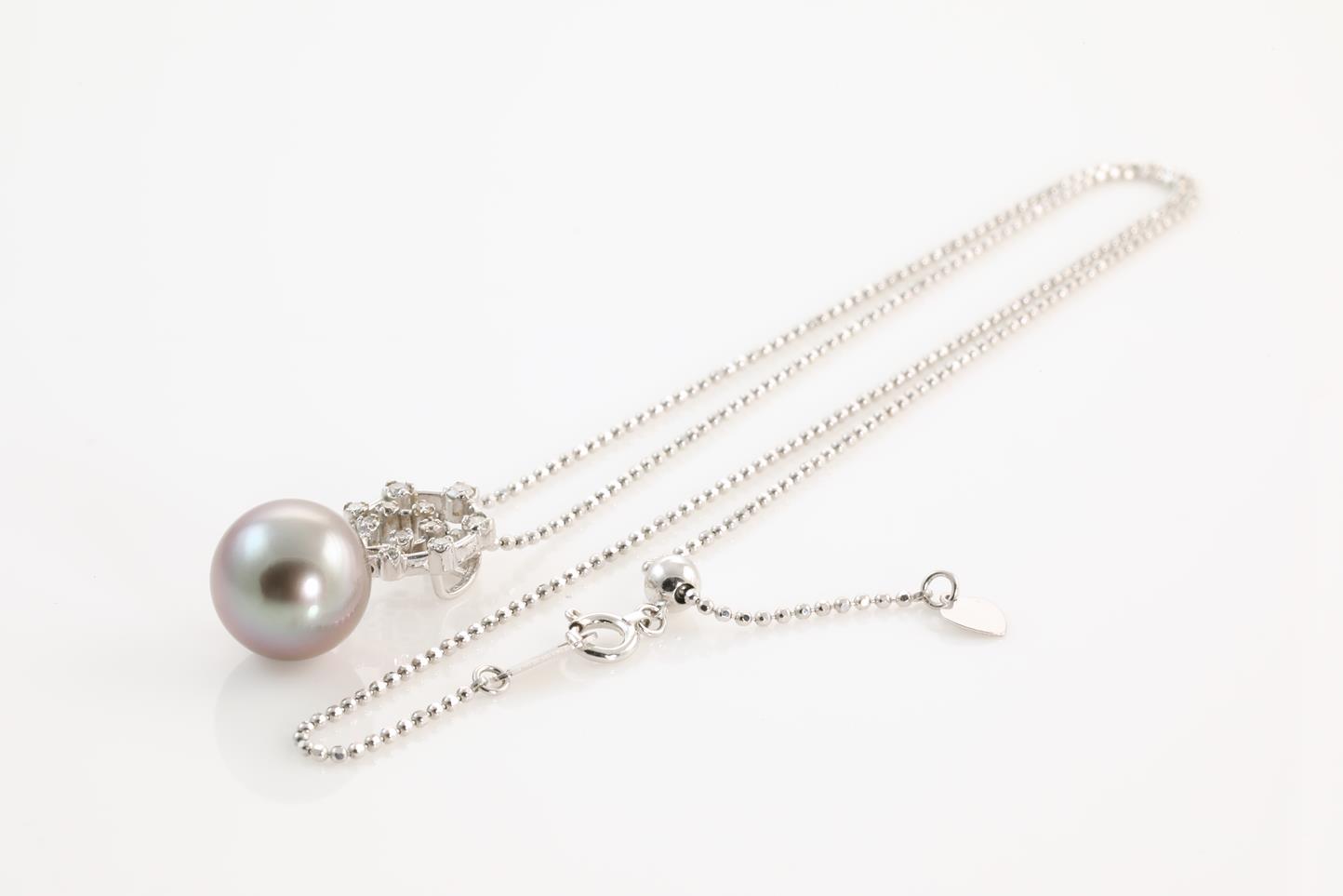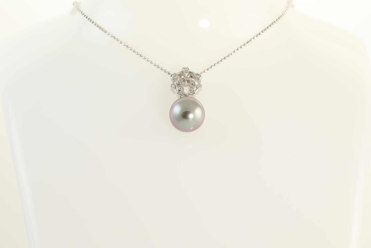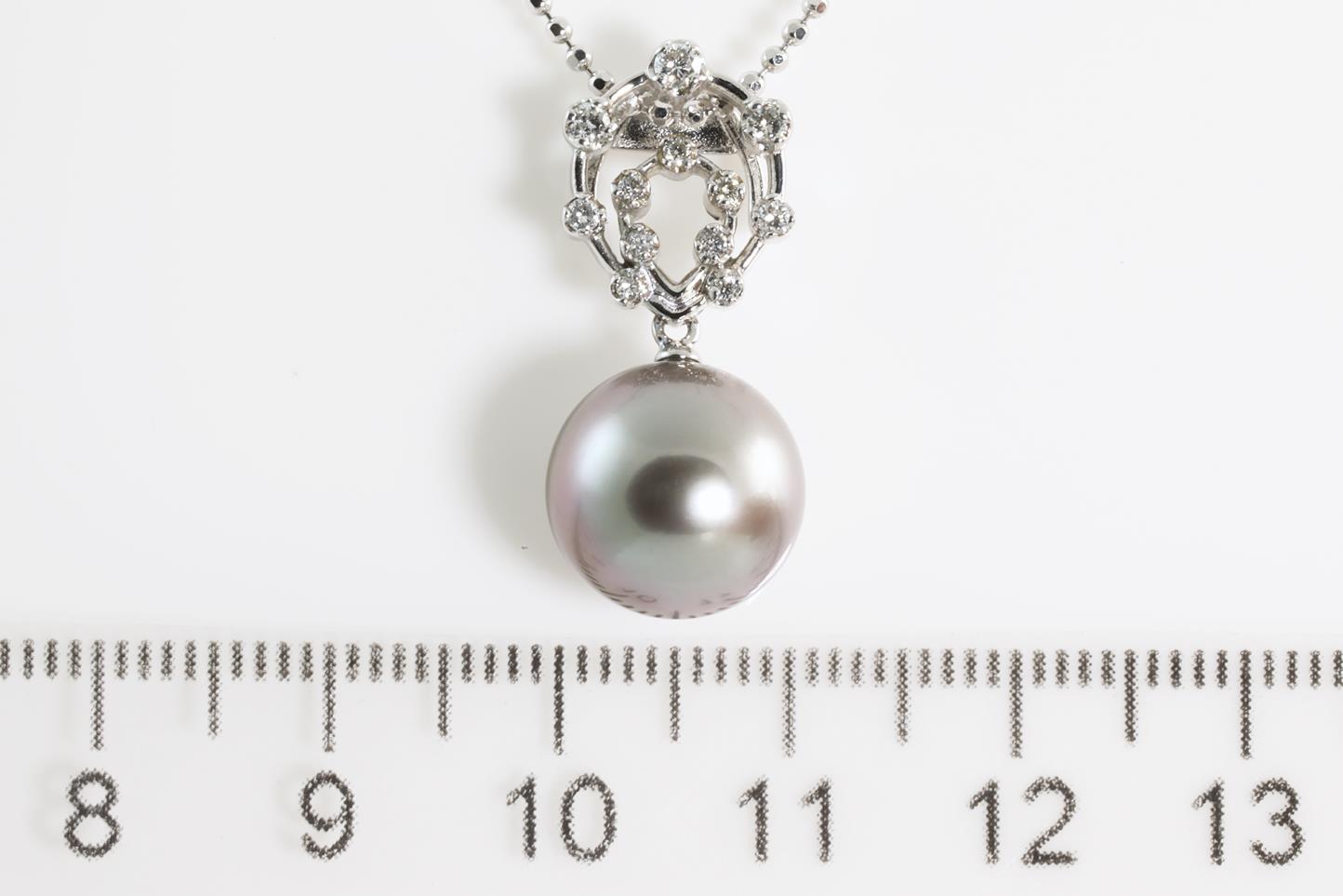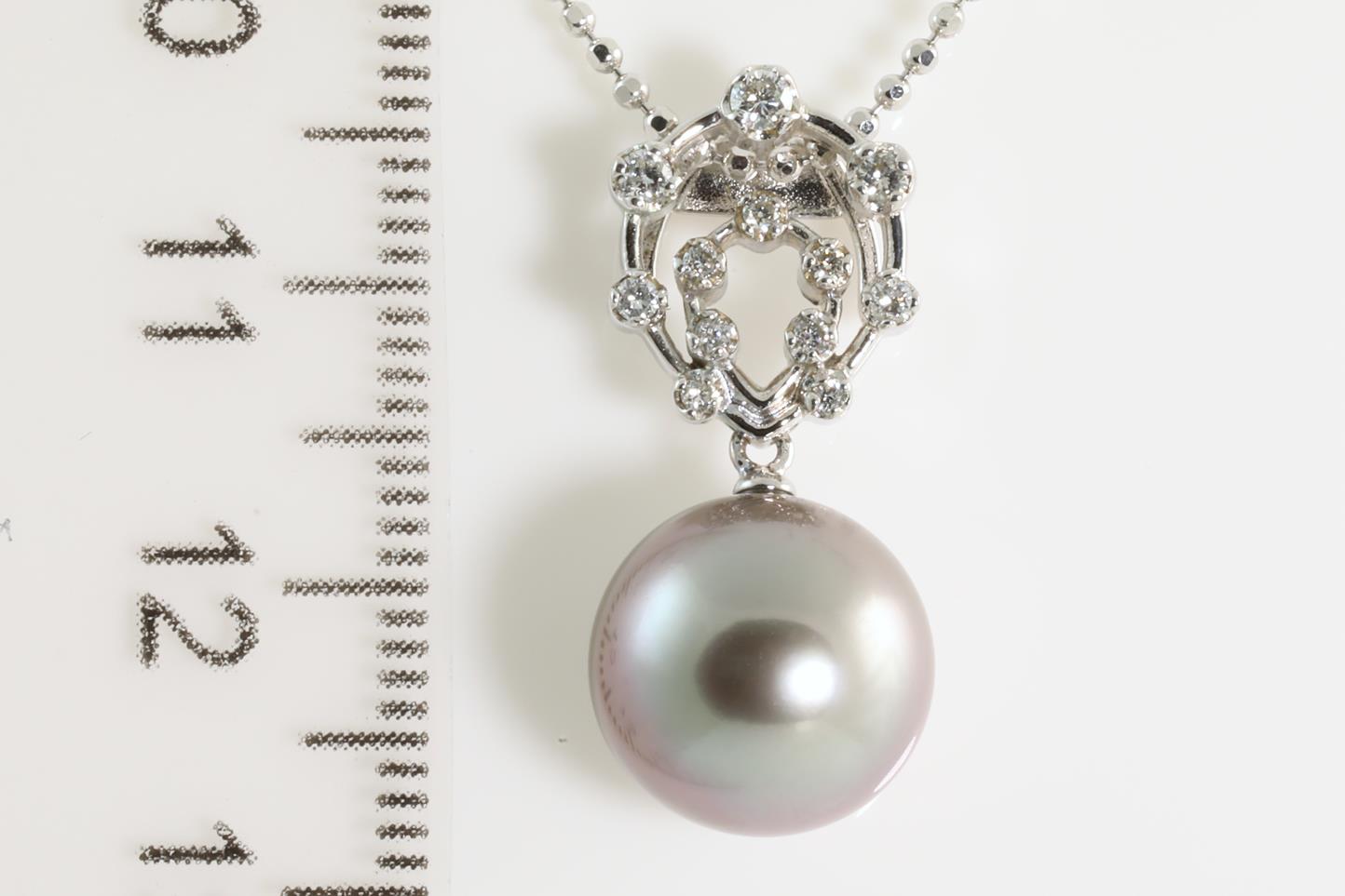 Pearl and Diamond pendant with Tahitian Pearl of 11.1mm and Diamonds totalling 0.10cts. 18ct white gold with 18ct white gold 45cm adjustable chain. Weight: 6.8g (Pre-owned)