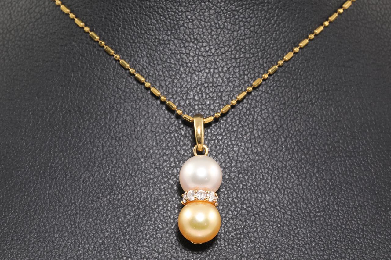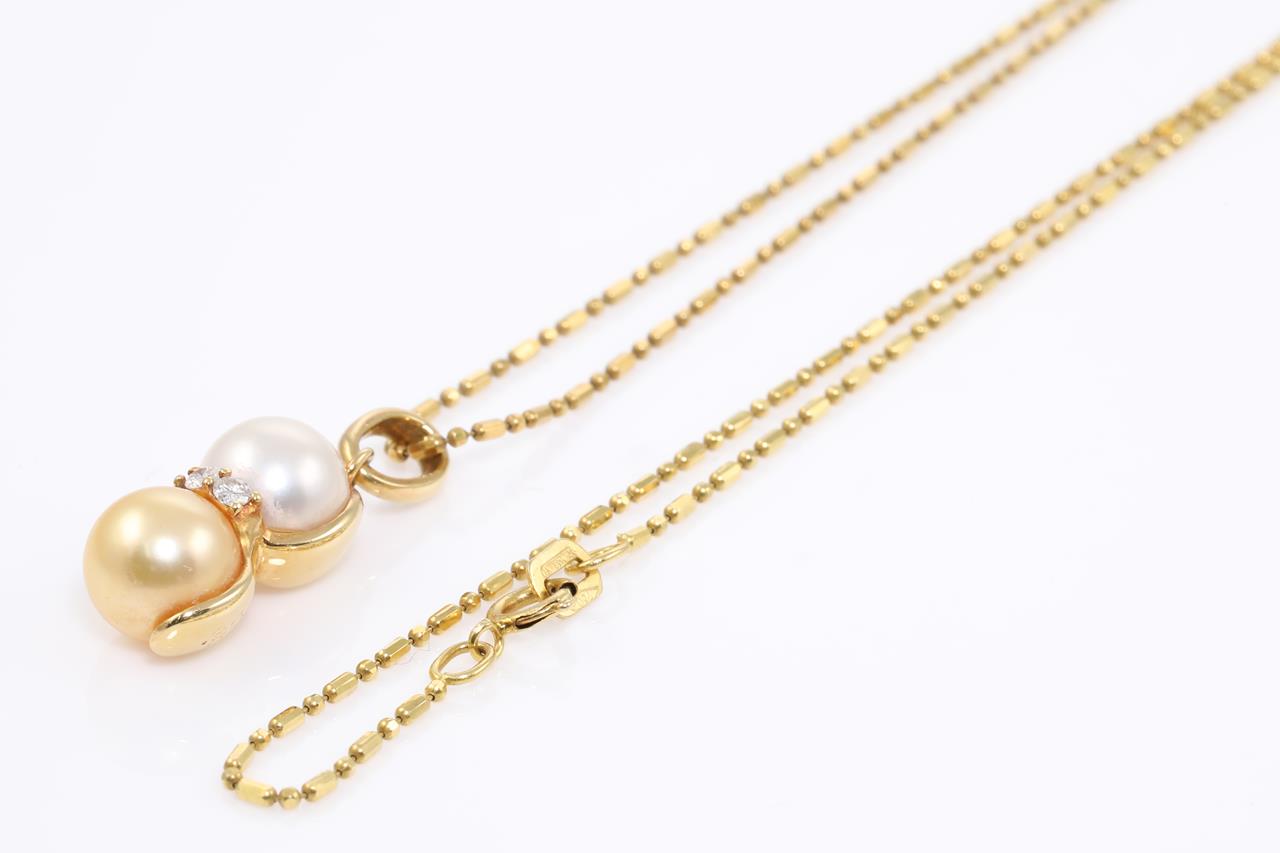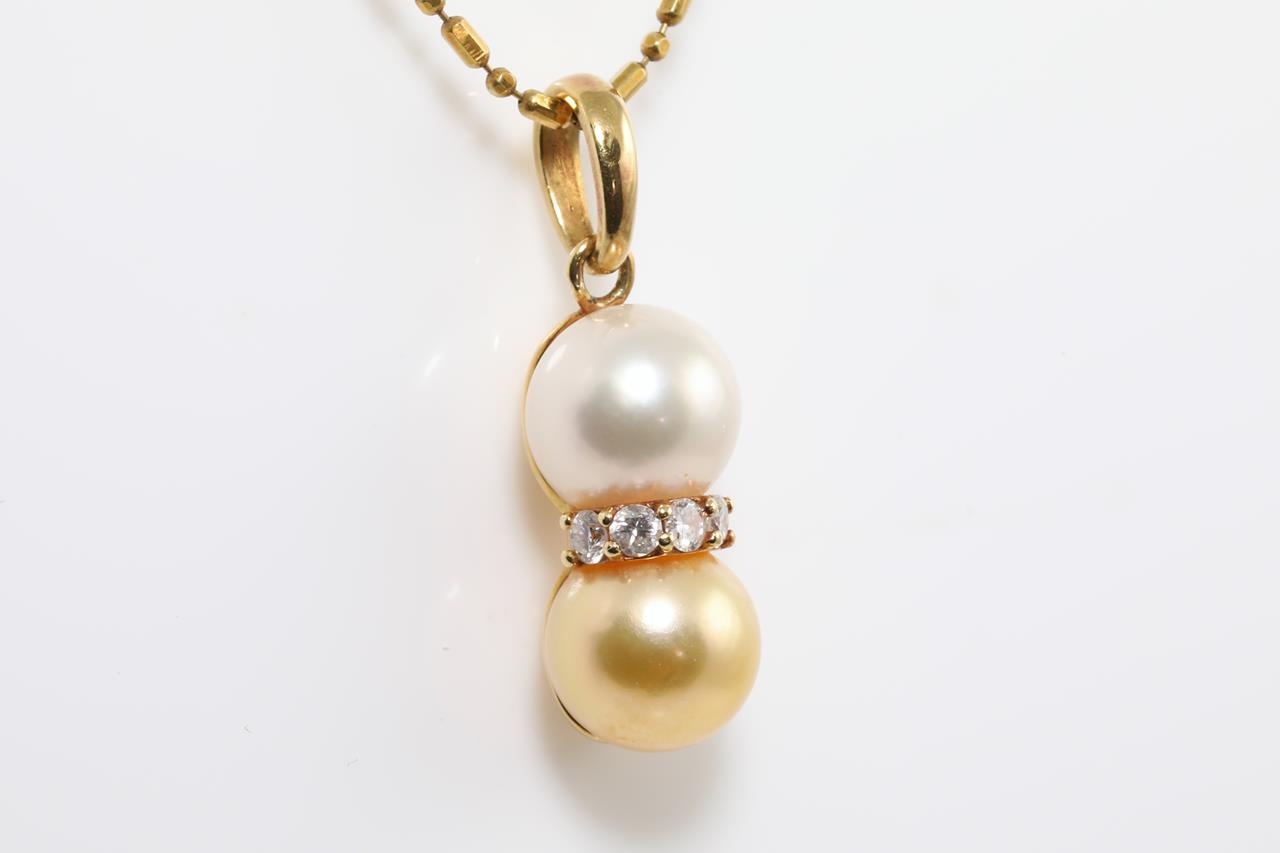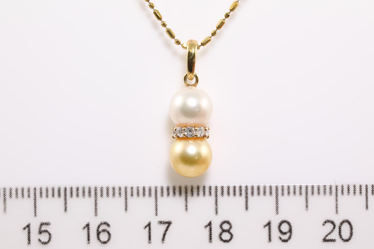 Pearl and Diamond pendant with Golden & White Cultured Pearls of 7.0mm and Diamonds totalling 0.13cts. 18ct yellow gold with 40cm chain. Weight: 3.8g (Pre-owned)