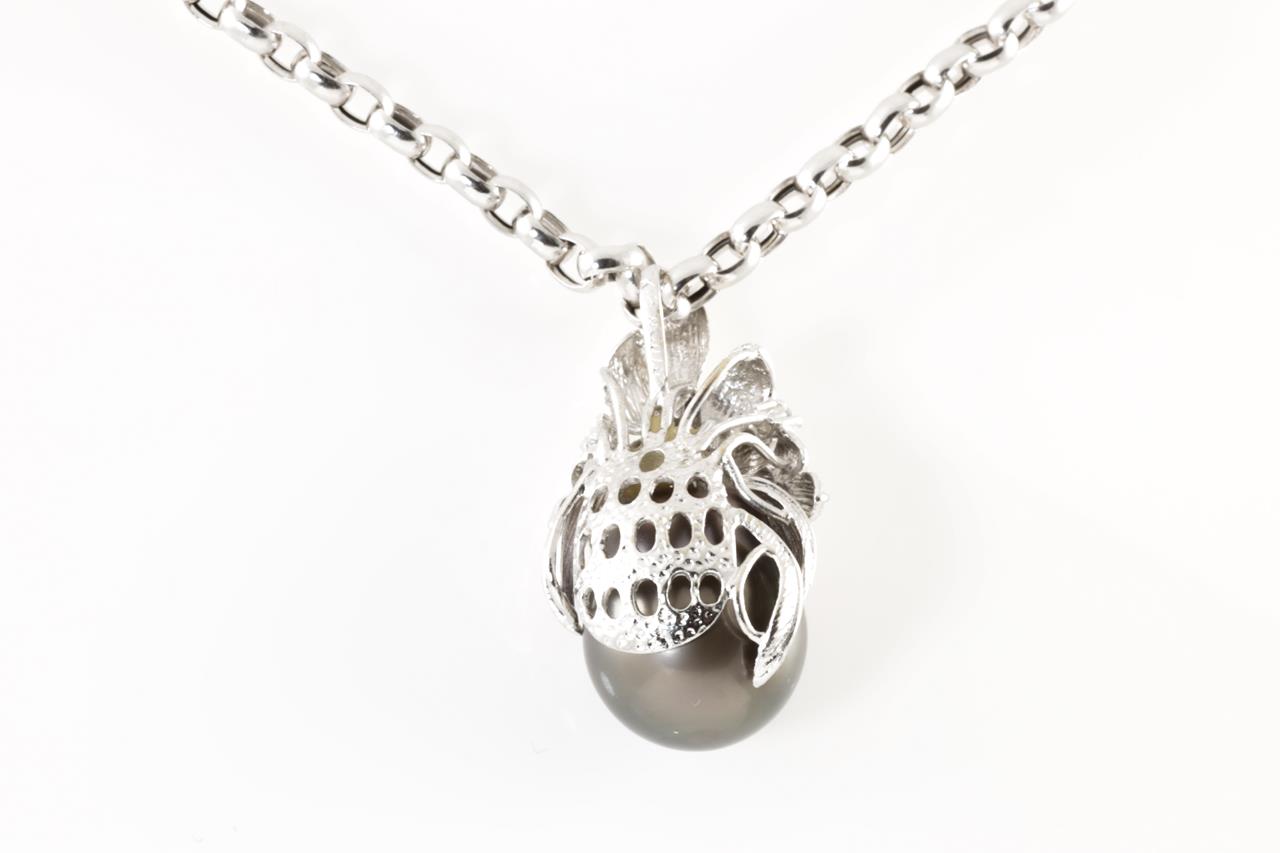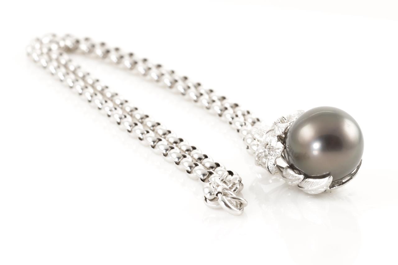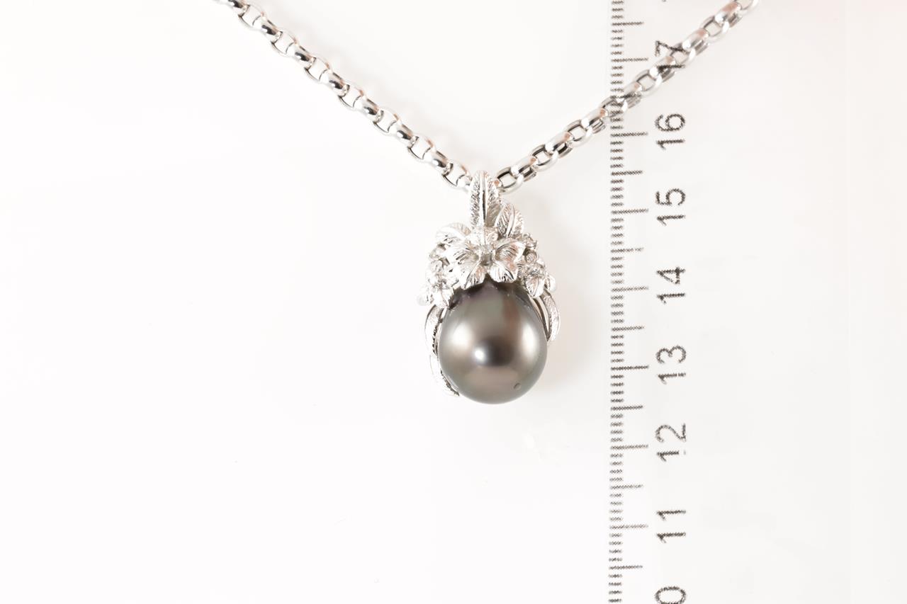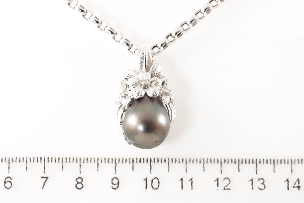 Pearl and Diamond pendant with Tahitian Pearl of 13.0mm and round Diamonds totalling 0.10cts. 18ct white gold with 18ct gold 44.5cm chain. Weight: 15.2g (Pre-owned)