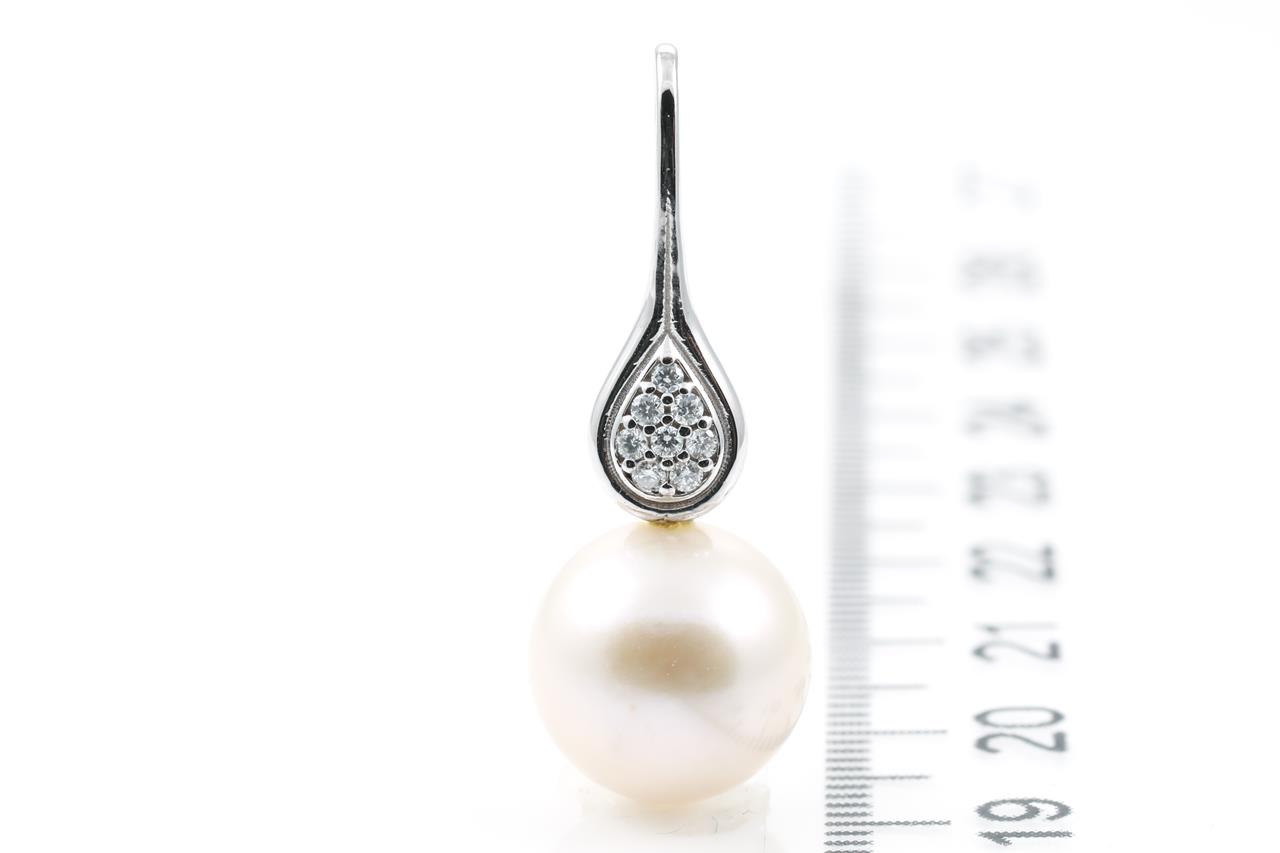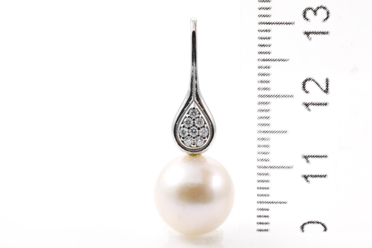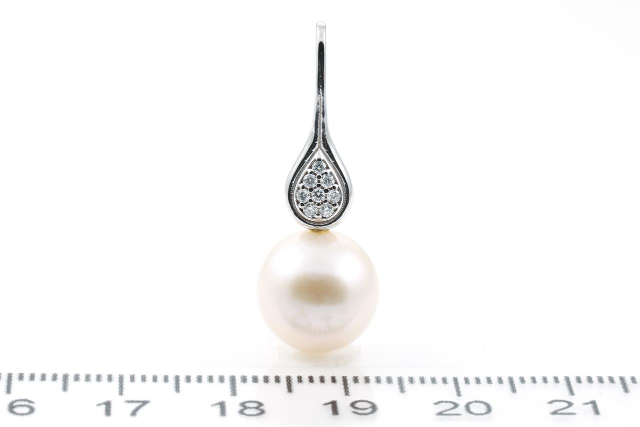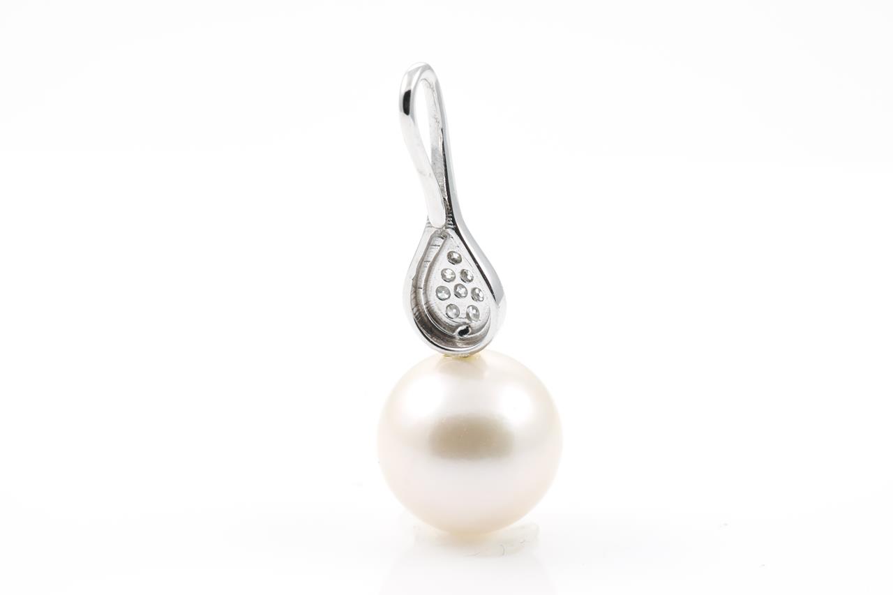 Pearl and Diamond Pendant with round cultured Pearl of 11.2mm and round Diamonds totalling approximately 0.10cts. 18ct white gold. Weight 2.9g. (Pre-owned)