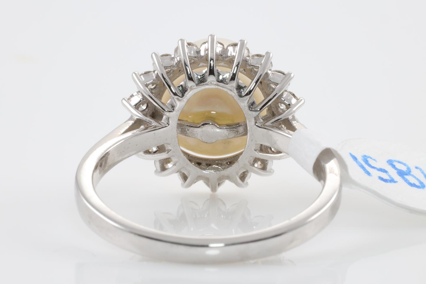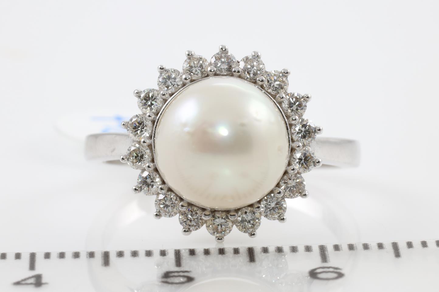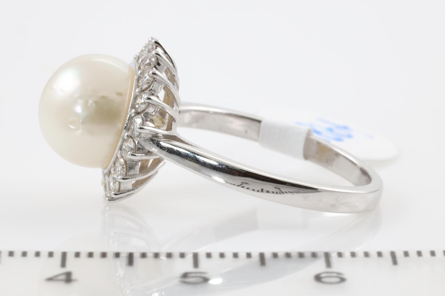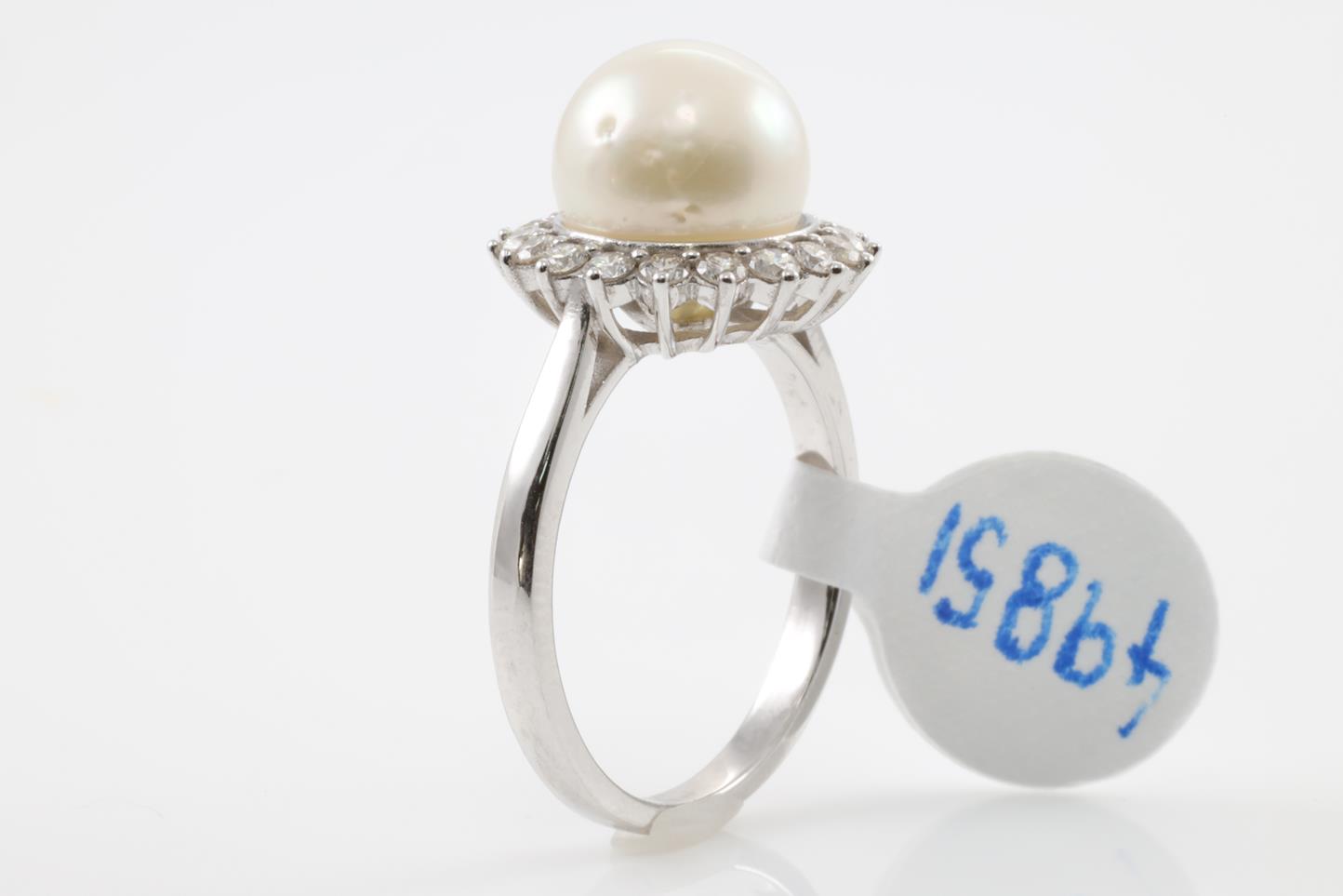 Pearl and Diamond ring with South Sea Pearl of 9.2mm and Diamonds totalling 0.45cts (Estimated grading: H SI). 18ct white gold. Ring size N. Weight: 4.6g (Pre-owned)