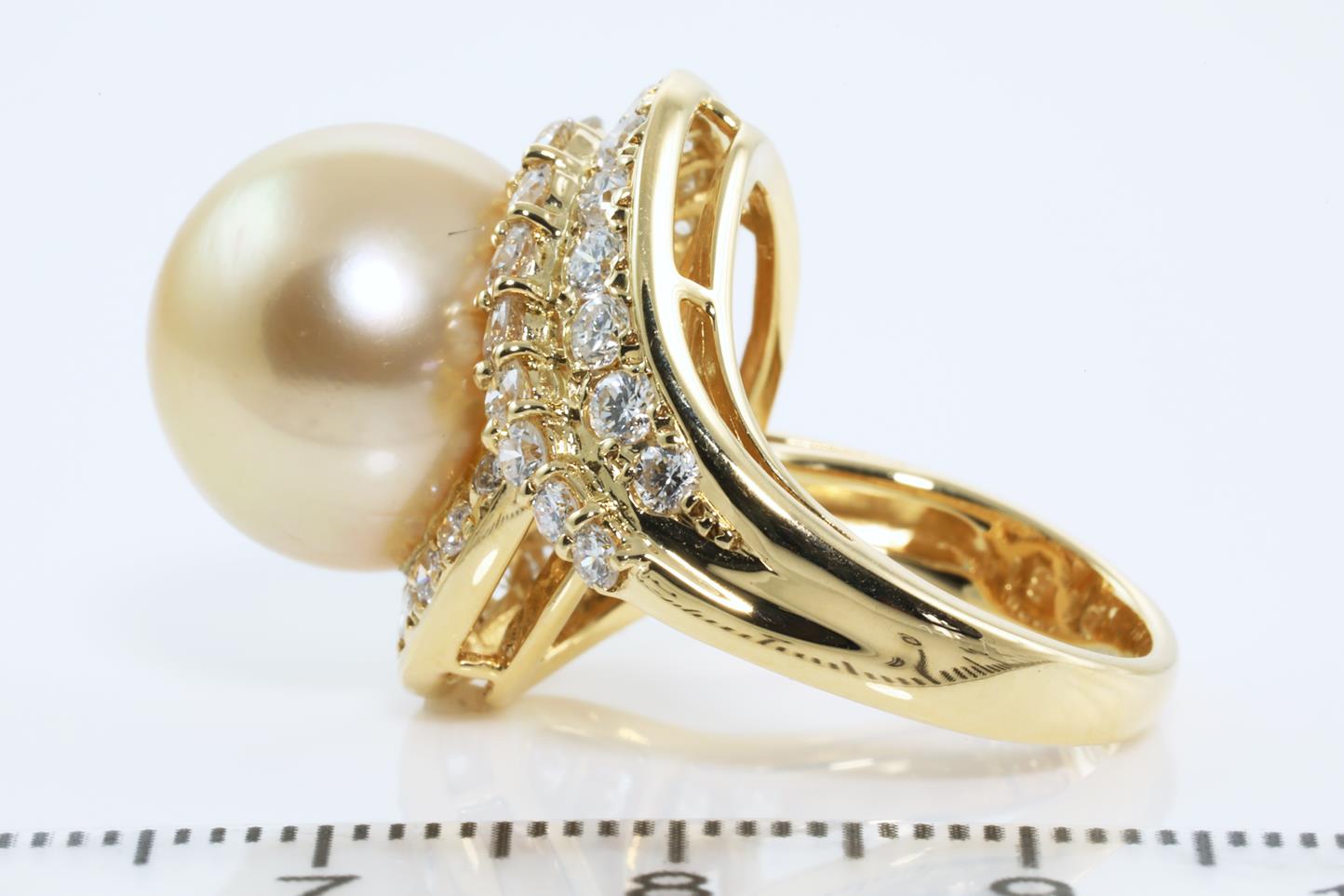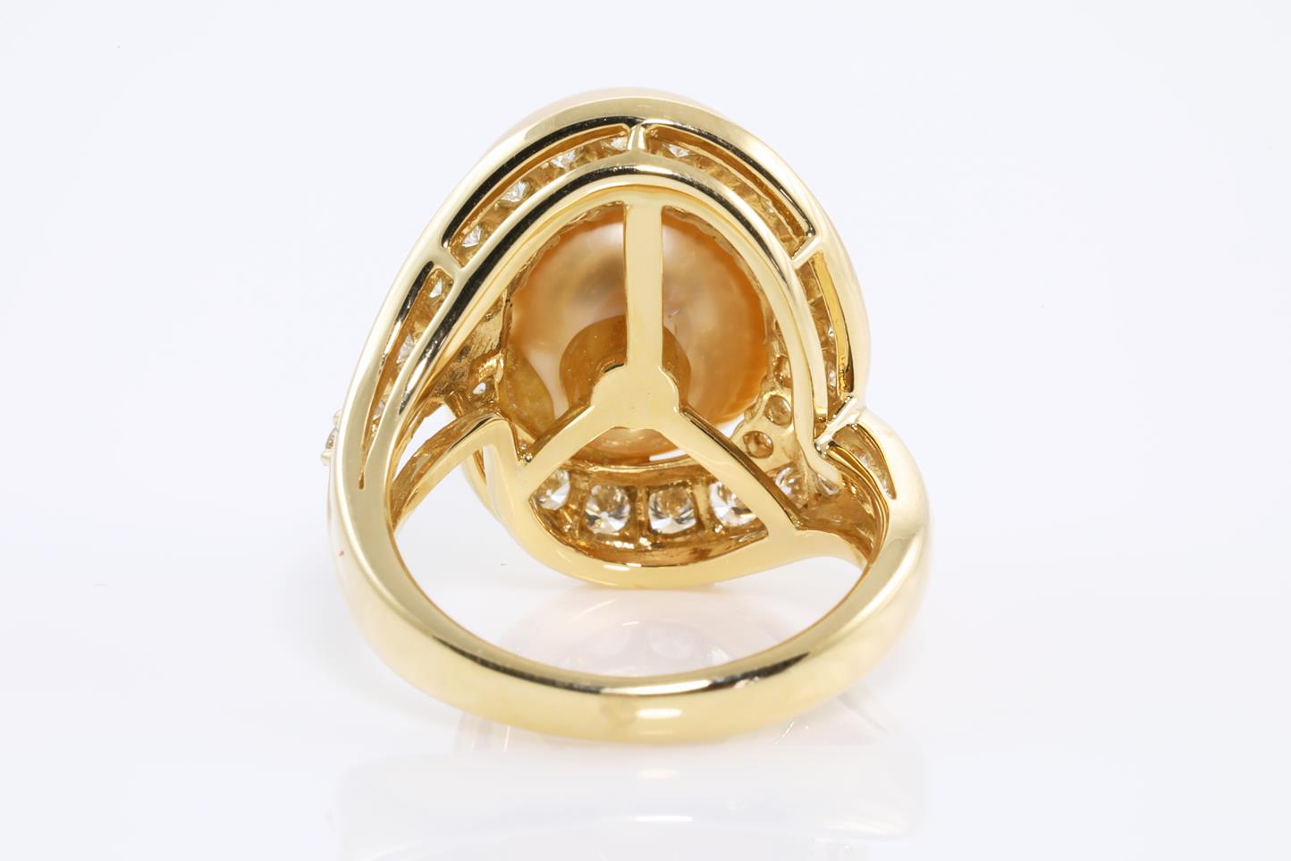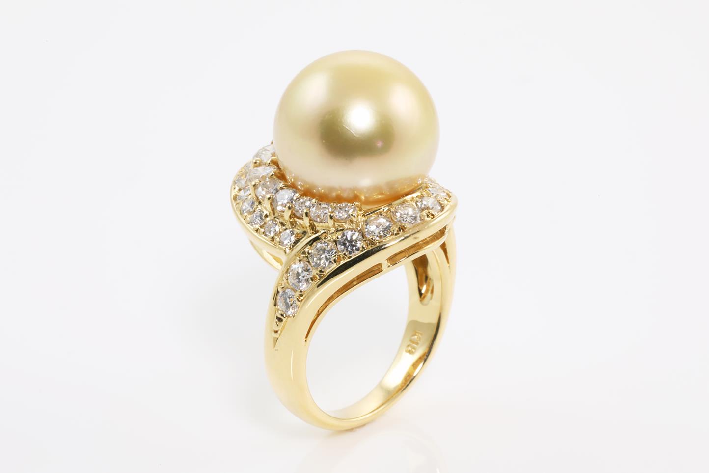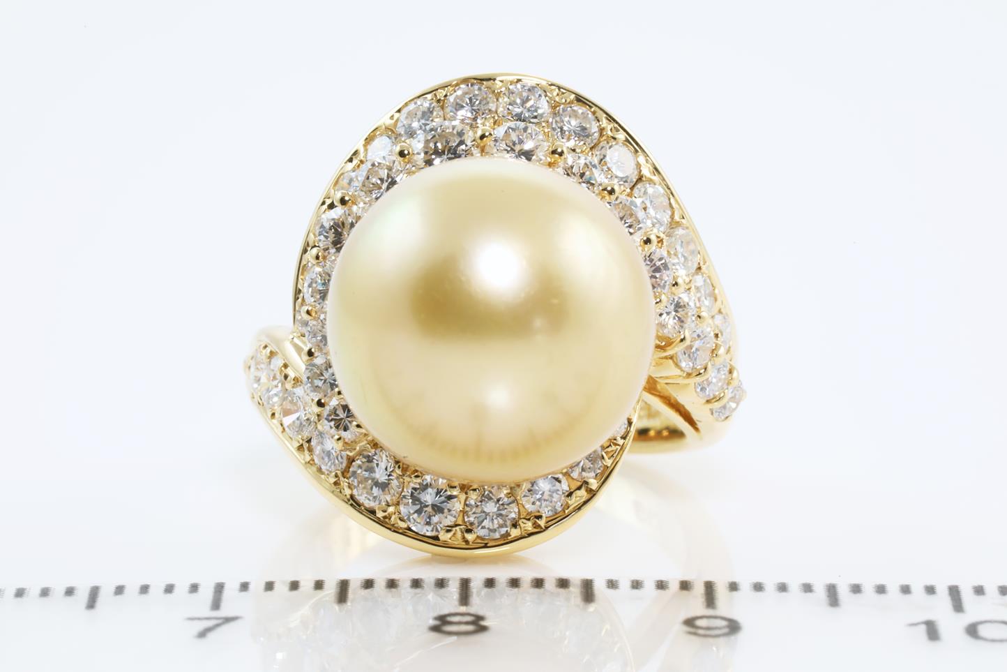 Pearl and Diamond with Golden South Sea Pearl of 13.5mm and Diamonds totalling 1.81cts (Estimated grading: I SI). 18ct yellow gold. Ring size: L. Weight: 12.2g (Pre-owned)