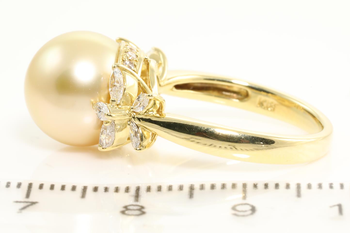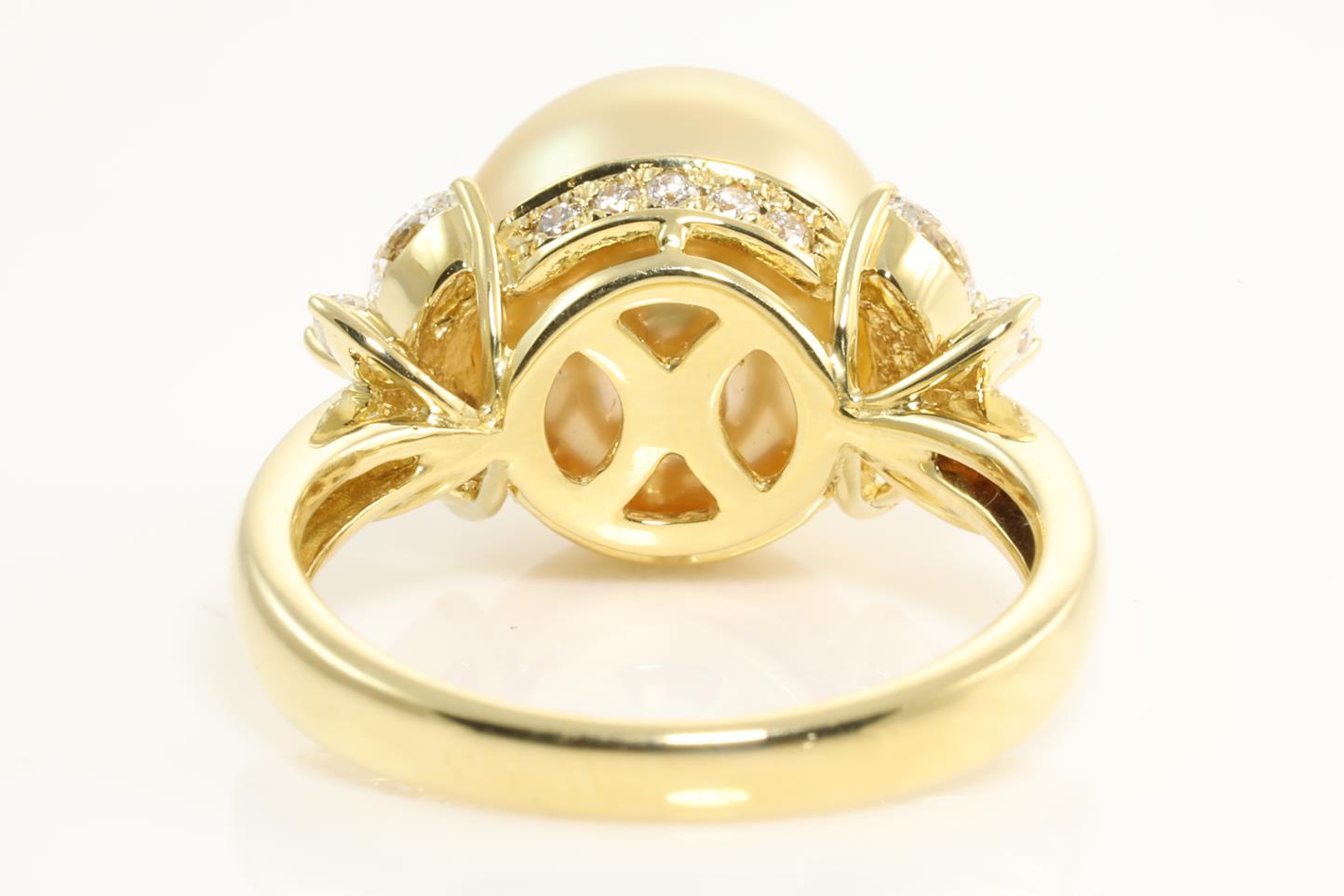 South Sea Pearl and Diamond ring with Golden South Sea Pearl of 11.2mm and Diamonds totalling 0.56cts (Estimated grading: H VS-SI). 18ct yellow gold. Ring size: M. Weight: 6.5g (Pre-owned)
