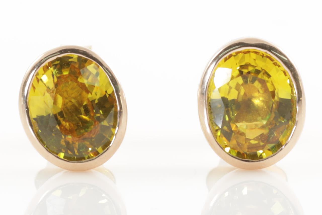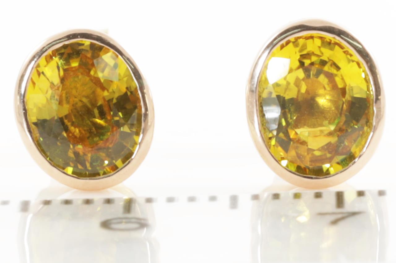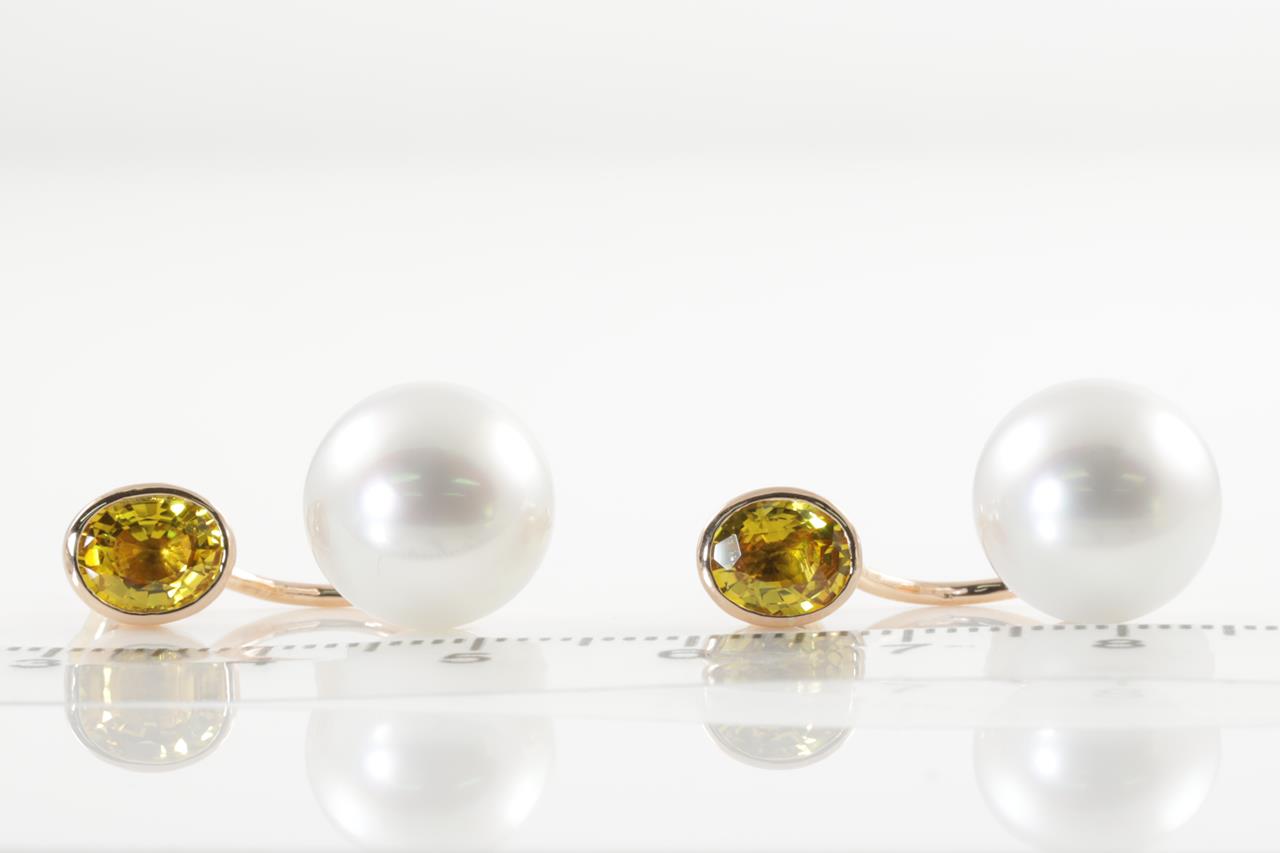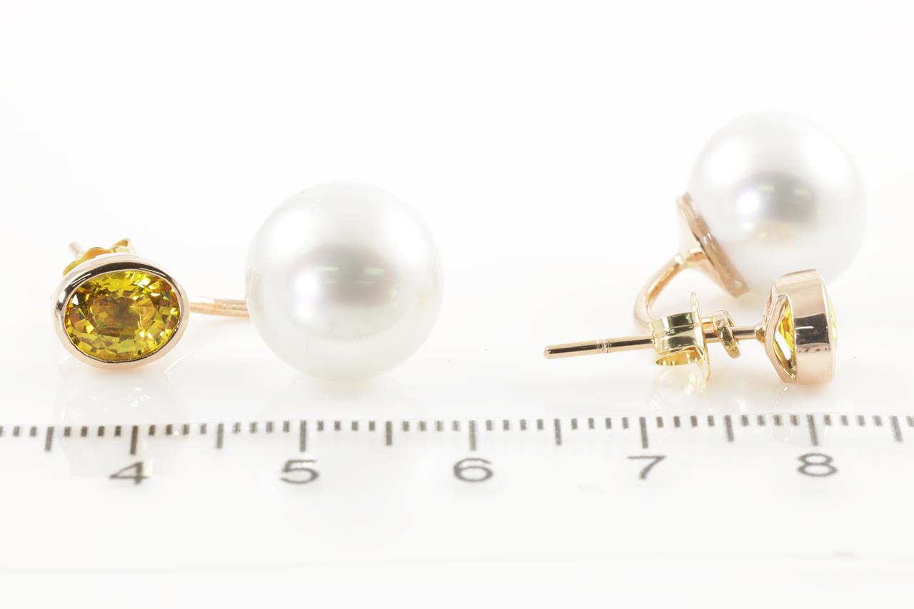 Pearl and Sapphire Earrings with button 12mm South sea white Pearls and oval yellow sapphires totalling approximately 2.10cts. Detachable. 18ct rose gold. Weight 8.2g. (Pre-owned)