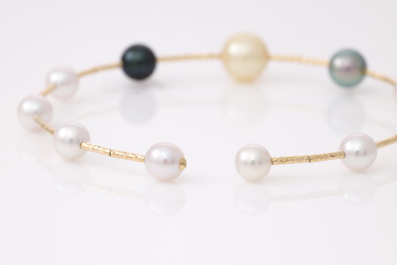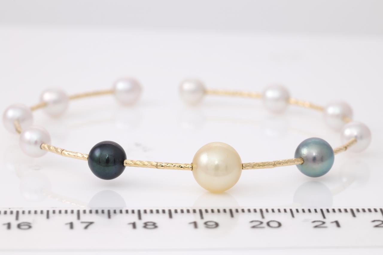 Pearl Bangle with cultured Pearls of 5.6mm - 8.5mm. 18ct yellow gold. Circumference: 19cm Weight: 4.9g (Pre-owned)