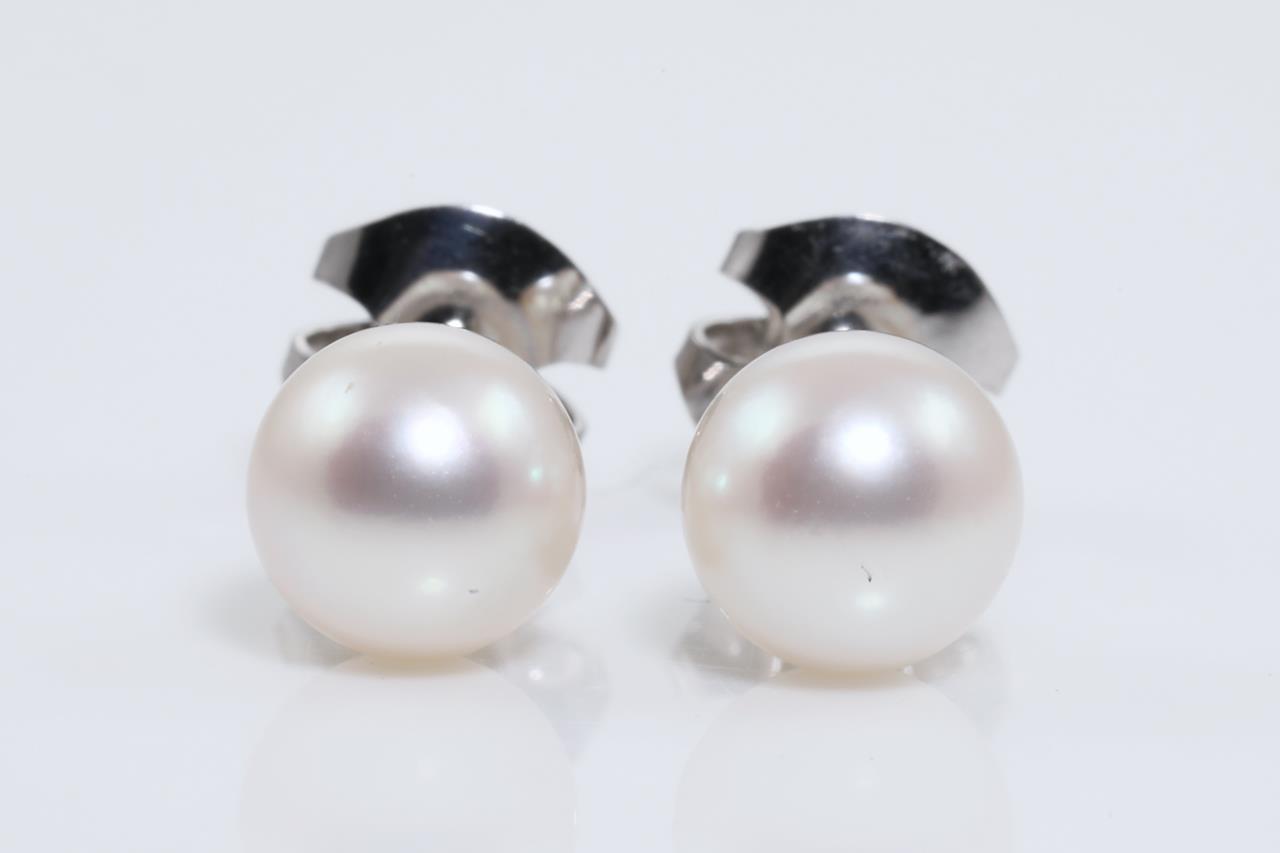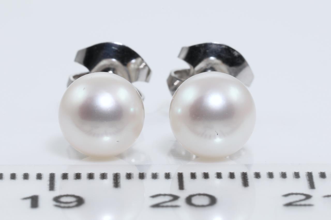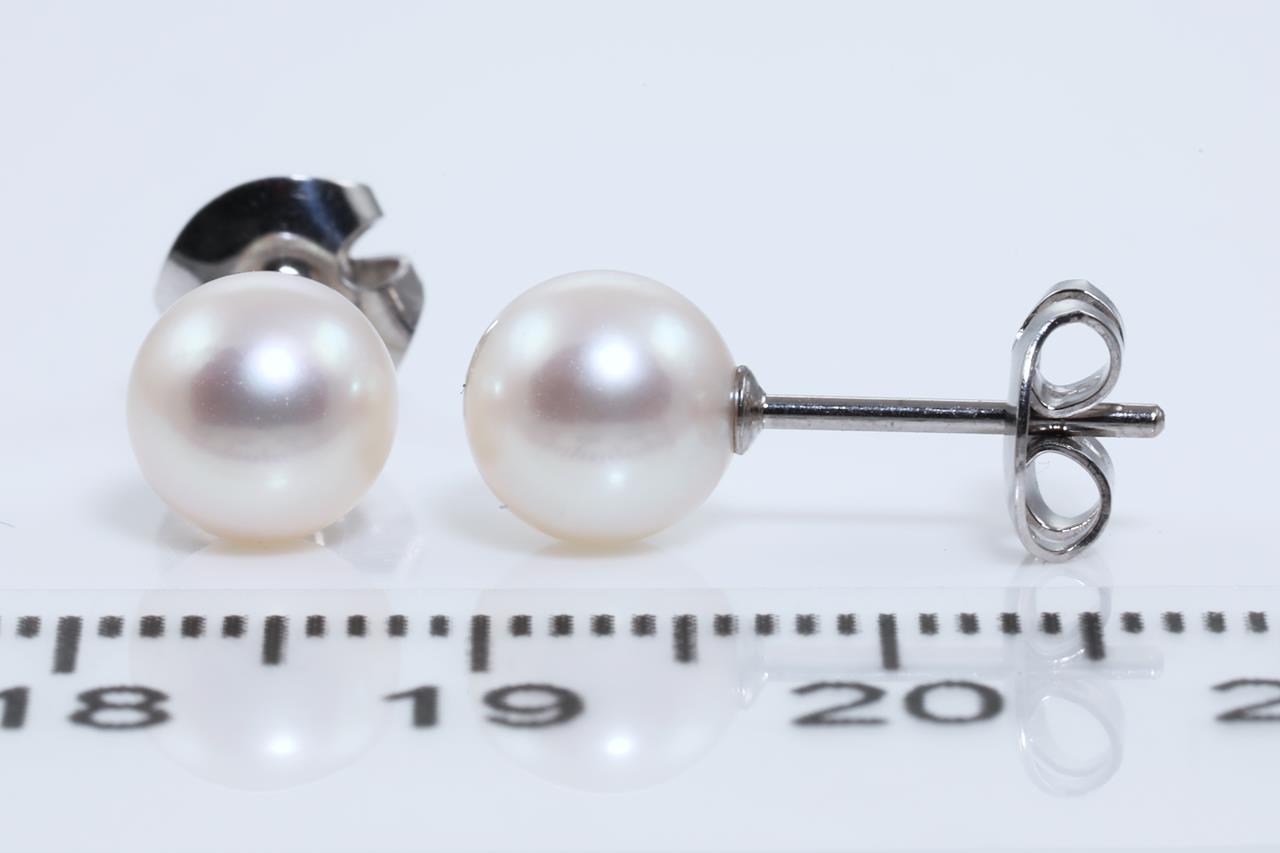 Pearl detachable drop earrings with cultured Pearls of 6.3mm - 6.8mm and transparent beads. Length: 4.5cm. 18ct white gold. Weight: 4.6g (Pre-owned)