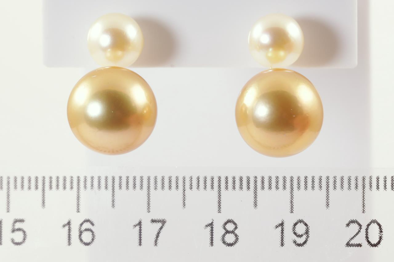 Pearl detachable earings with Golden South Sea Pearls of 13mm-12mm and Cultured Pearls of 8.0mm-7.5mm. 18ct yellow gold with silicon backs. Weight: 7.1g. (Pre-owned)