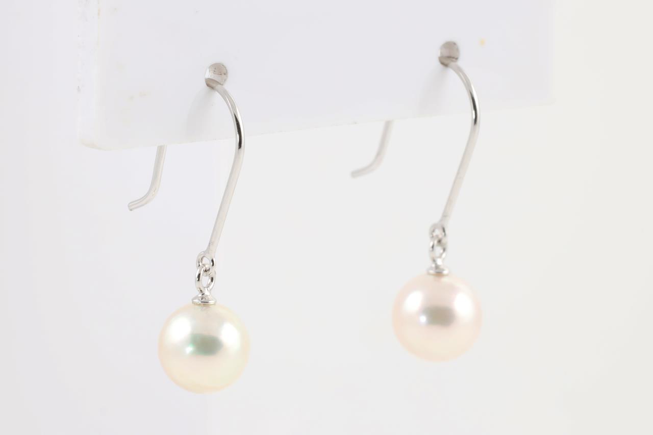Pearl earrings with Cultured Pearls of 7.0-6.9mm. 14ct white gold and silicon backs. Weight: 1.5g (Pre-owned)
