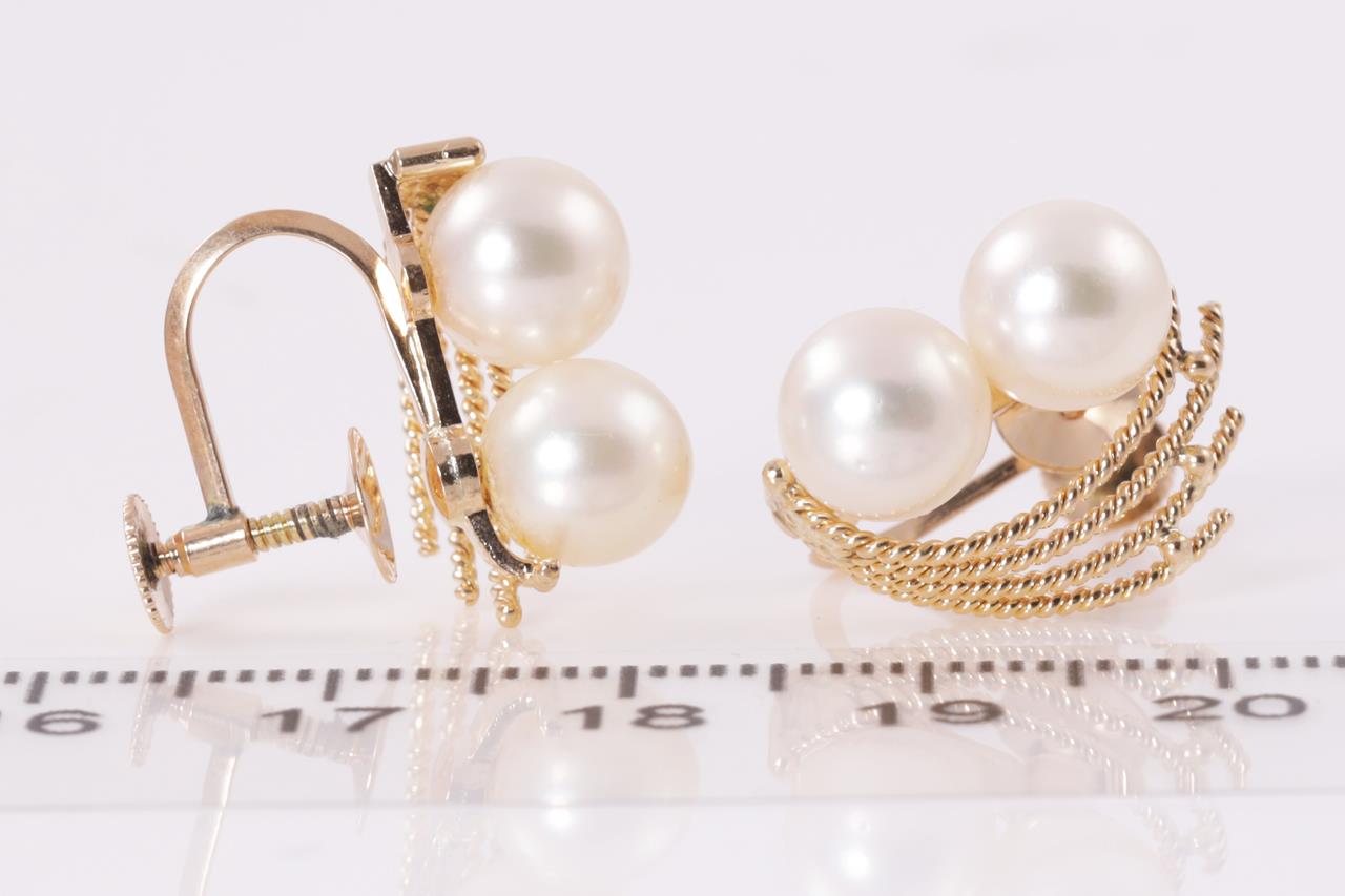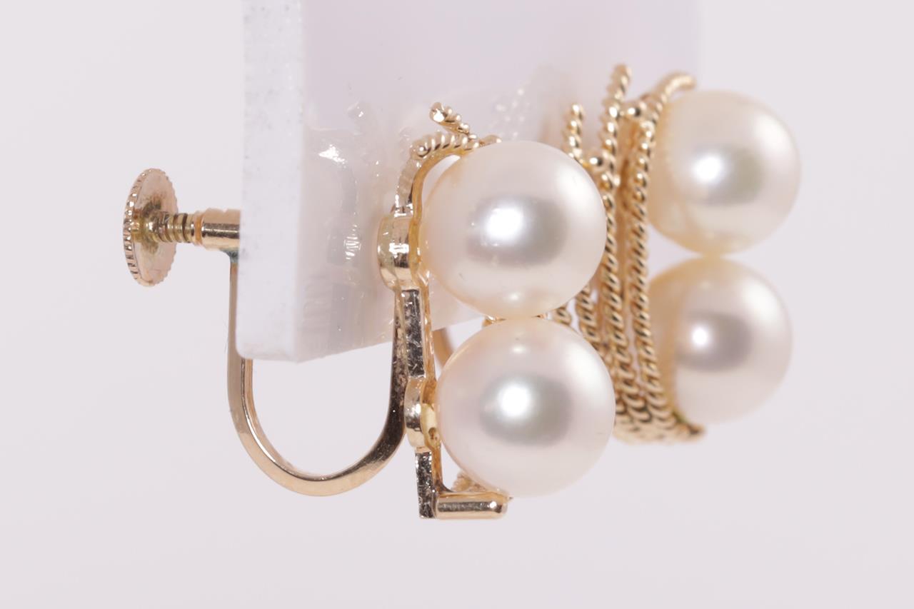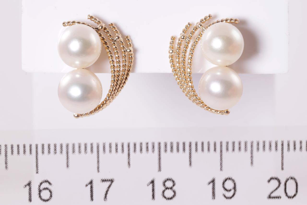 Pearl Earrings with Cultured Pearls of 7.3-7.5mm. 14ct yellow gold with Screwbacks. Weight 5.1g. (Pre-owned)