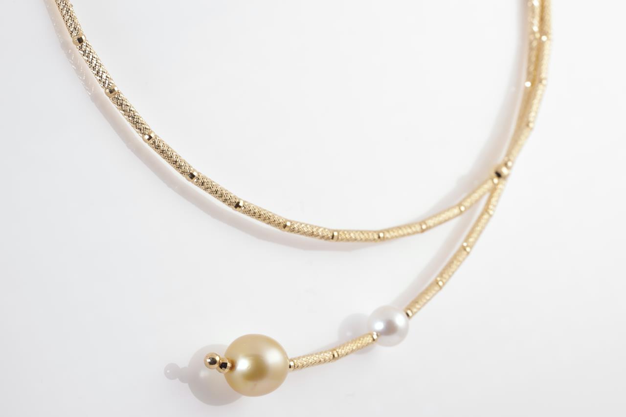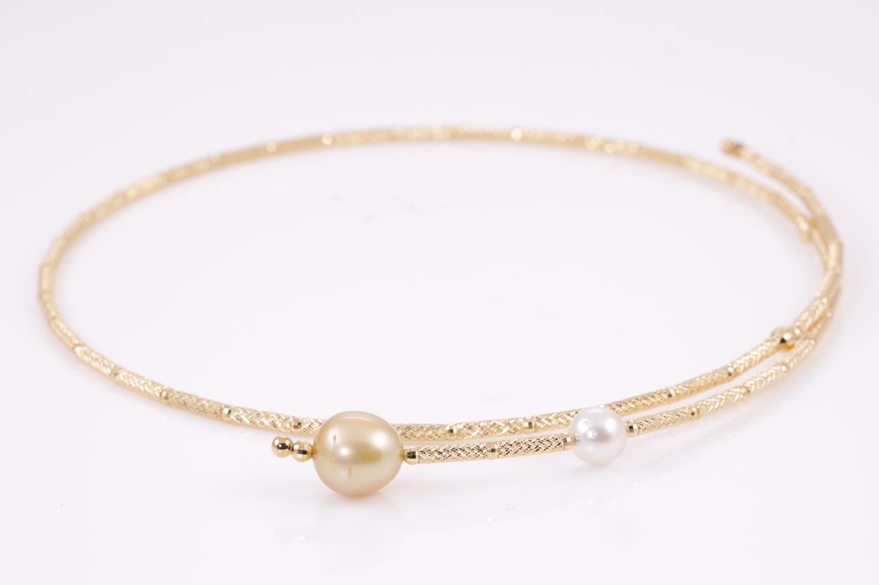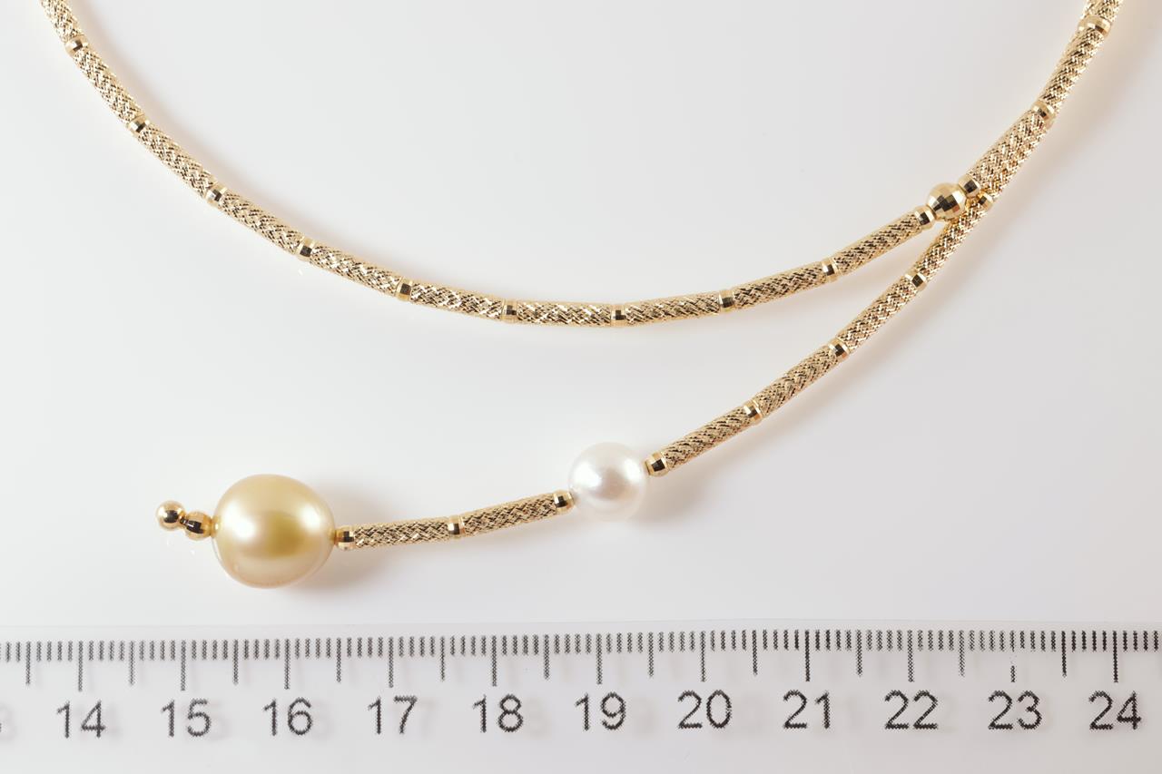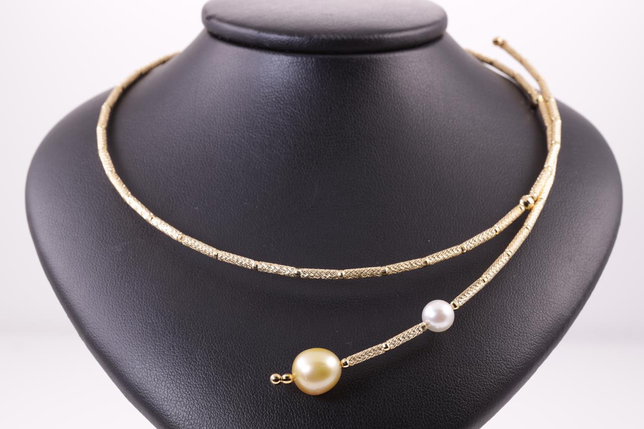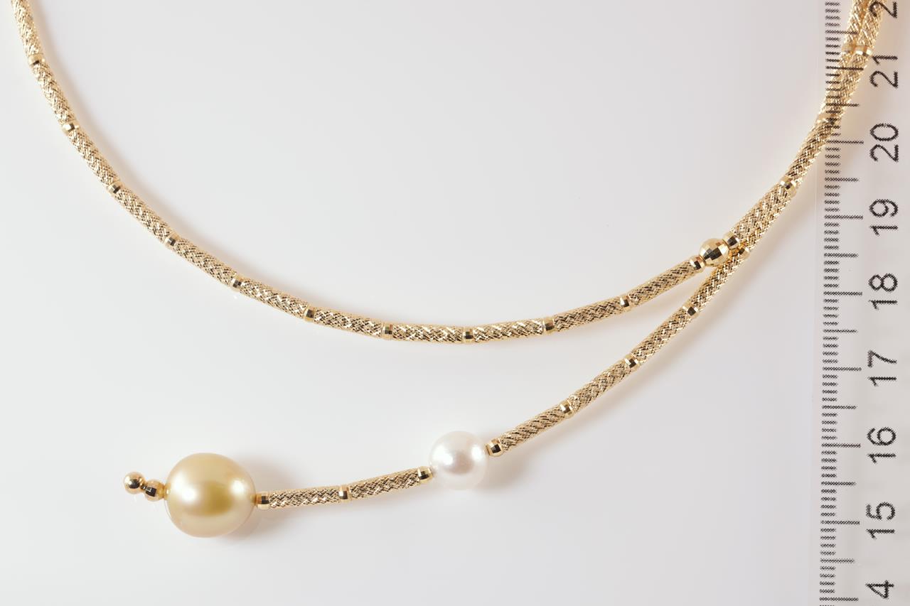 Pearl necklet with golden and white cultured pearls of 11.0mm-7.5mm. 18ct yellow gold with magnetic attachment. Length: 53cm. Weight: 11.4g. (Pre-owned)