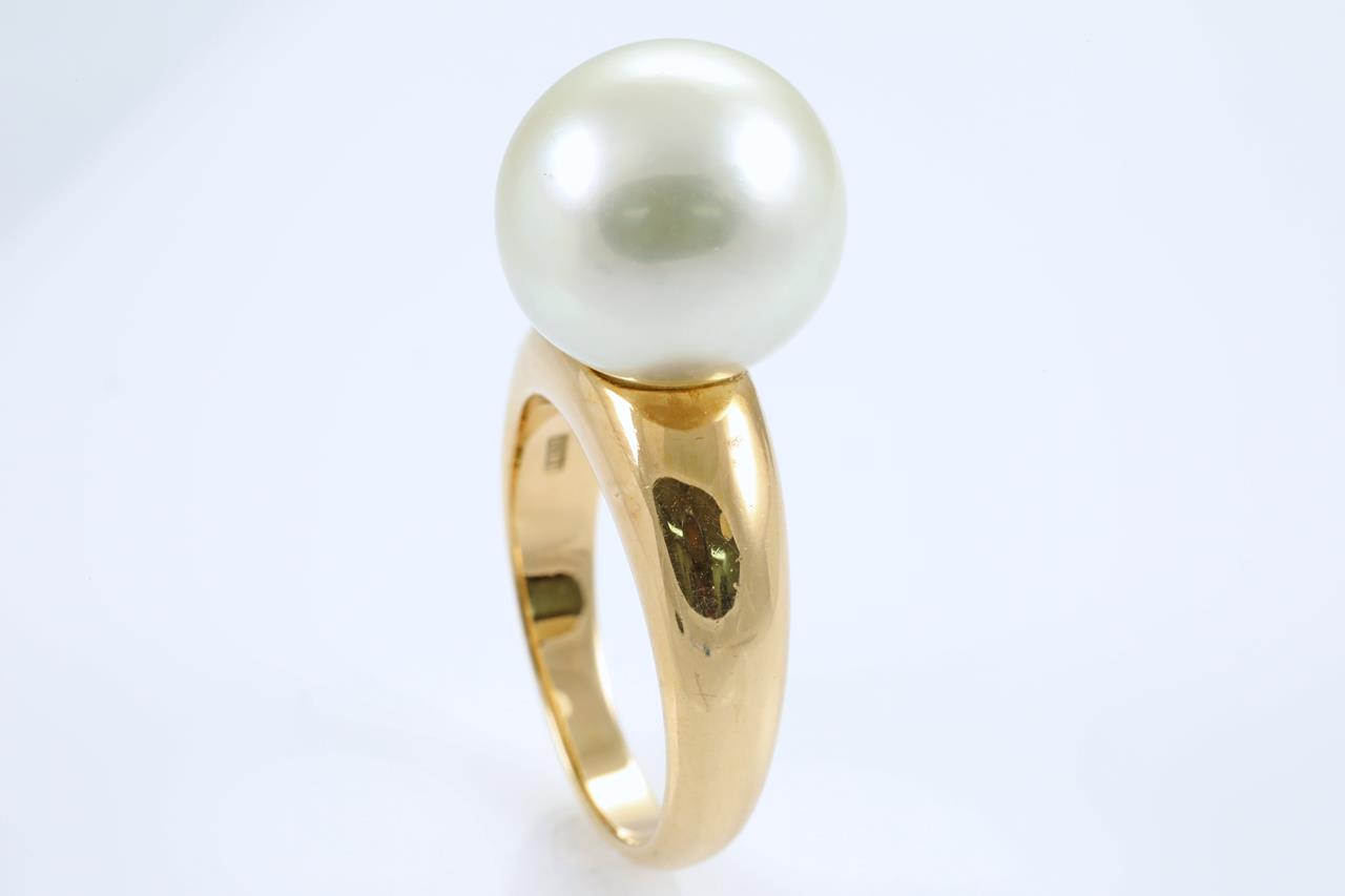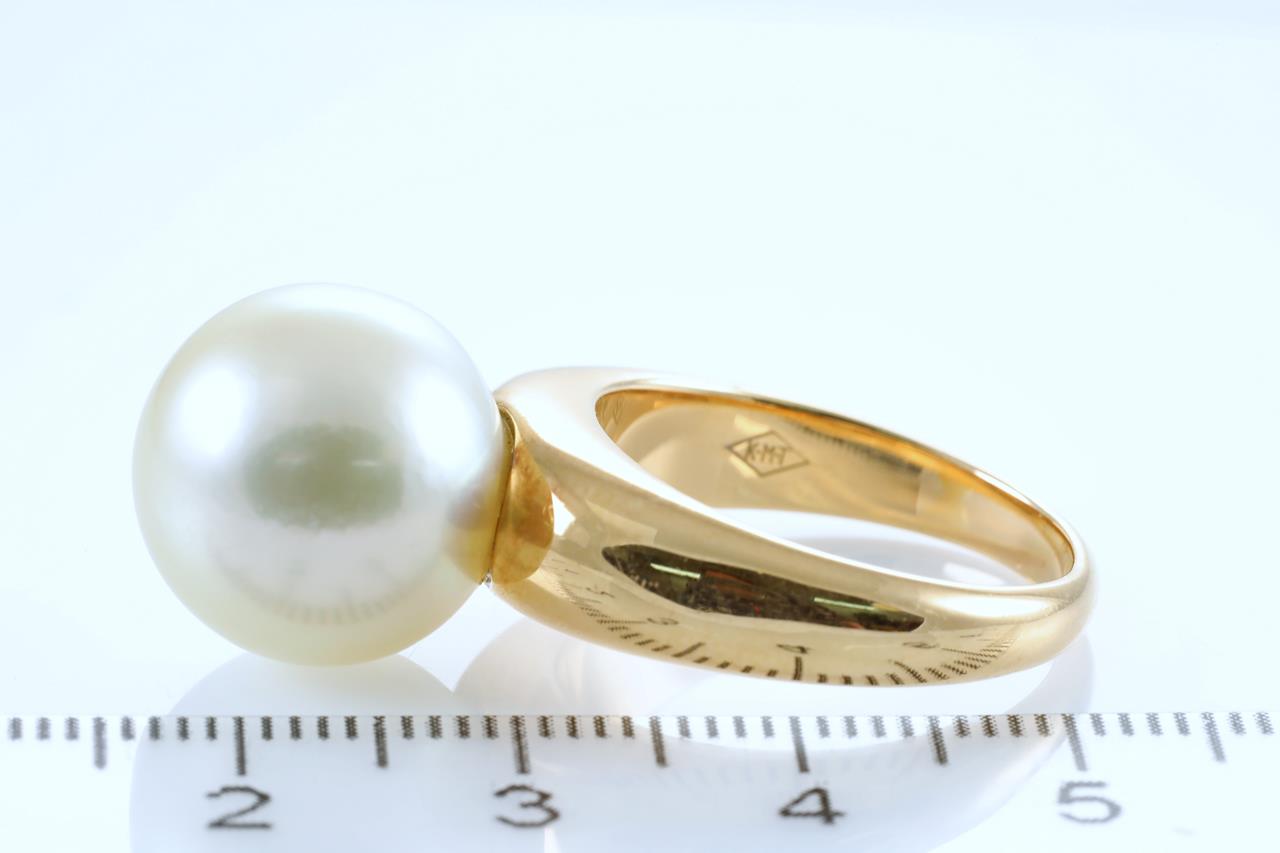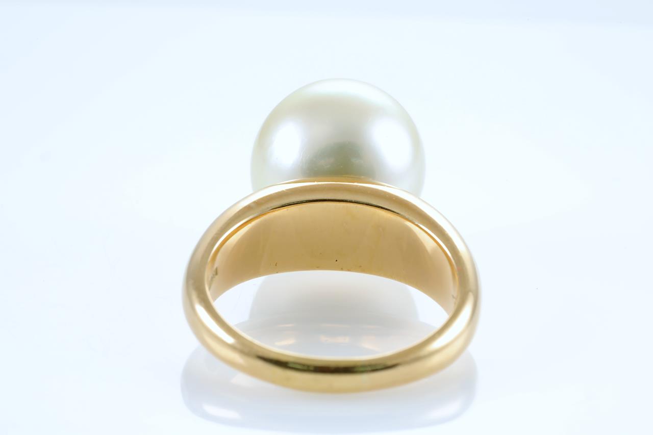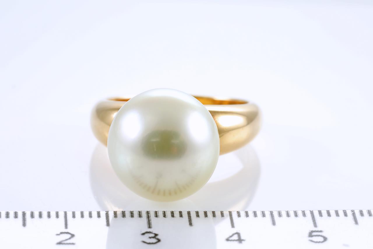 Pearl ring with Golden South Sea Pearl of 13.8mm. 18ct yellow gold. Rings size P1/2. Weight: 15.5g (Pre-owned)