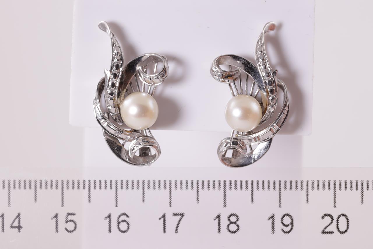 Pearl screw back earrings with Akoya Pearls of 6.8mm. 14ct white gold. Weight 5.7g. (Pre-owned)