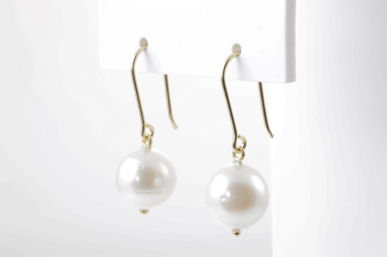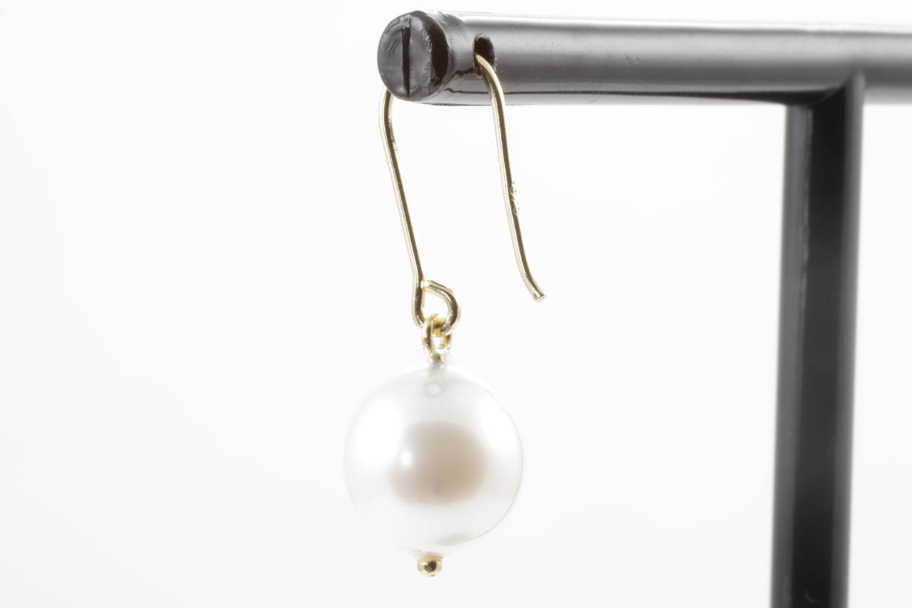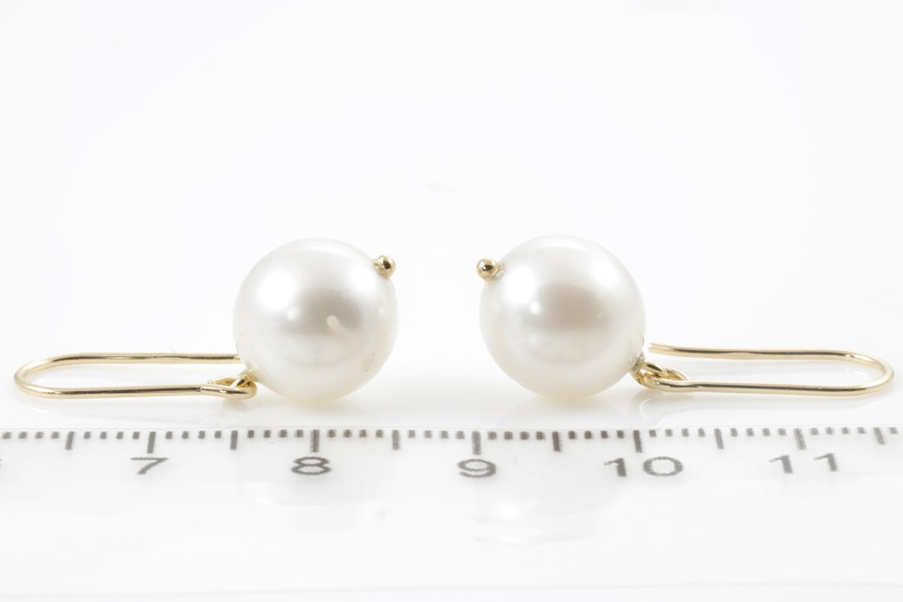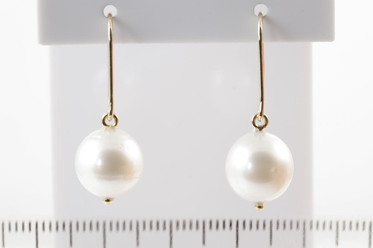 Pearl shepherds hook earrings with Australian South Sea Pearls of 10.3mm. 9ct yellow gold. Weight: 3.9g. (New)