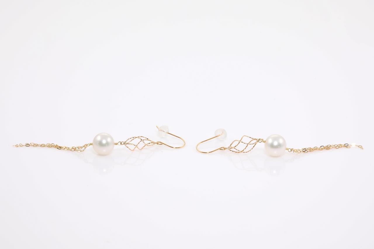 Pearl shepherds hook drop earrings with Akoya pearls of 7.9mm. 18ct yellow gold. Weight: 2.1g. (As new)