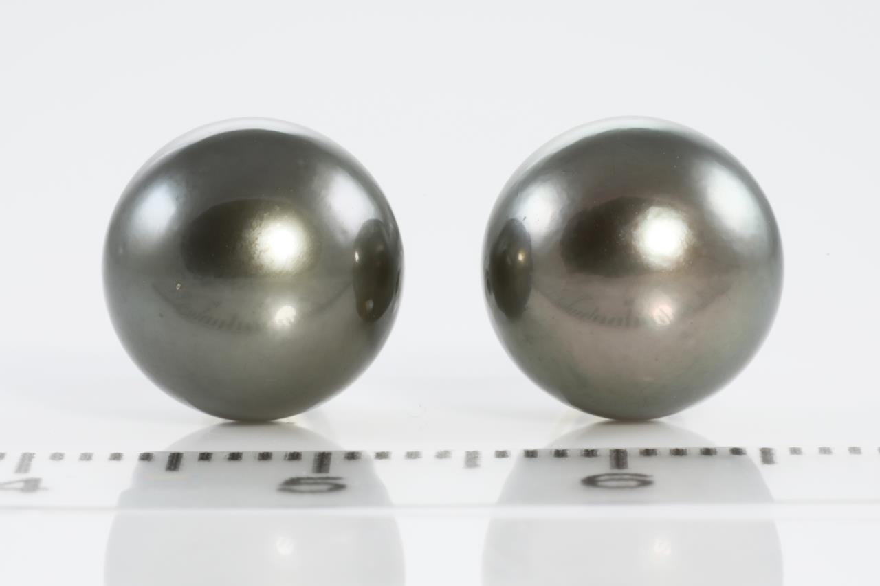 Pearl stud earrings with Tahitian Pearls of 10.0mm. Platinum with silicone backs. Weight: 3.9g (New)