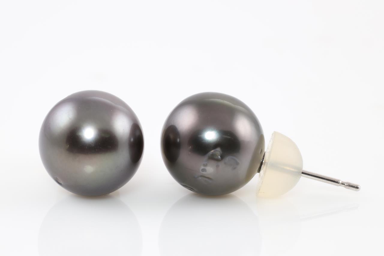 Pearl stud earrings with Tahitian Pearls of 9.0mm. Platinum with silicone backs. Weight: 2.8g (New)