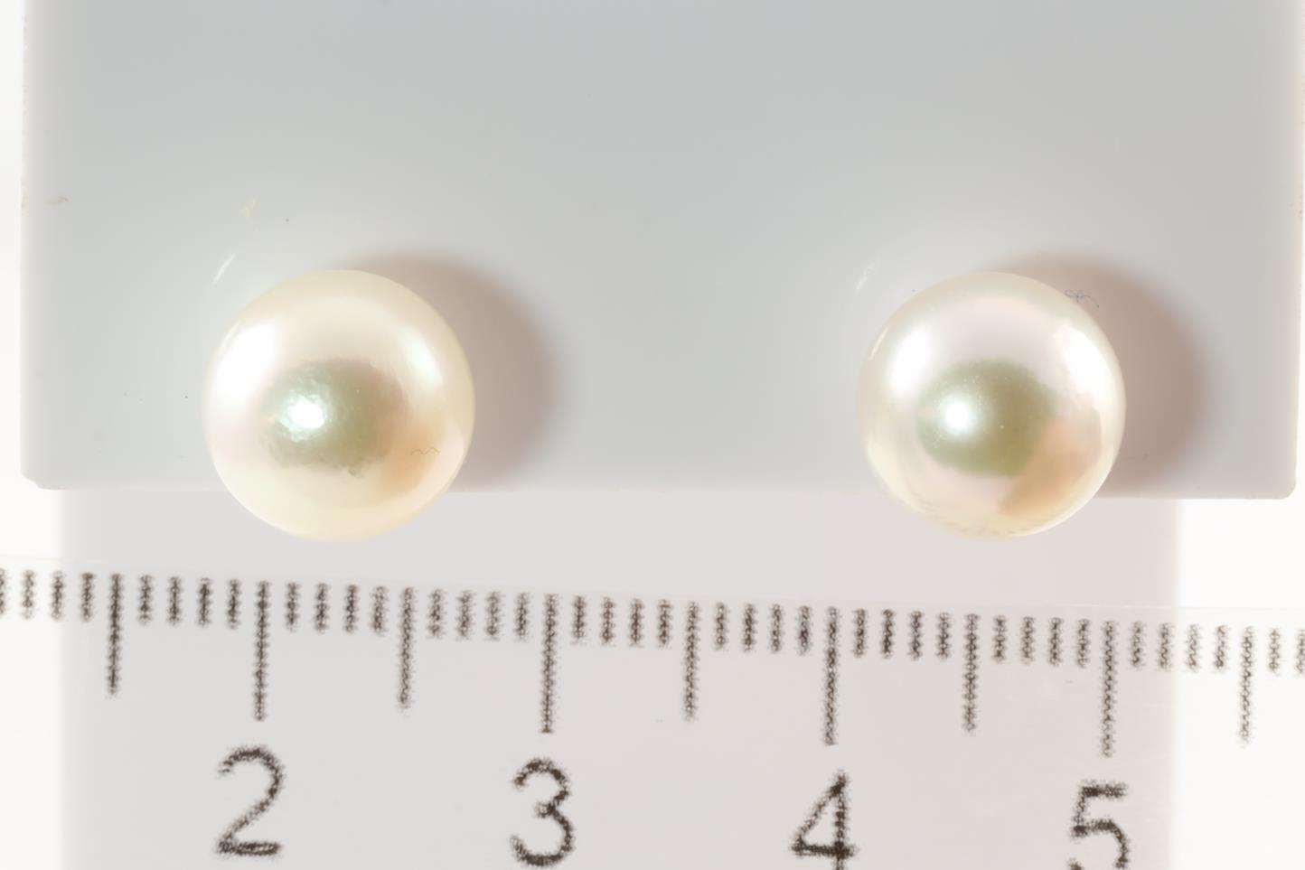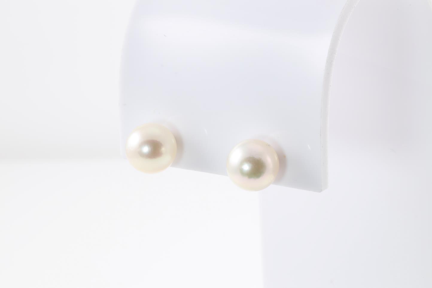 Pearl stud earrings with South Sea Pearls of 9mm. 14ct white gold with silicone backs. Weight: 2.6g (New)