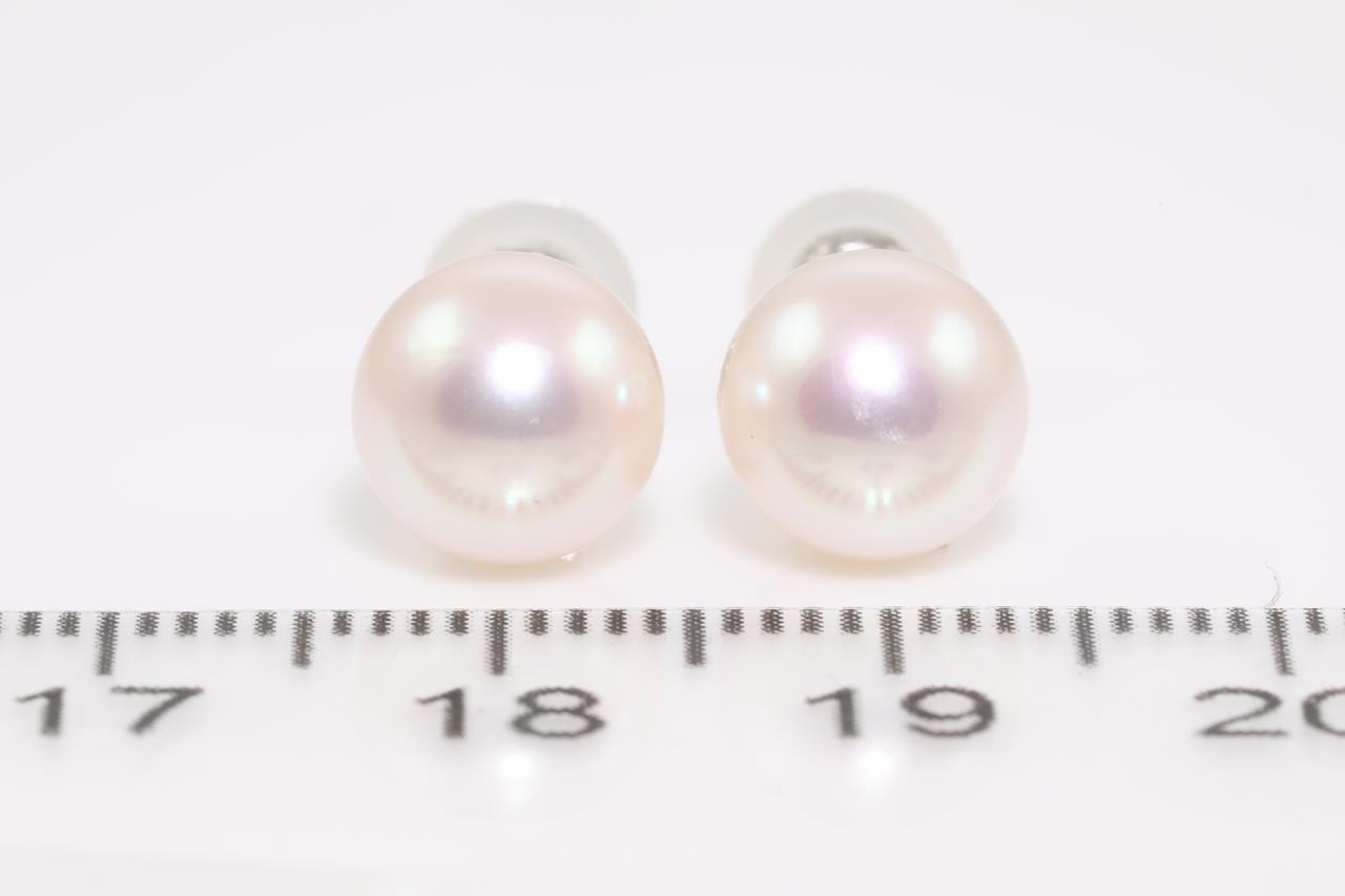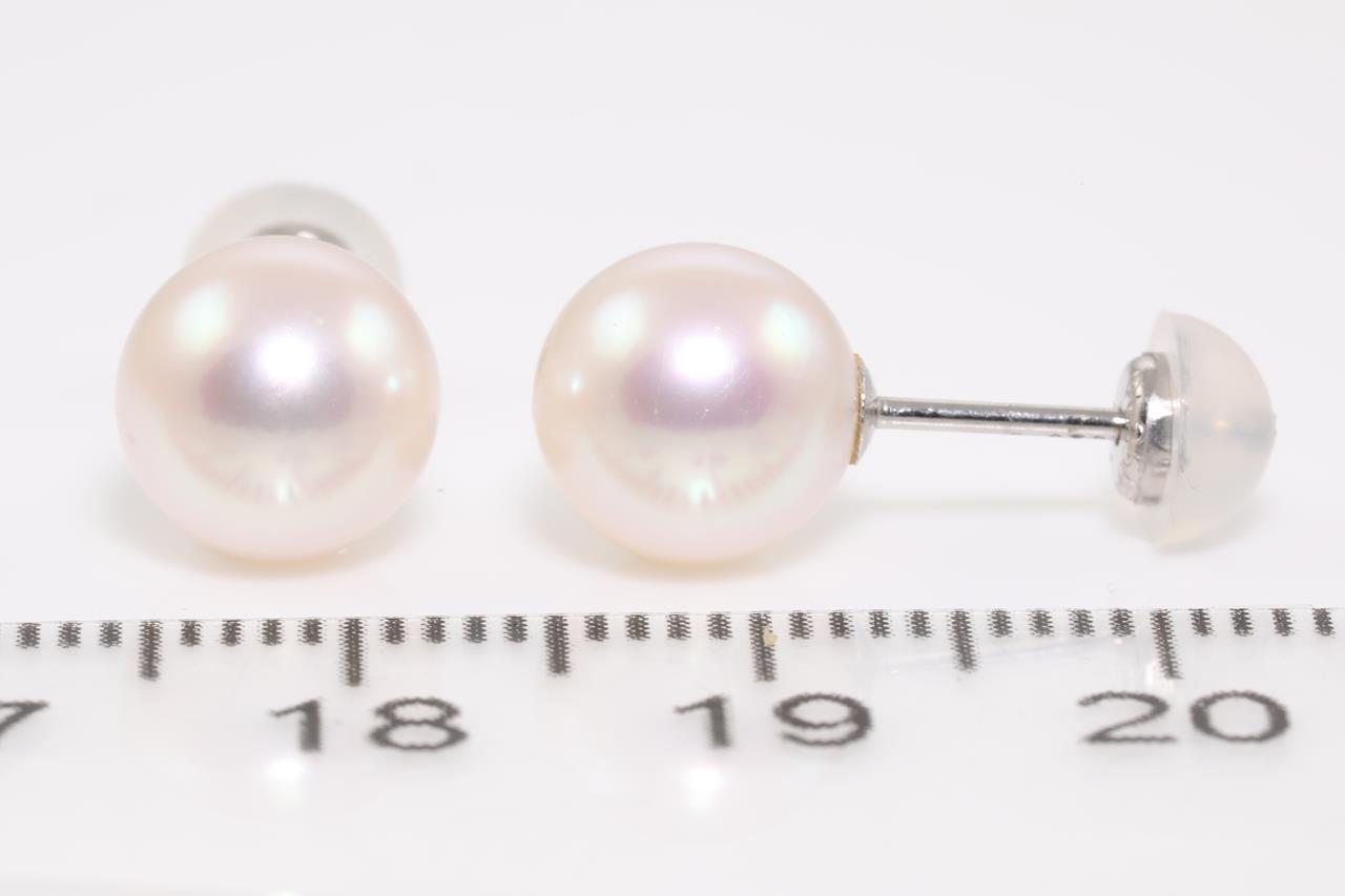 Pearl stud earrings with Akoya Pearls of 8.0mm. Platinum with platinum & silicon backs. Weight: 2.1g (Pre-owned)