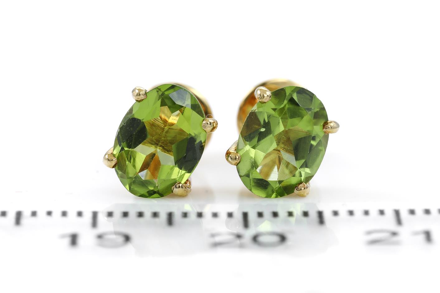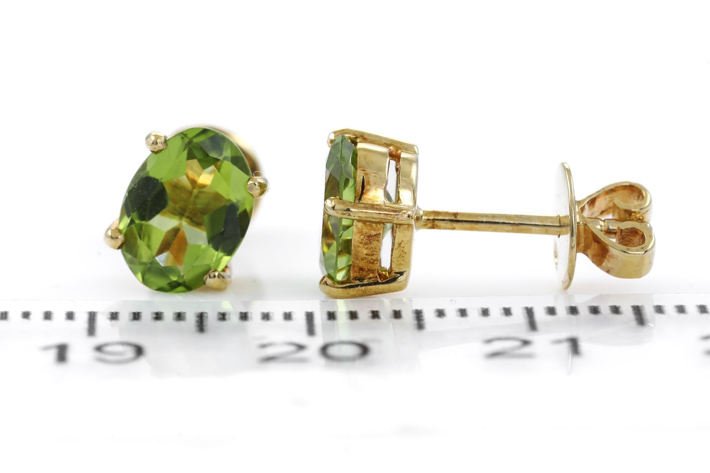 Peridot studs with oval cut Peridot totalling approximately 1.88cts. 18ct yellow gold. Weight 2.6g. (Pre-owned)
