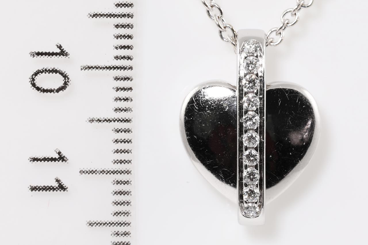 Piaget swing heart pendant with 10 round Diamonds totalling approximately 0.25cts. 18ct white gold with 40cm adjustable chain. Weight: 10.3g (Pre-owned)