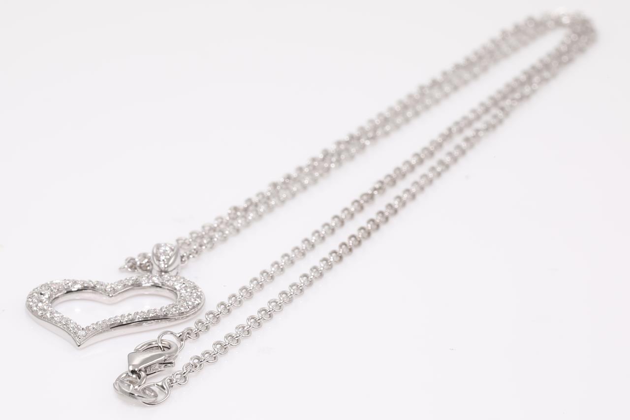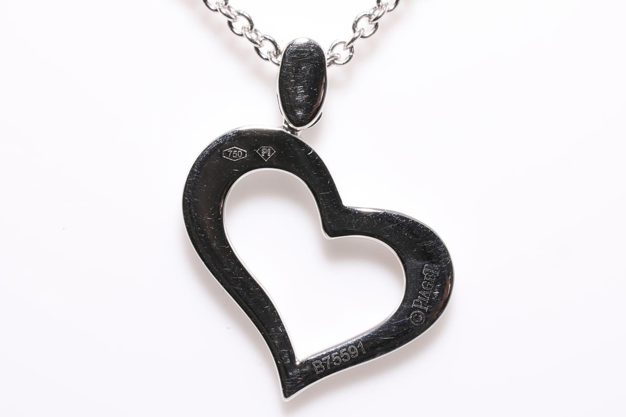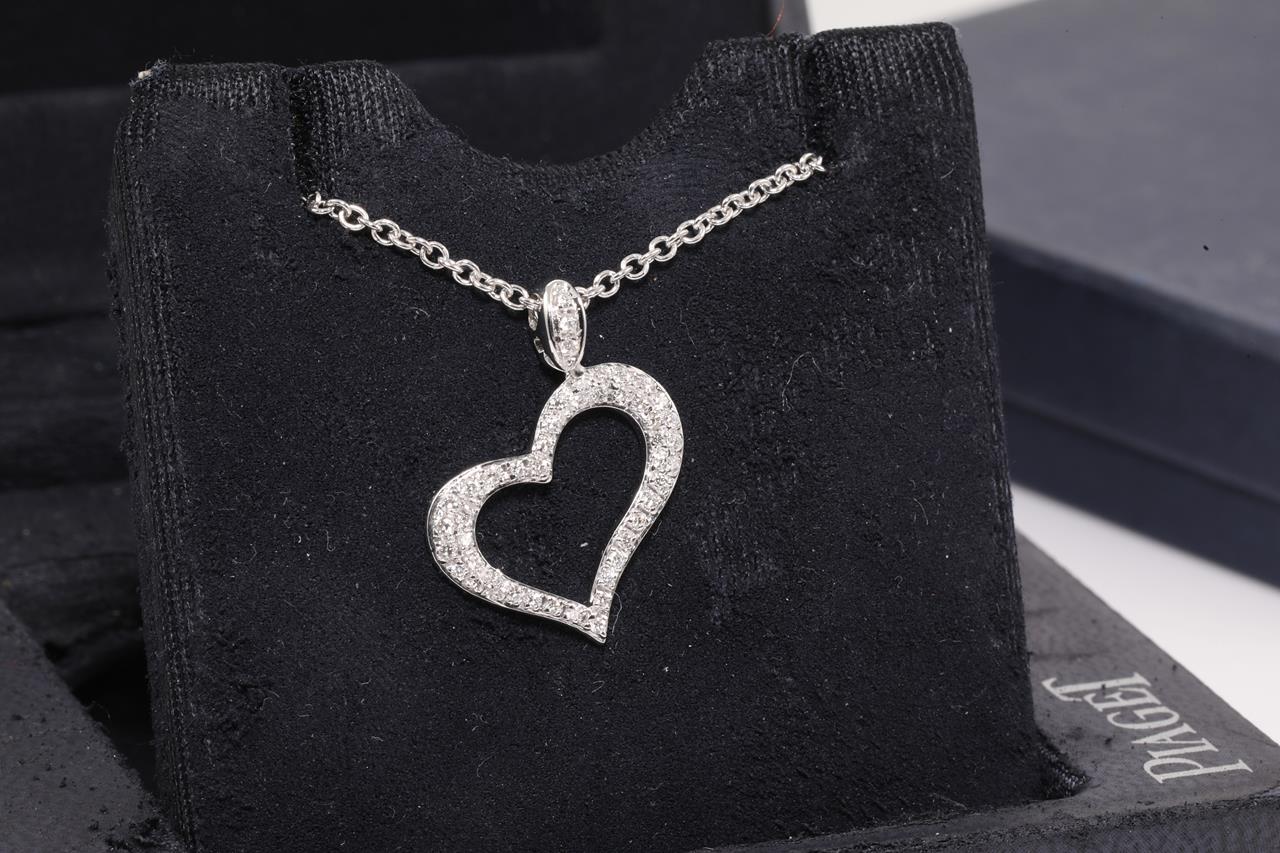 Piaget Limelight heart design pendant with Diamonds totalling approximately 0.33cts (Estimated grading: F VS). 18ct white gold with 42cm chain. With Piaget deteriorated box. Ref# 75591. Weight: 6.1g. With certificate #414571. (Pre-owned)